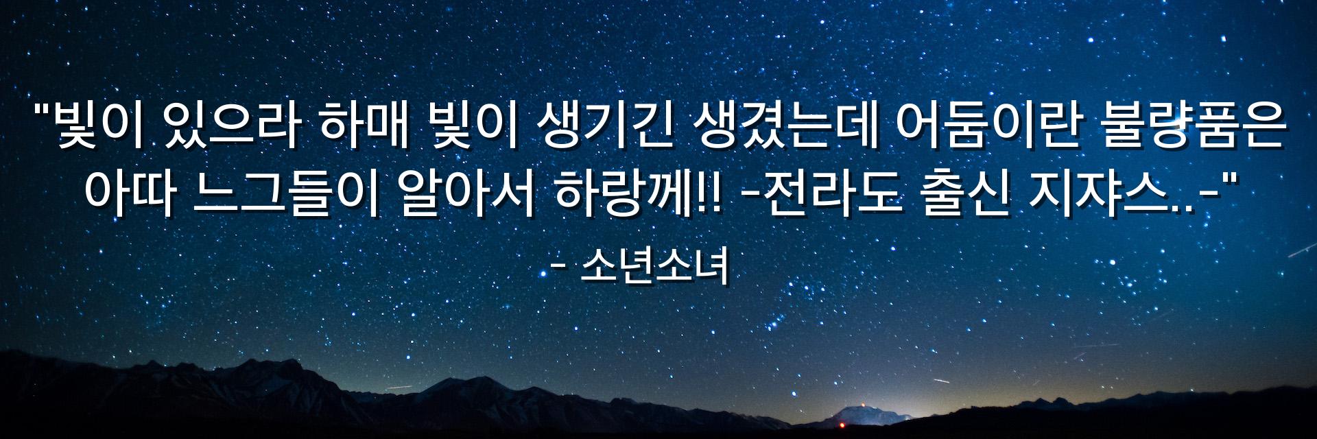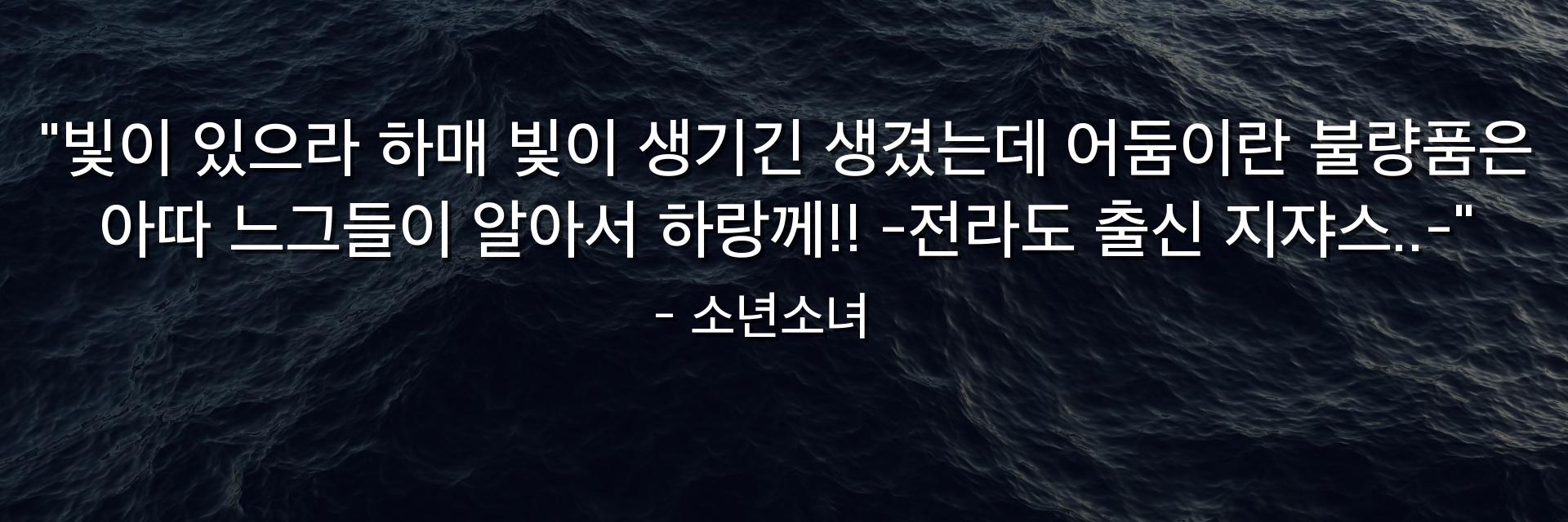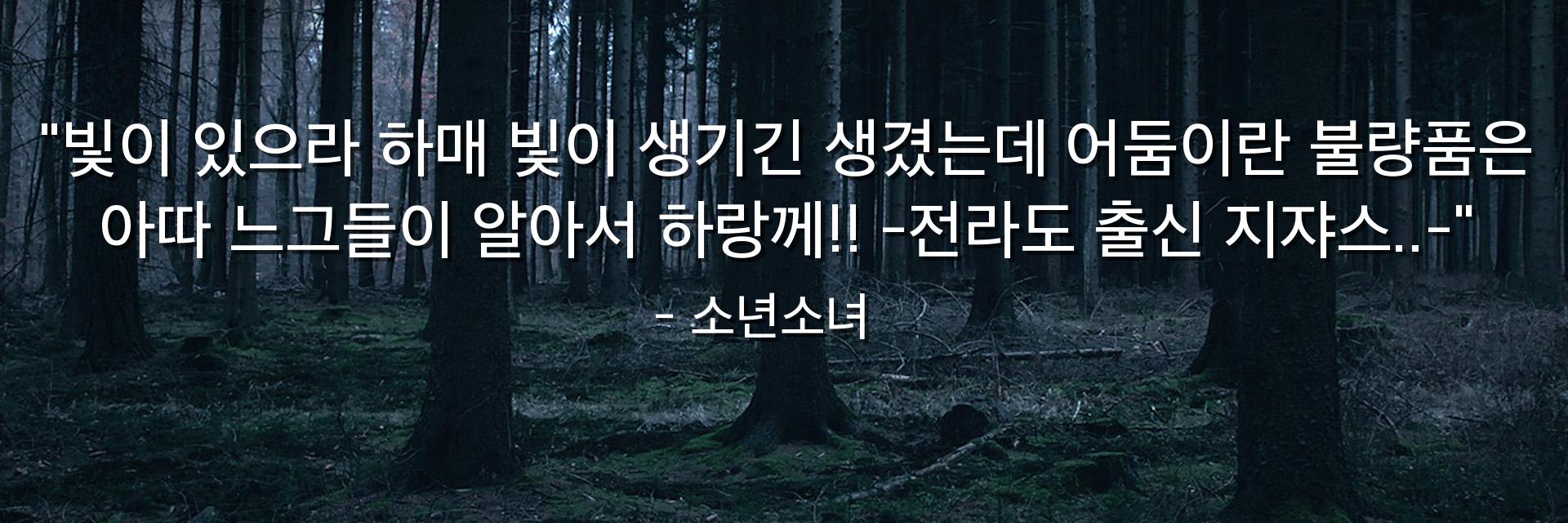"빛이 있으라 하매 빛이 생기긴 생겼는데 어둠이란 불량품은 아따 느그들이 알아서 하랑께!! -전라도 출신 지쟈스..-"
