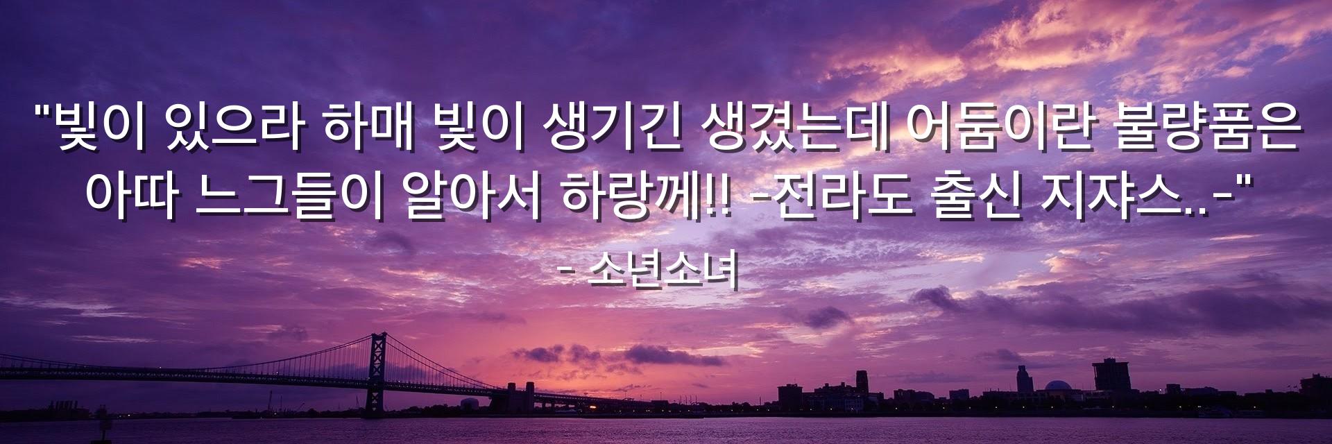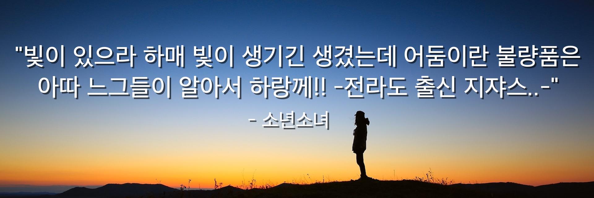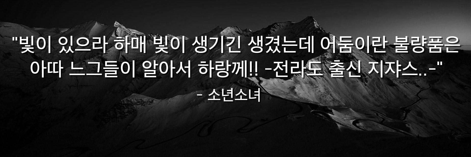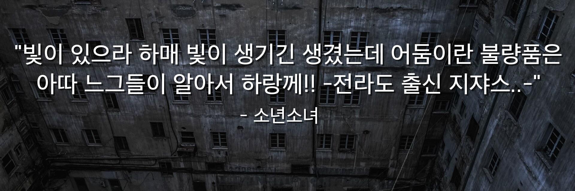 "빛이 있으라 하매 빛이 생기긴 생겼는데 어둠이란 불량품은 아따 느그들이 알아서 하랑께!! -전라도 출신 지쟈스..-"