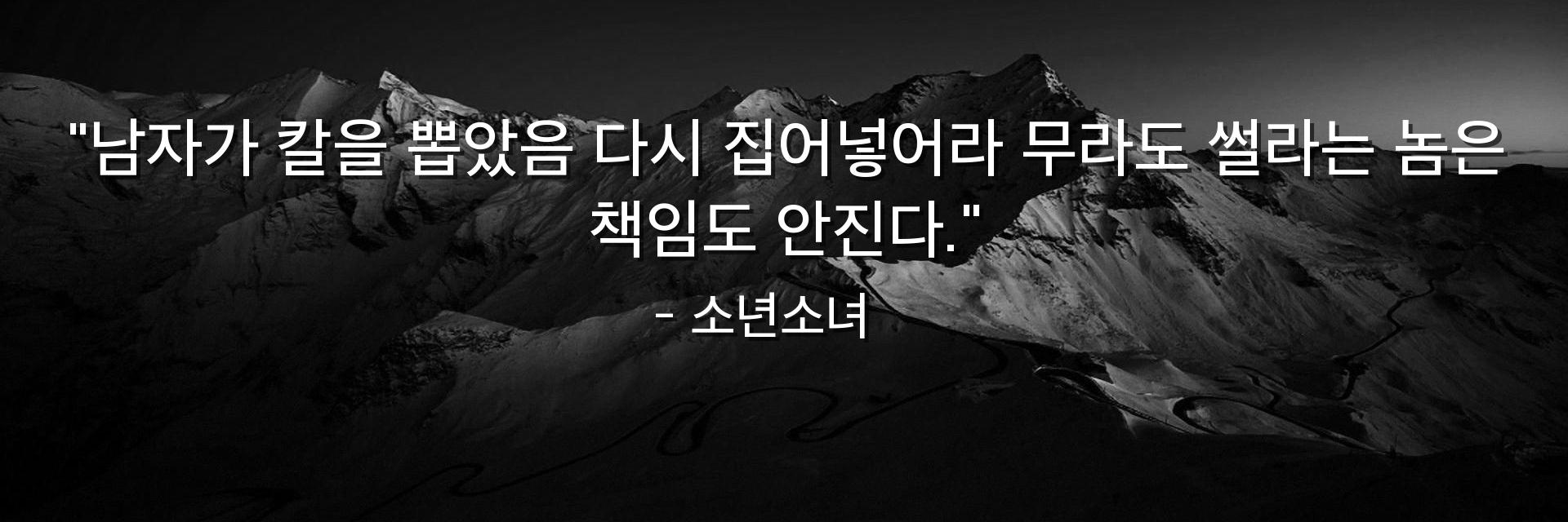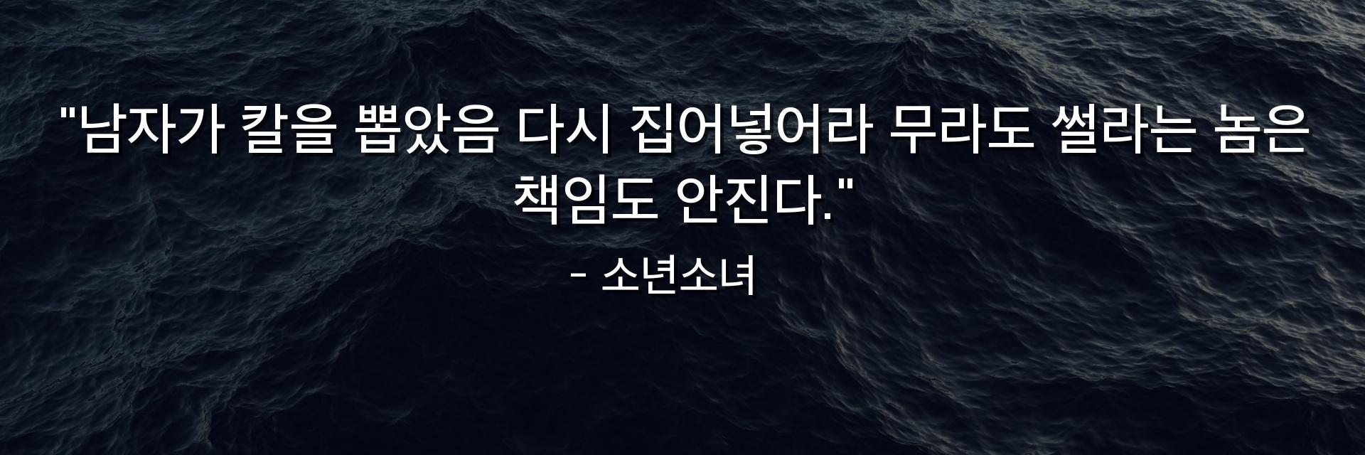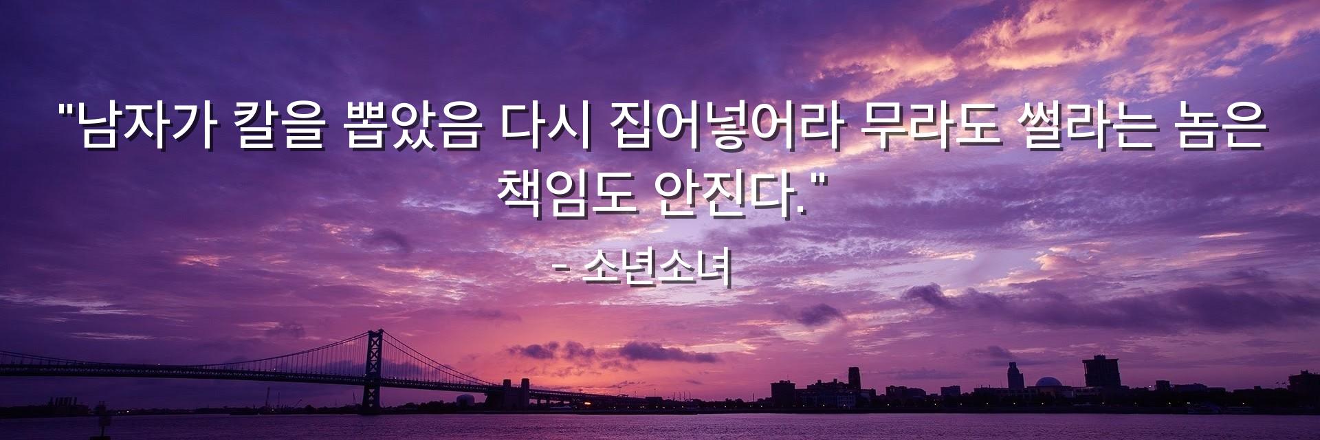 "남자가 칼을 뽑았음 다시 집어넣어라 무라도 썰라는 놈은 책임도 안진다."