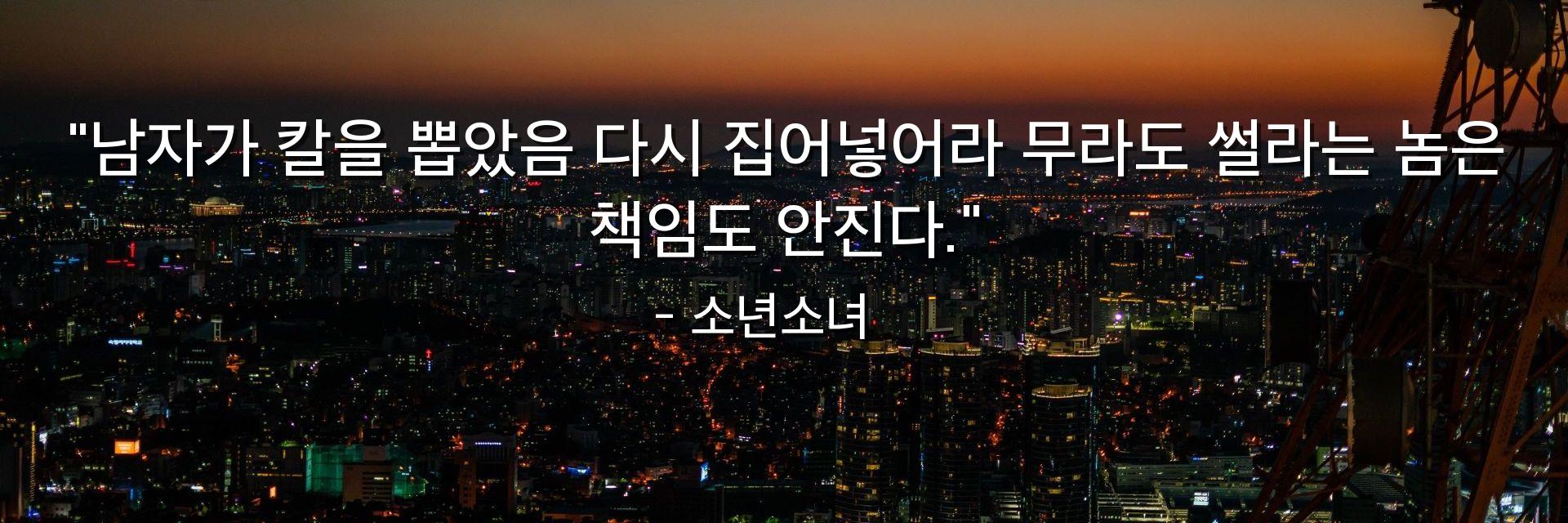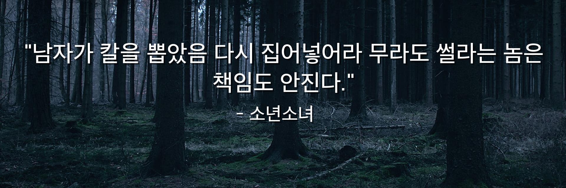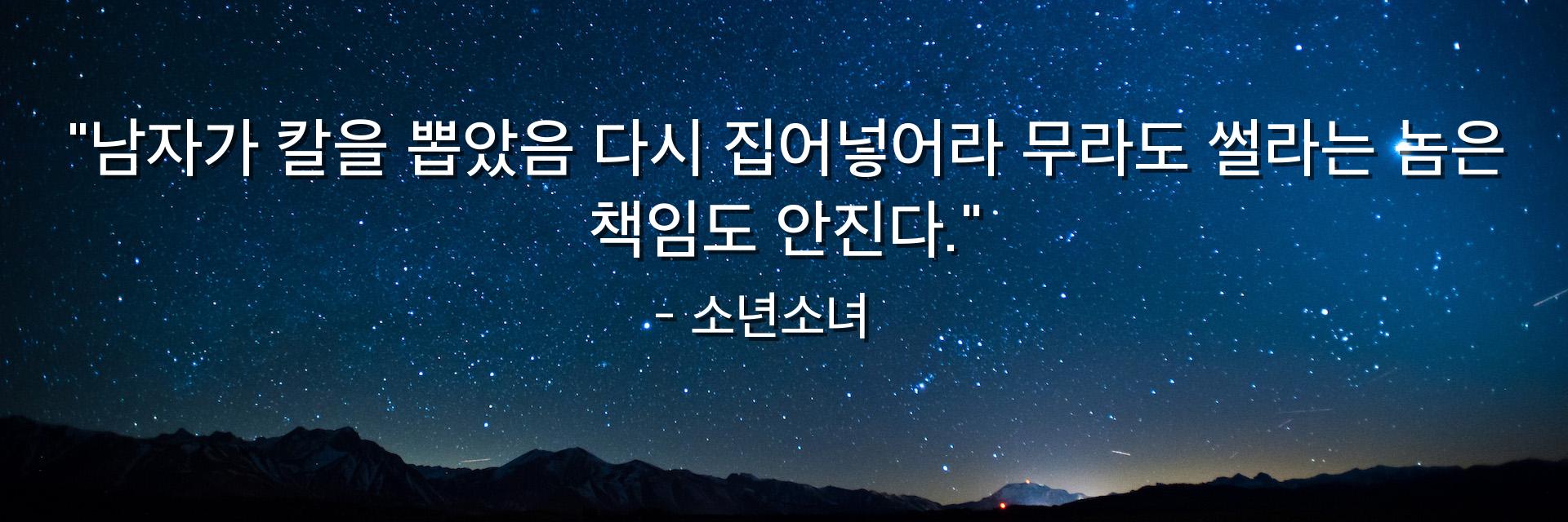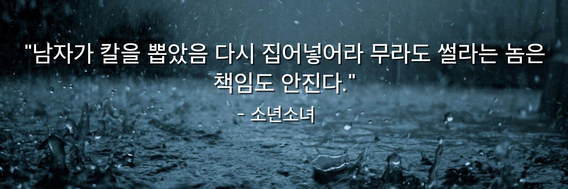 "남자가 칼을 뽑았음 다시 집어넣어라 무라도 썰라는 놈은 책임도 안진다."