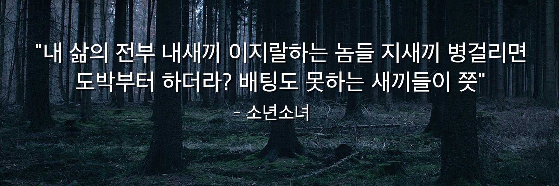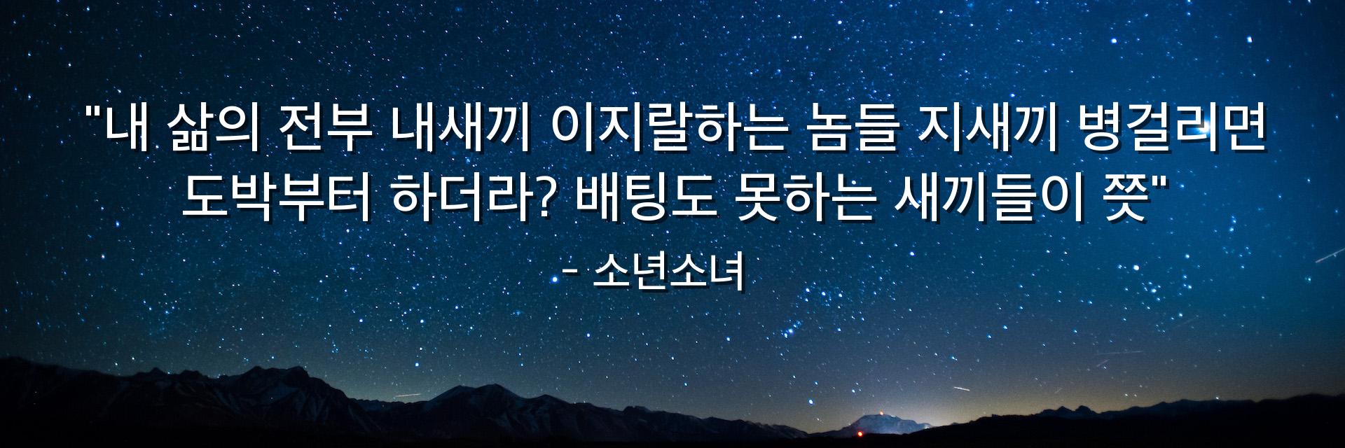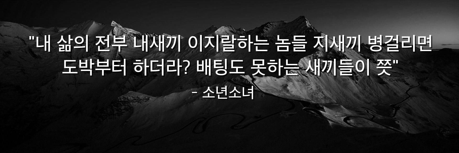"내 삶의 전부 내새끼 이지랄하는 놈들 지새끼 병걸리면 도박부터 하더라? 배팅도 못하는 새끼들이 쯧"