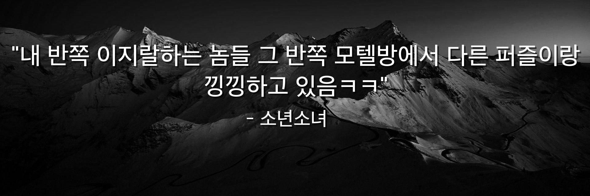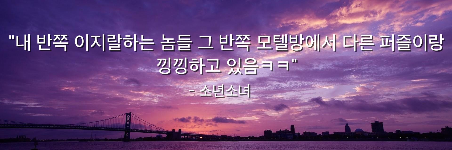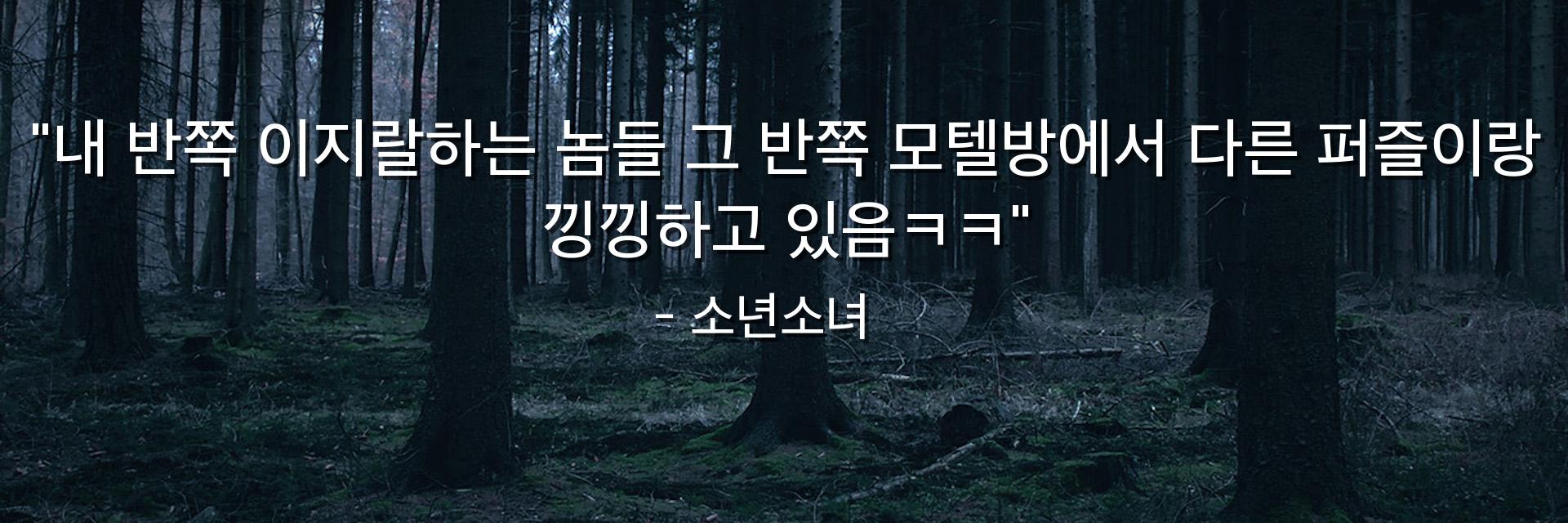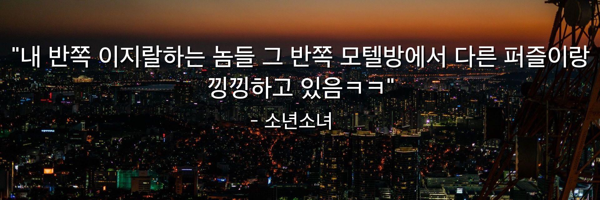 "내 반쪽 이지랄하는 놈들 그 반쪽 모텔방에서 다른 퍼즐이랑 낑낑하고 있음ㅋㅋ"