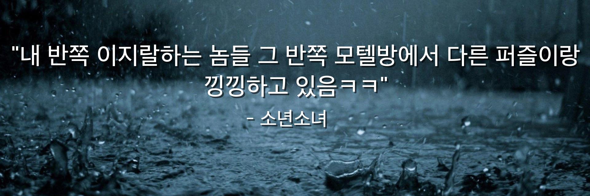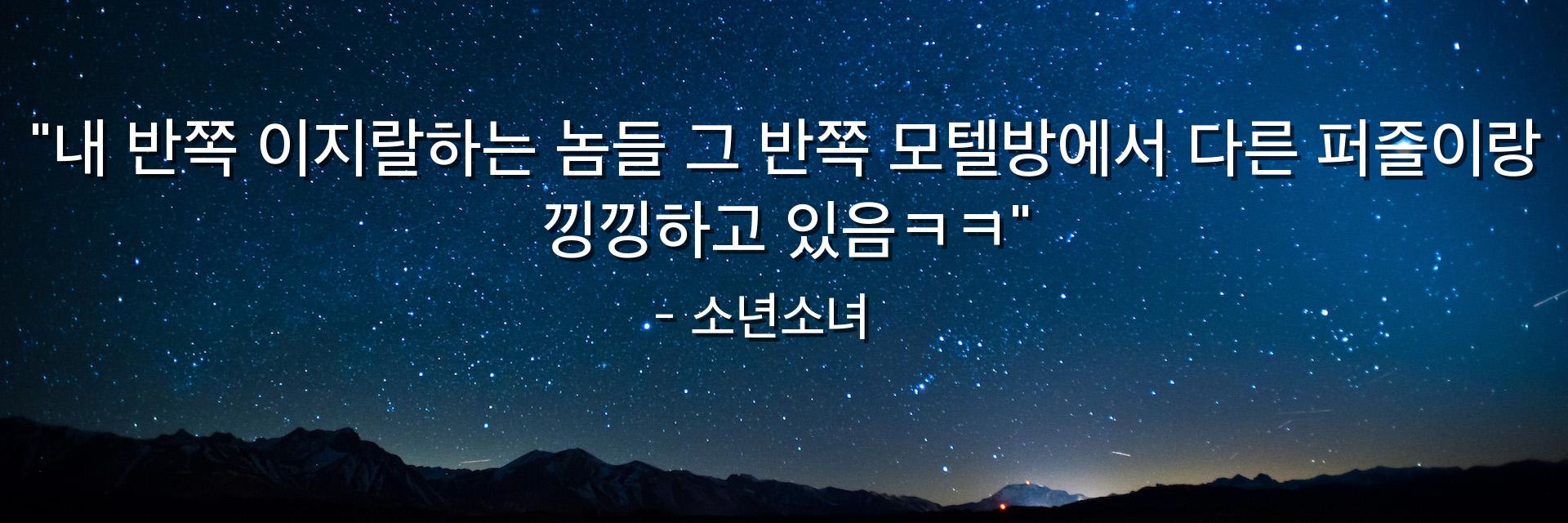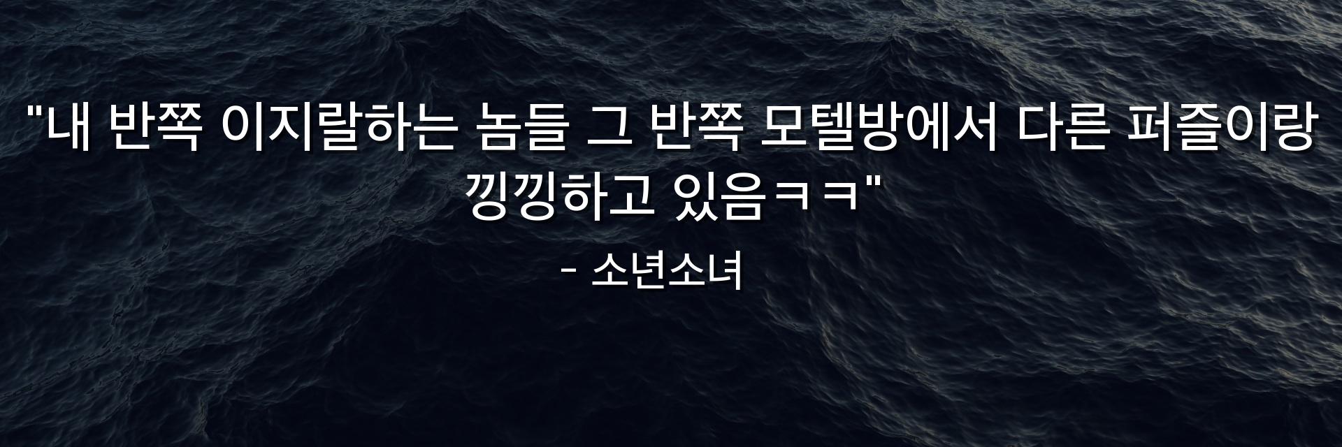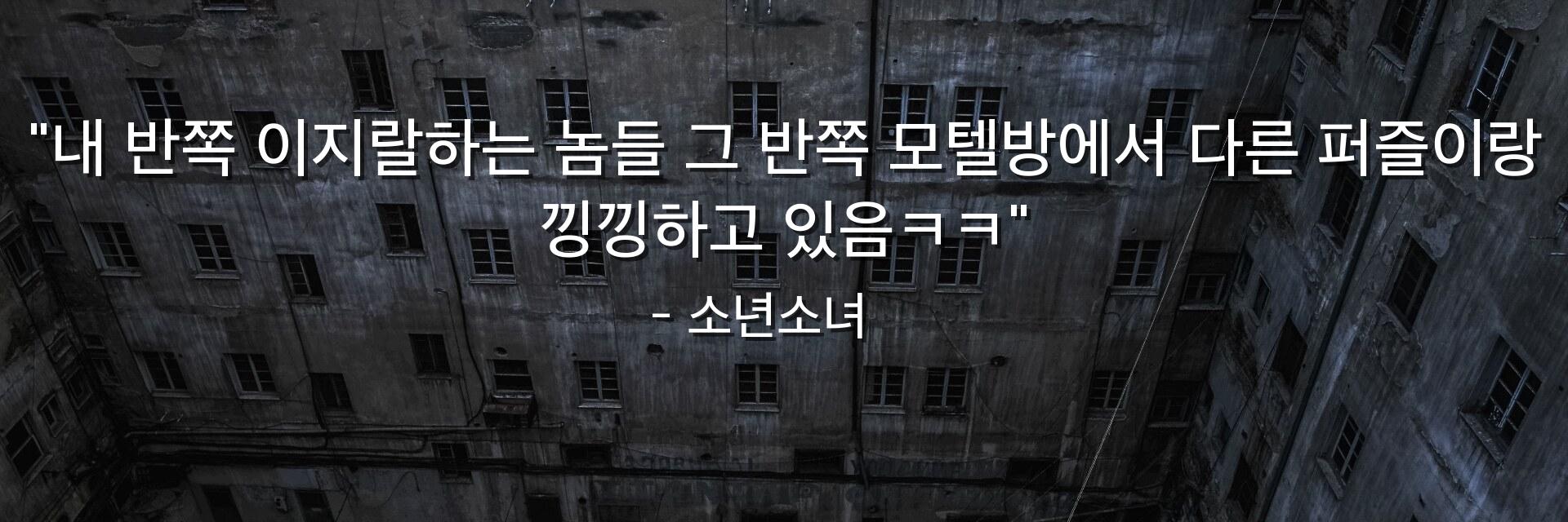 "내 반쪽 이지랄하는 놈들 그 반쪽 모텔방에서 다른 퍼즐이랑 낑낑하고 있음ㅋㅋ"