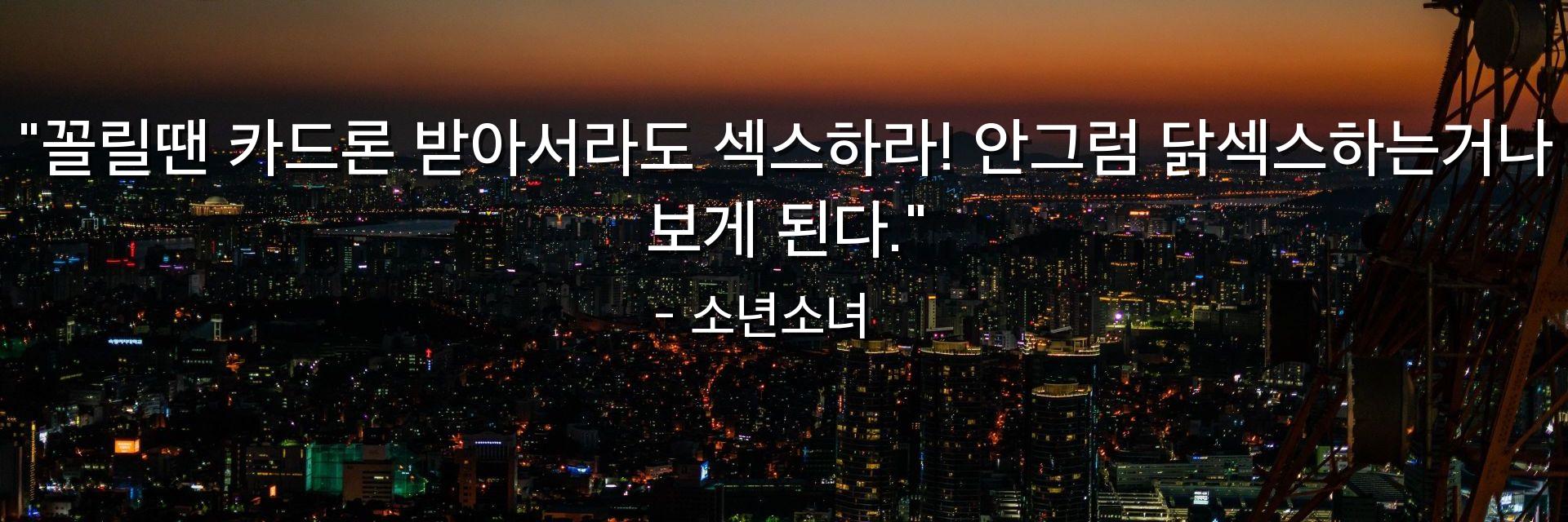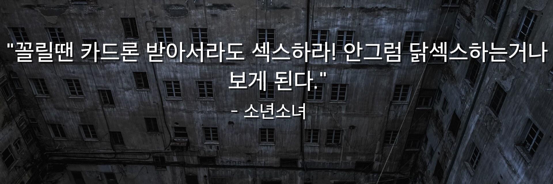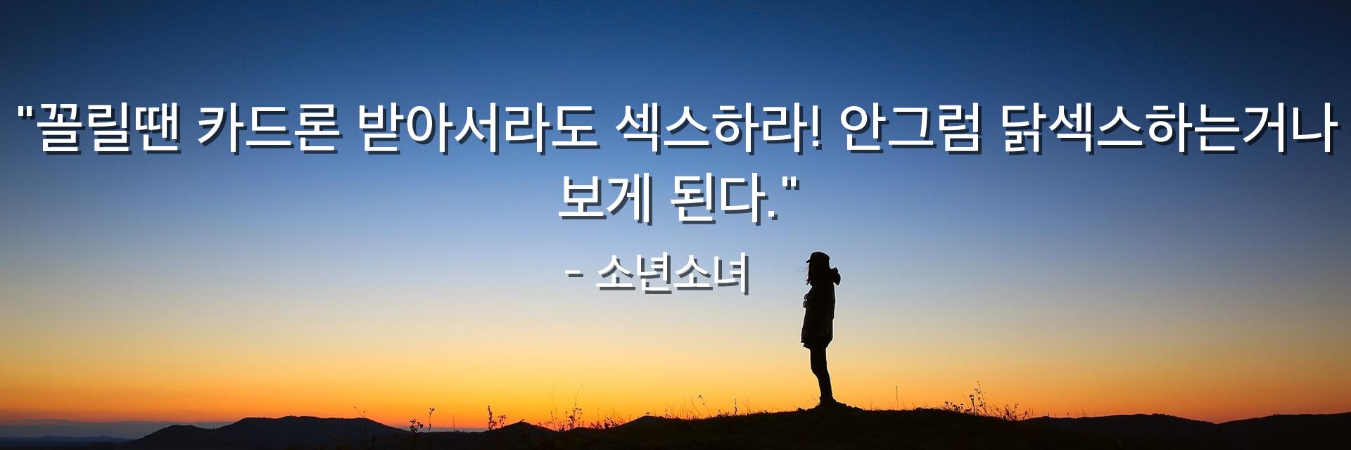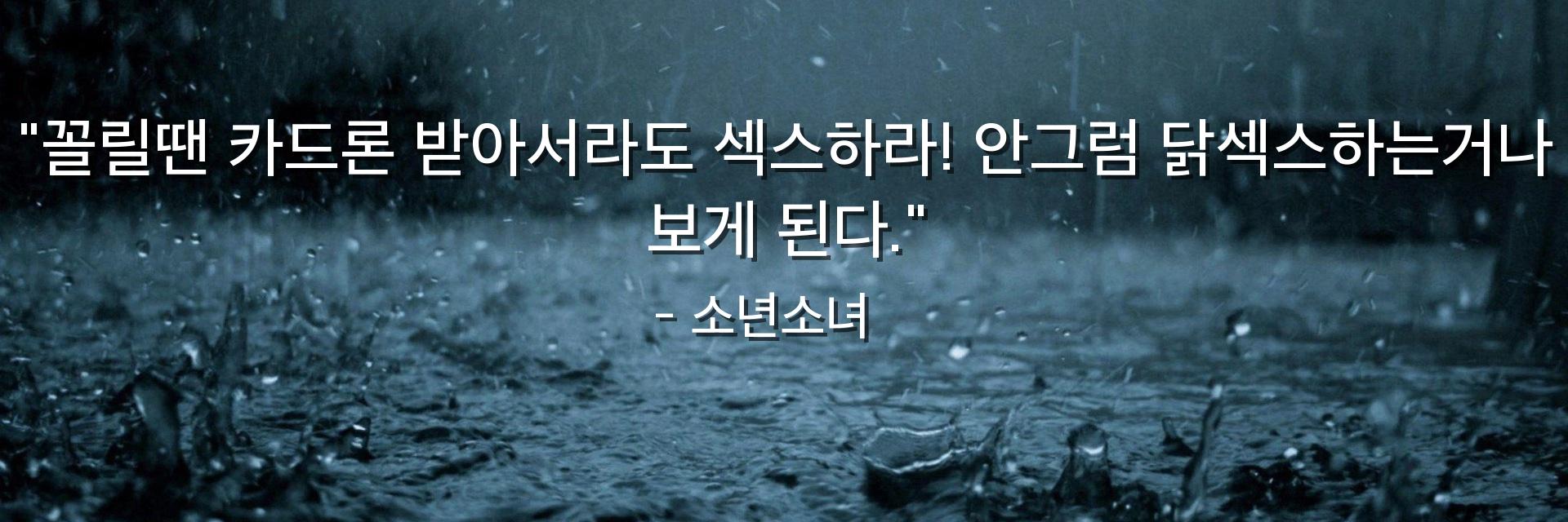 "꼴릴땐 카드론 받아서라도 섹스하라! 안그럼 닭섹스하는거나 보게 된다."
