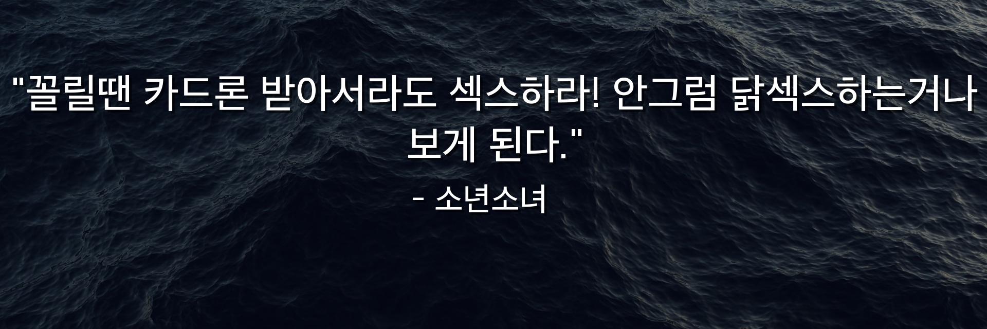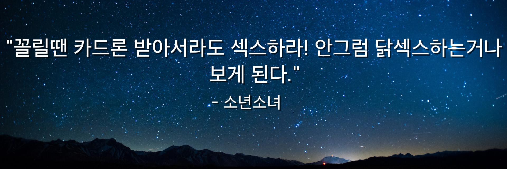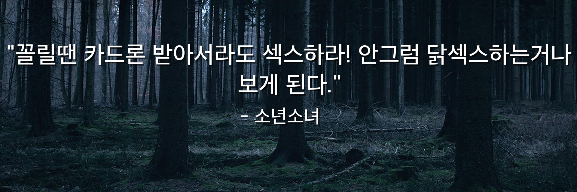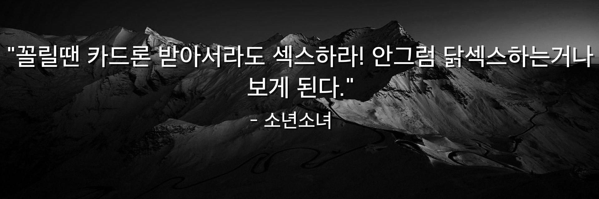 "꼴릴땐 카드론 받아서라도 섹스하라! 안그럼 닭섹스하는거나 보게 된다."