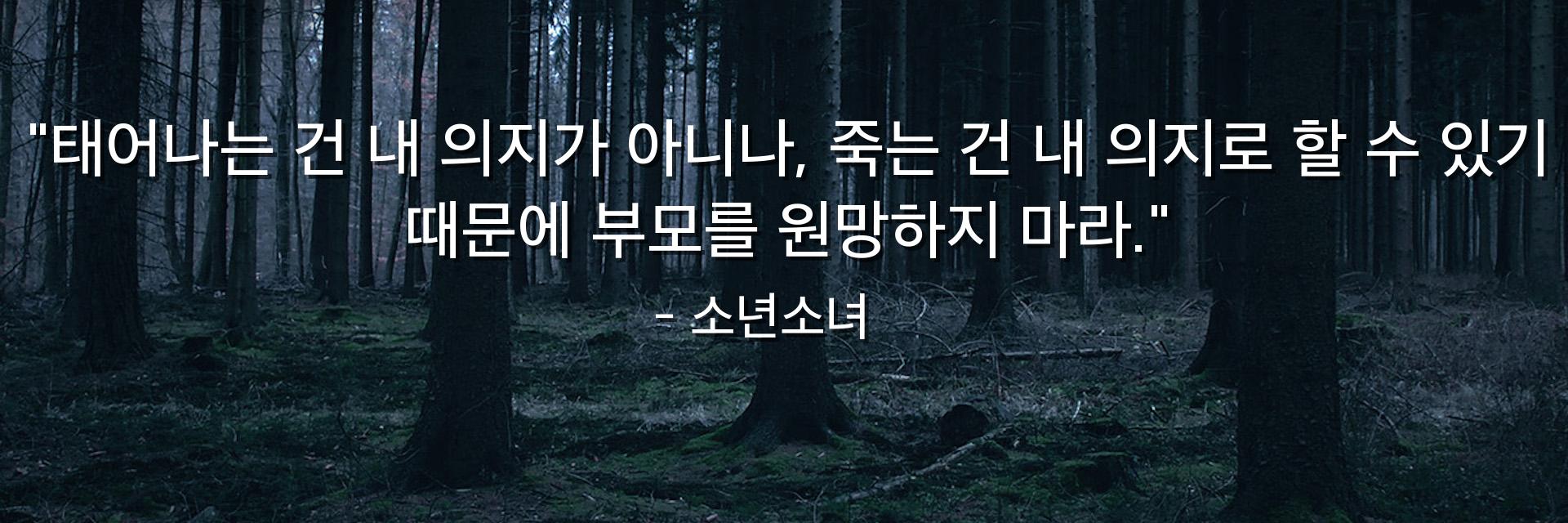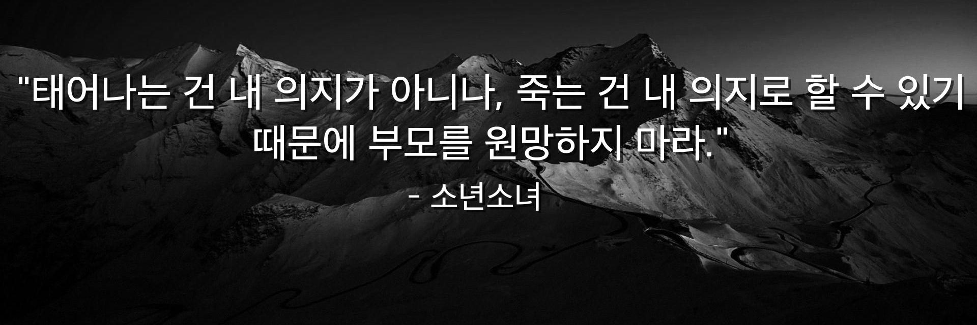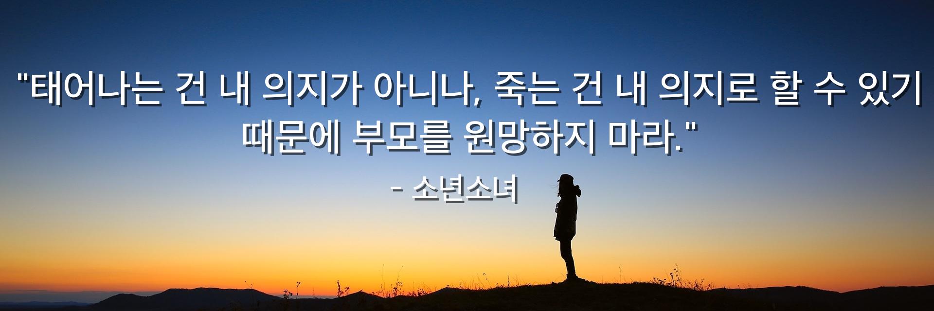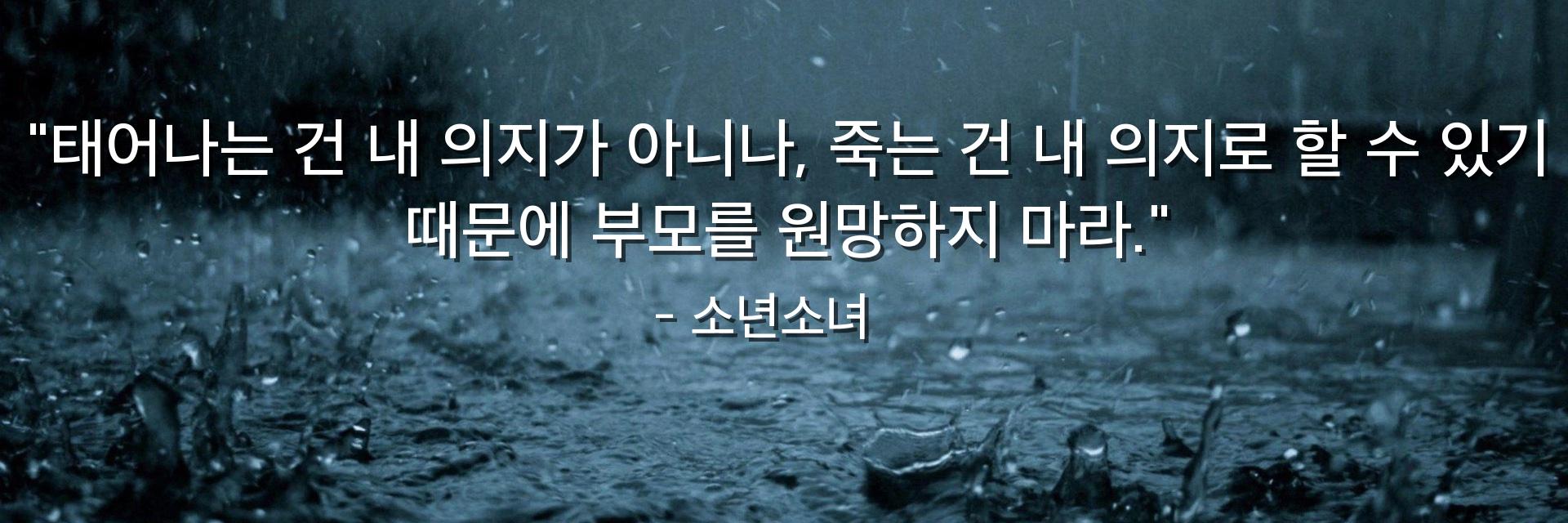 "태어나는 건 내 의지가 아니나, 죽는 건 내 의지로 할 수 있기 때문에 부모를 원망하지 마라."