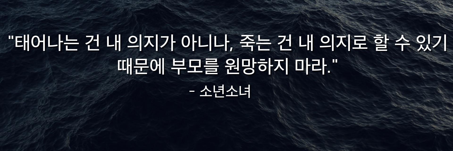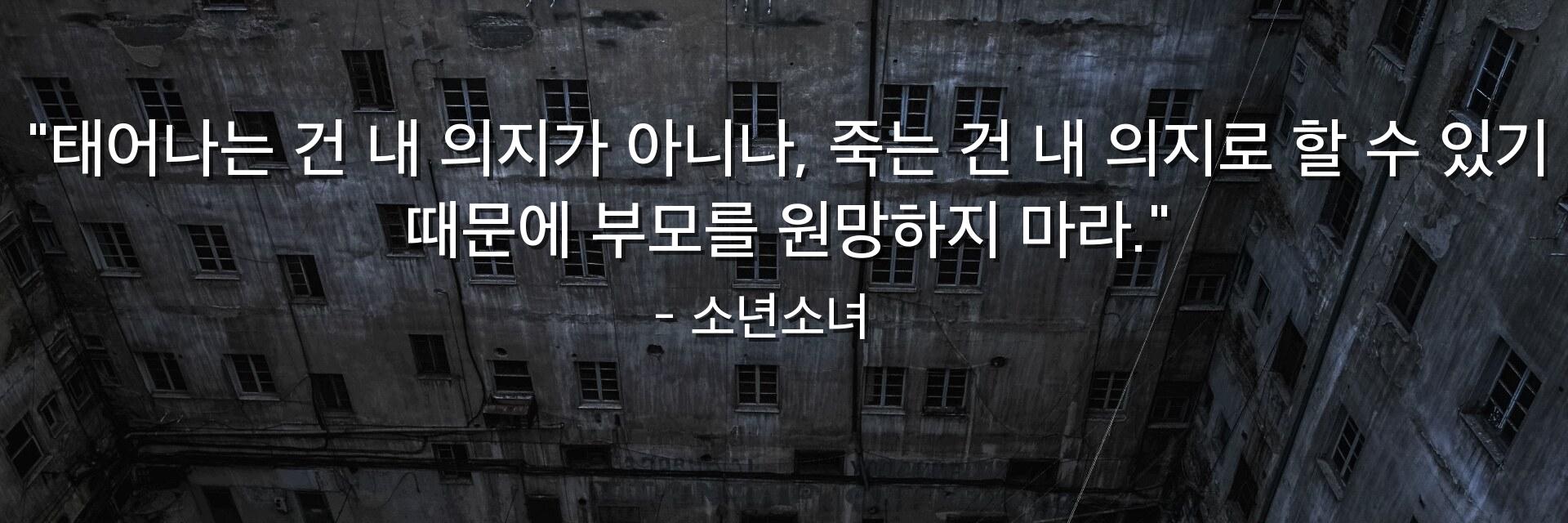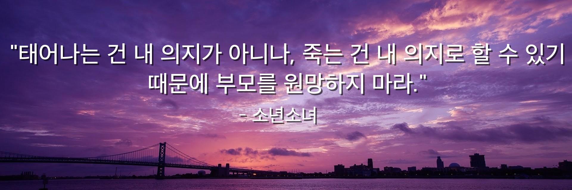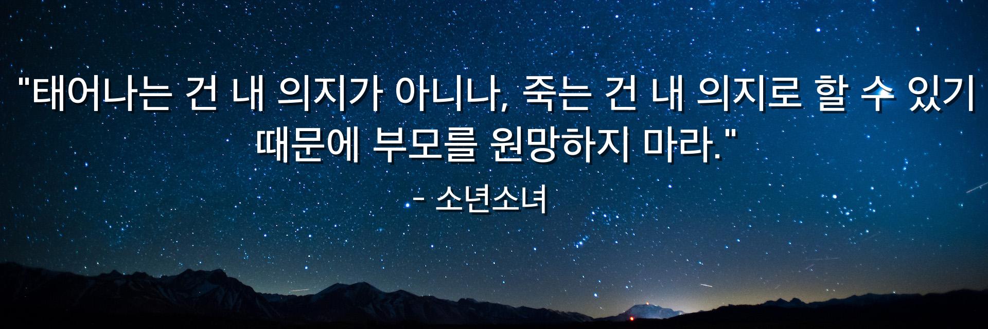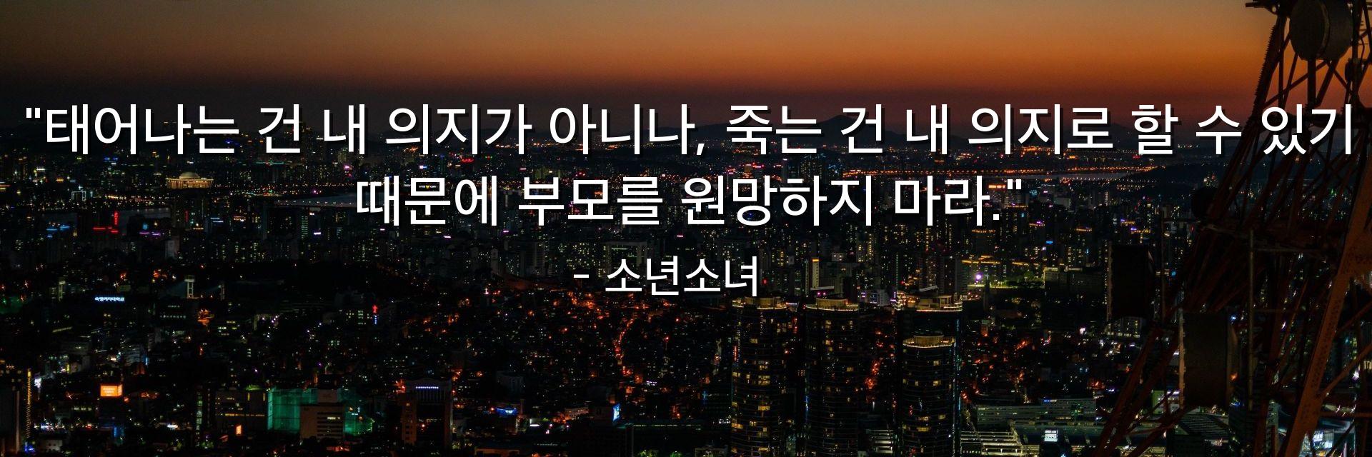 "태어나는 건 내 의지가 아니나, 죽는 건 내 의지로 할 수 있기 때문에 부모를 원망하지 마라."