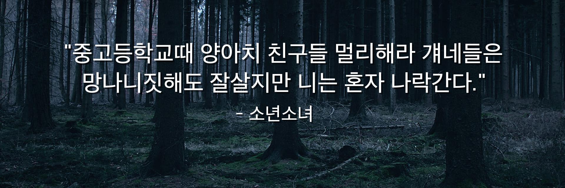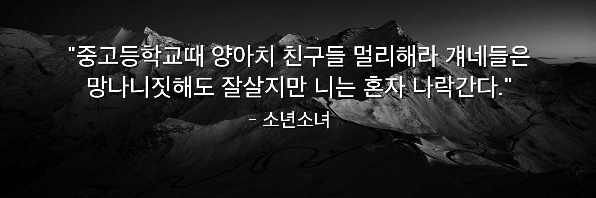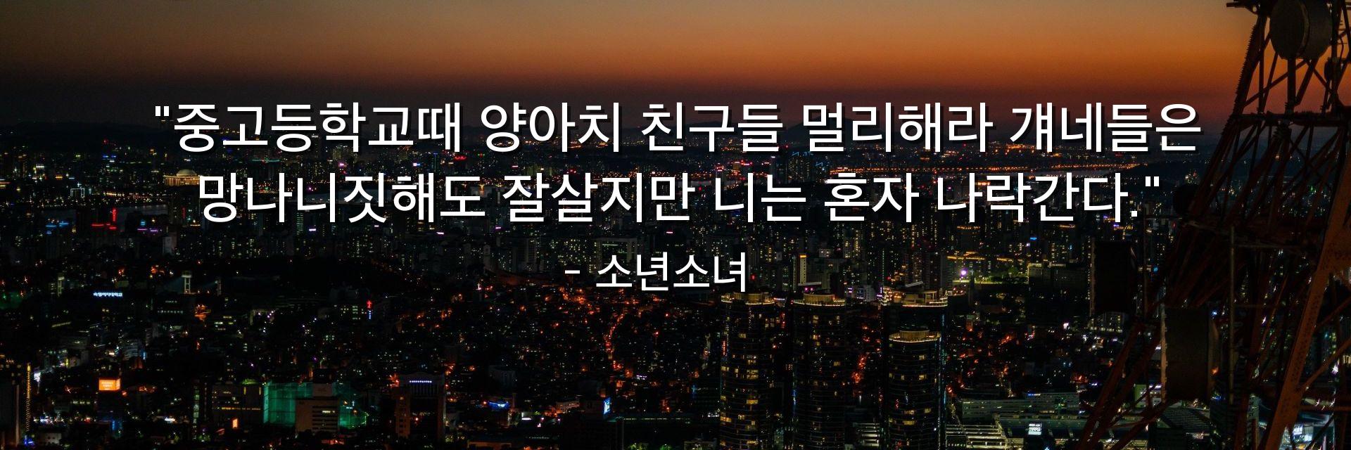 "중고등학교때 양아치 친구들 멀리해라 걔네들은 망나니짓해도 잘살지만 니는 혼자 나락간다."