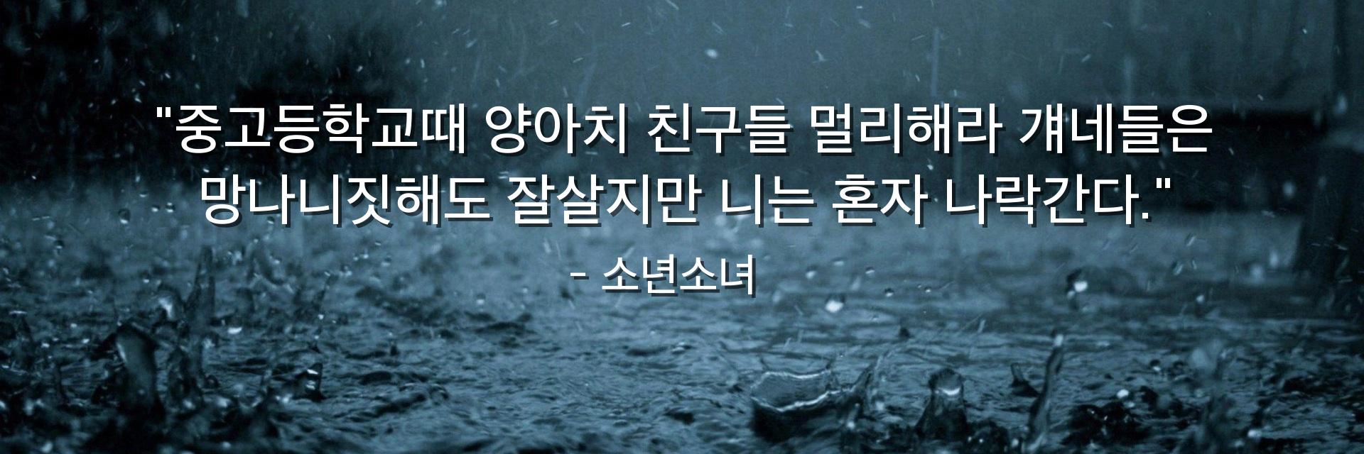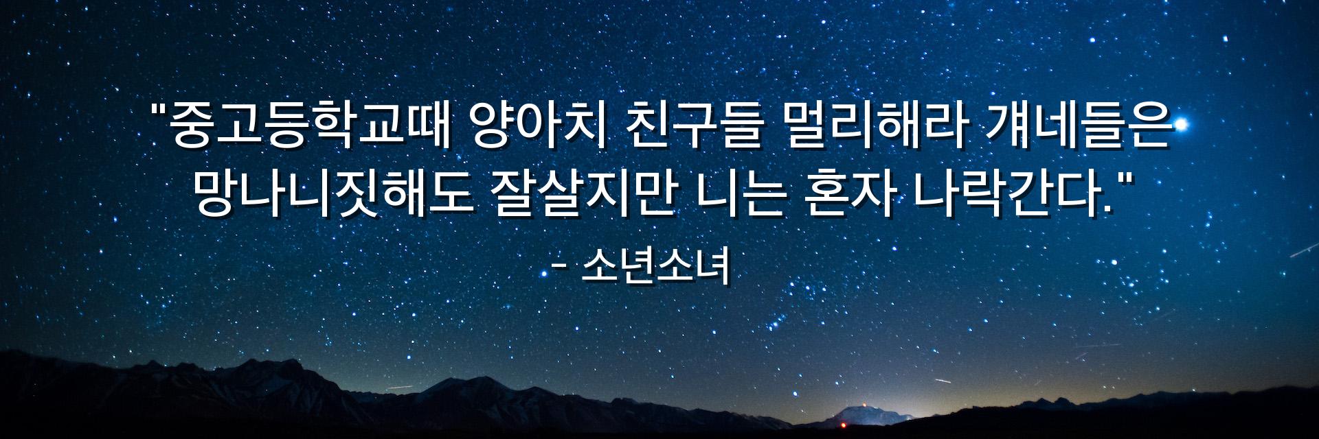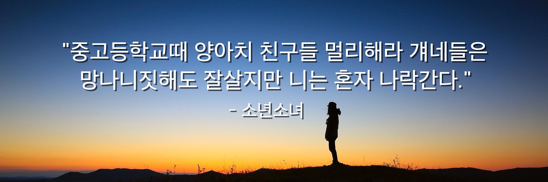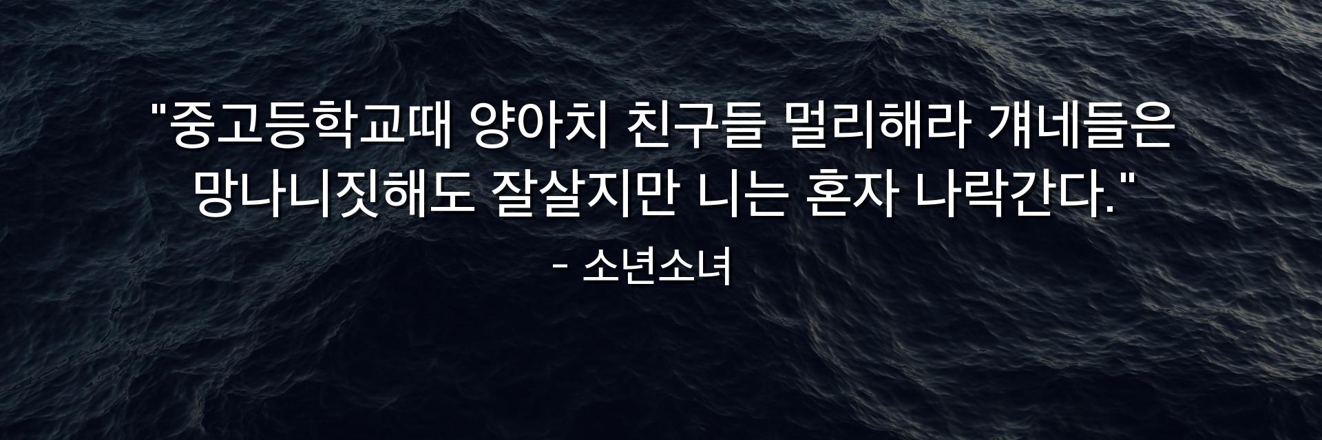 "중고등학교때 양아치 친구들 멀리해라 걔네들은 망나니짓해도 잘살지만 니는 혼자 나락간다."
