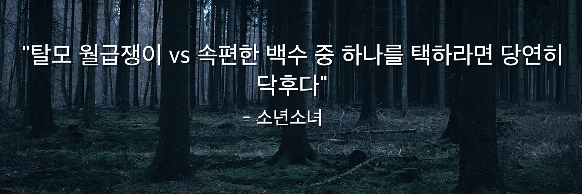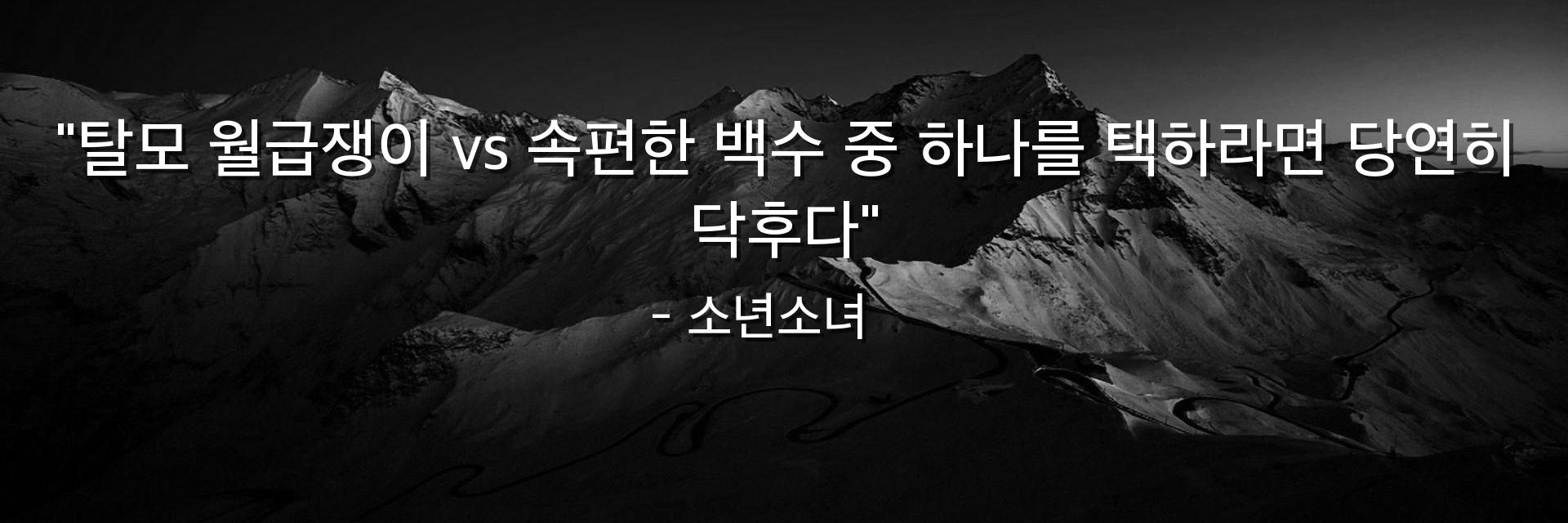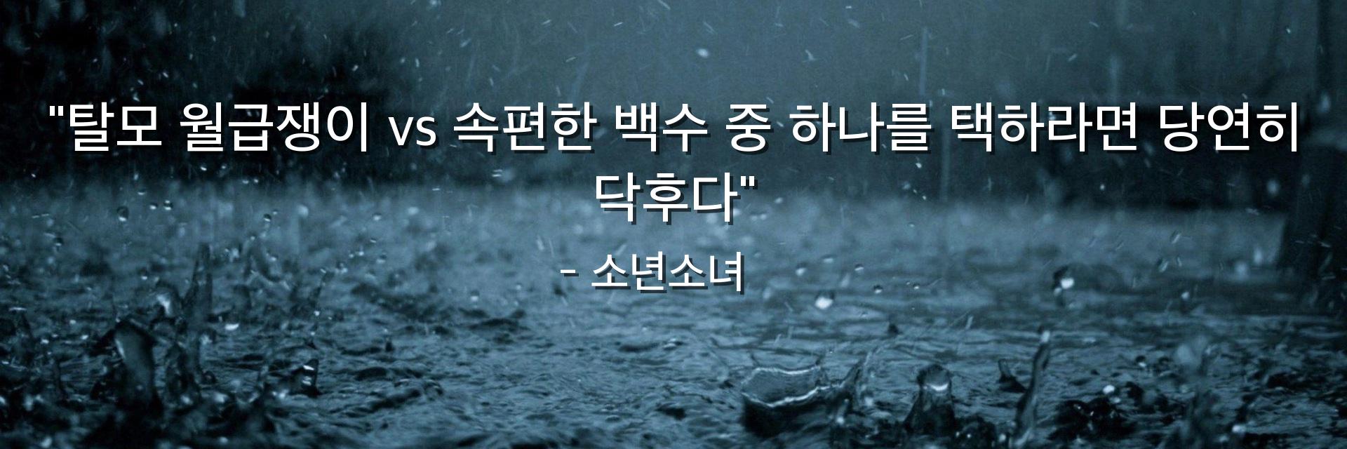 "탈모 월급쟁이 vs 속편한 백수 중 하나를 택하라면 당연히 닥후다"