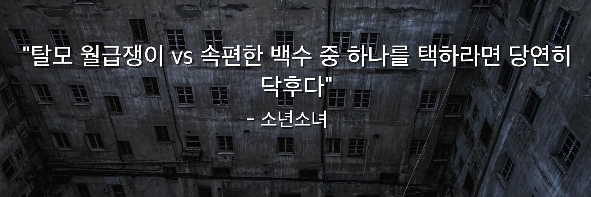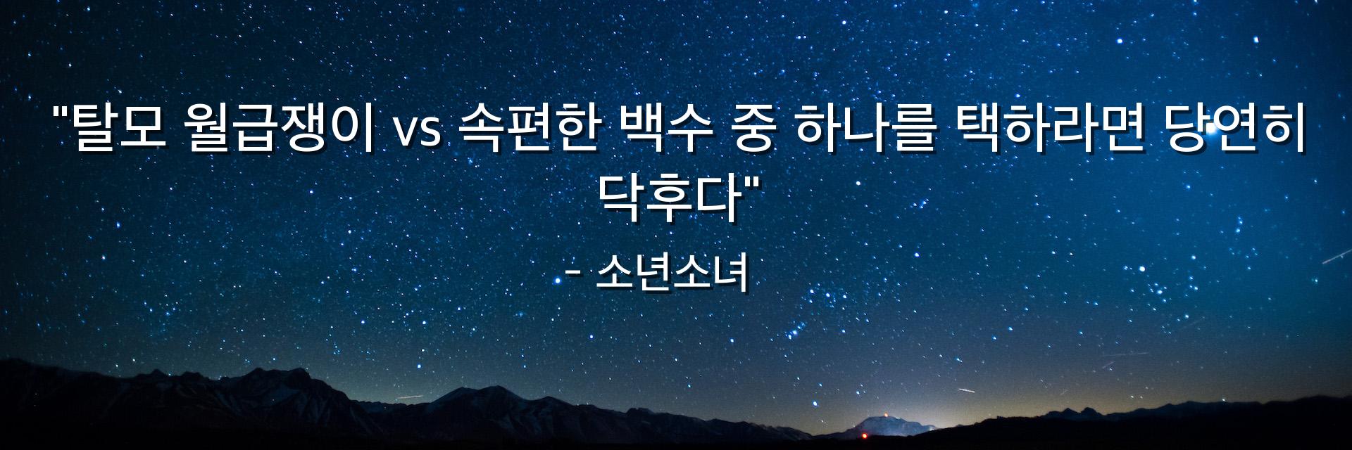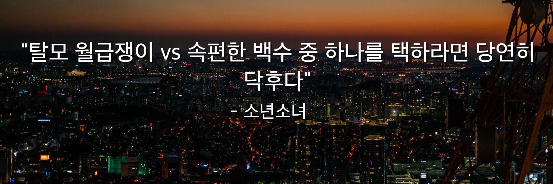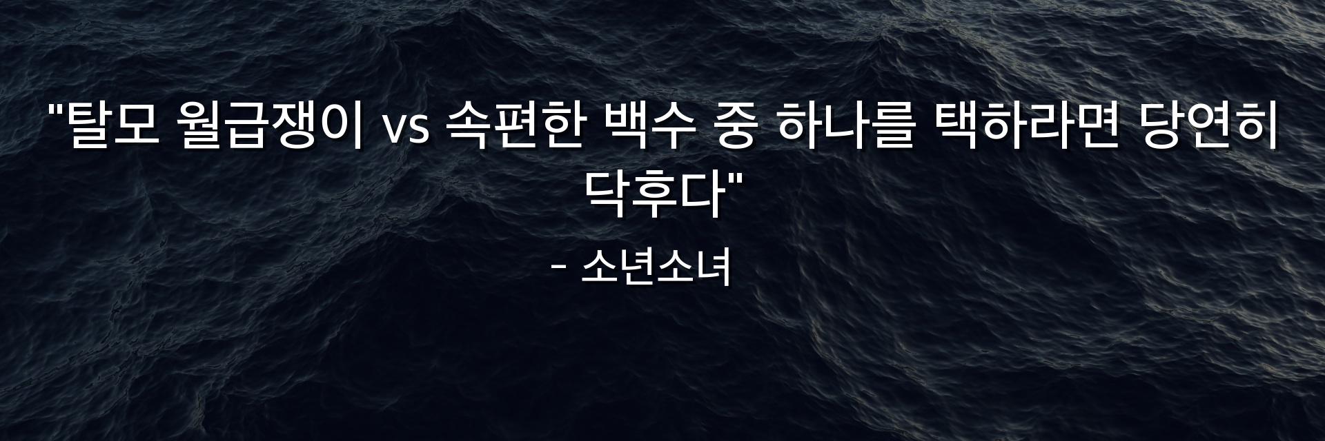 "탈모 월급쟁이 vs 속편한 백수 중 하나를 택하라면 당연히 닥후다"