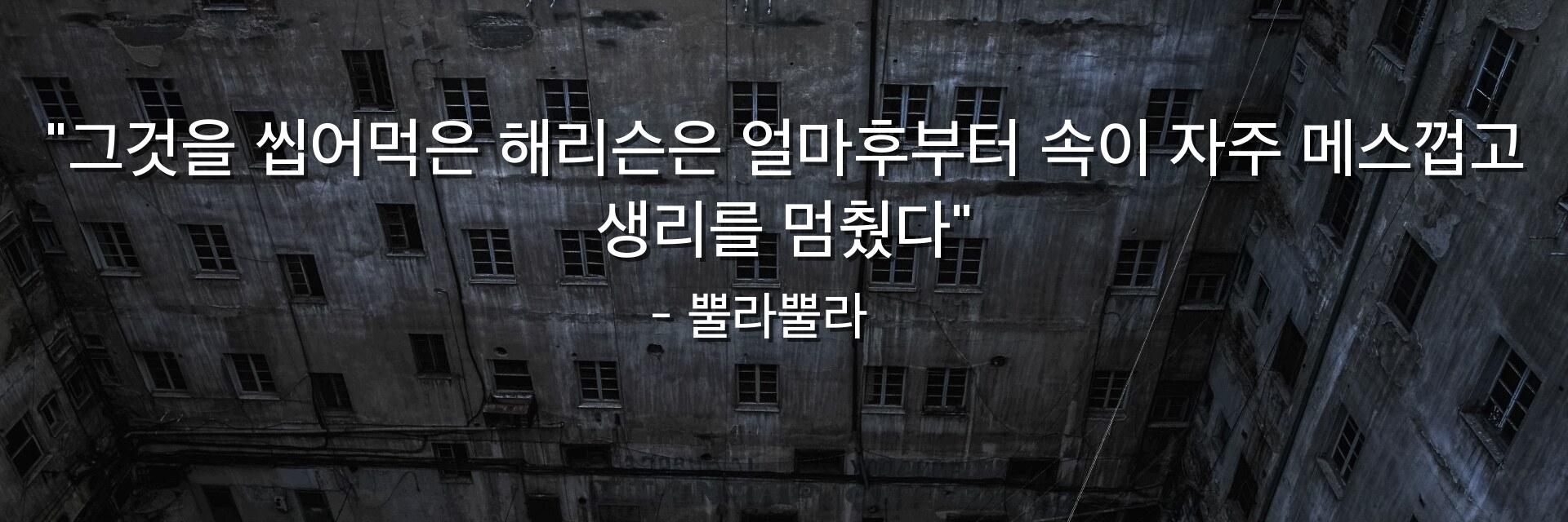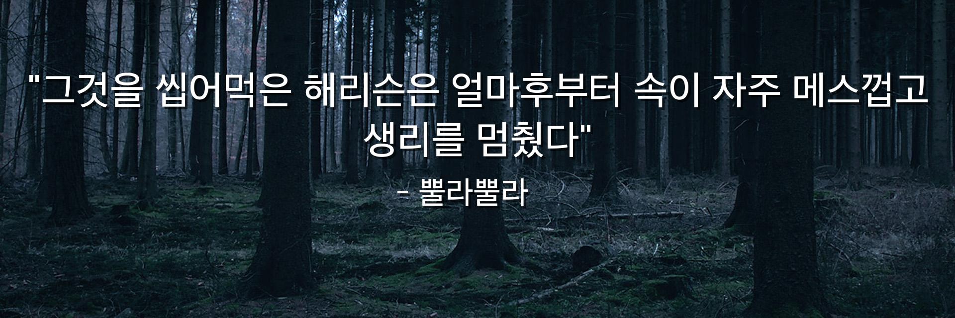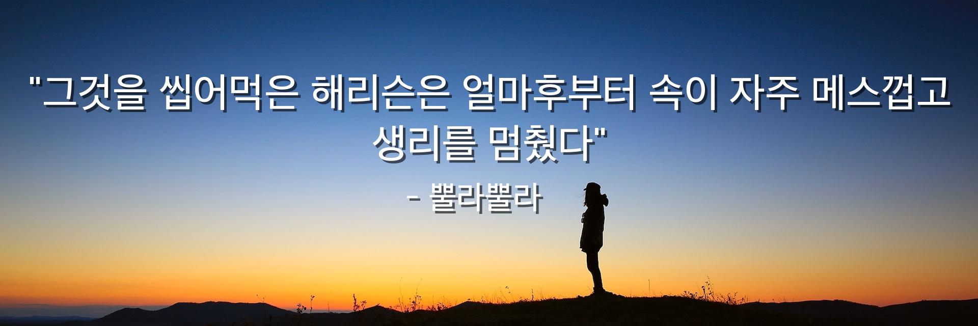 "그것을 씹어먹은 해리슨은 얼마후부터 속이 자주 메스껍고 생리를 멈췄다"