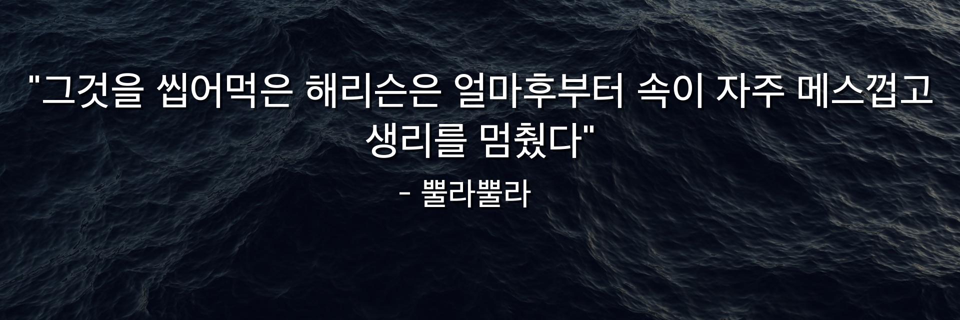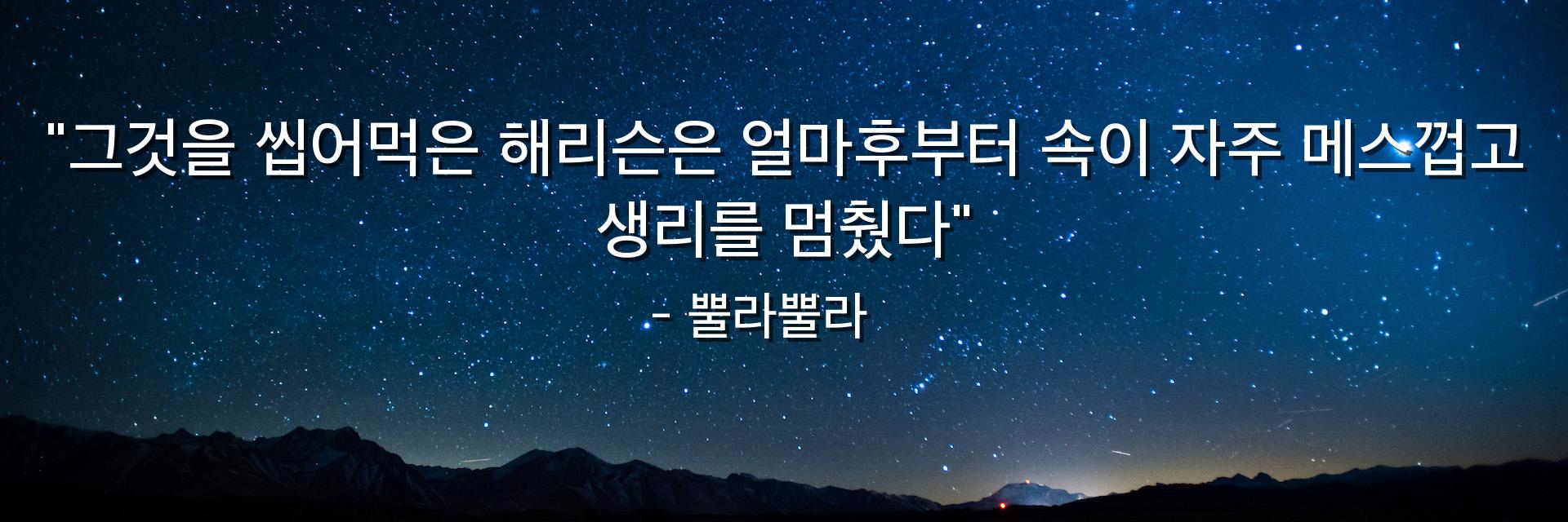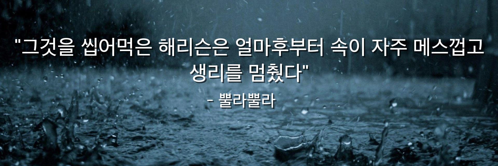 "그것을 씹어먹은 해리슨은 얼마후부터 속이 자주 메스껍고 생리를 멈췄다"