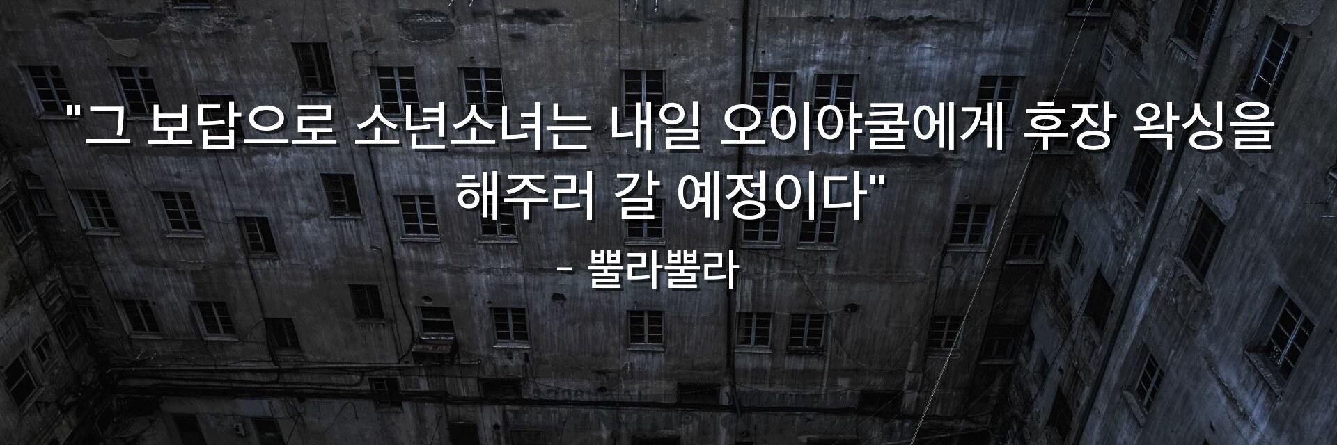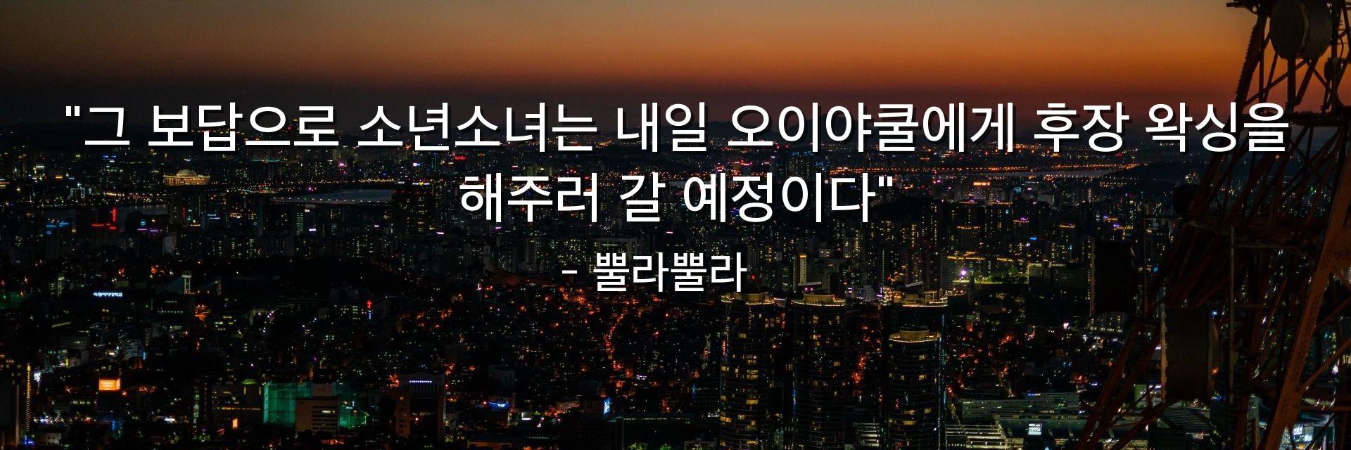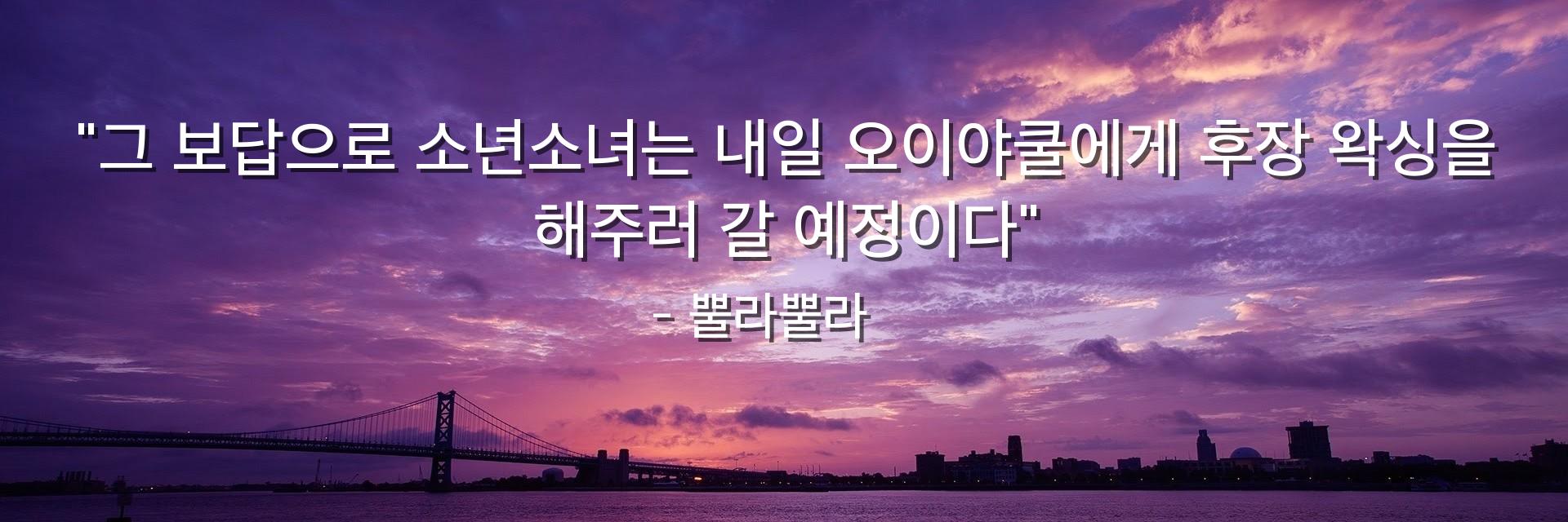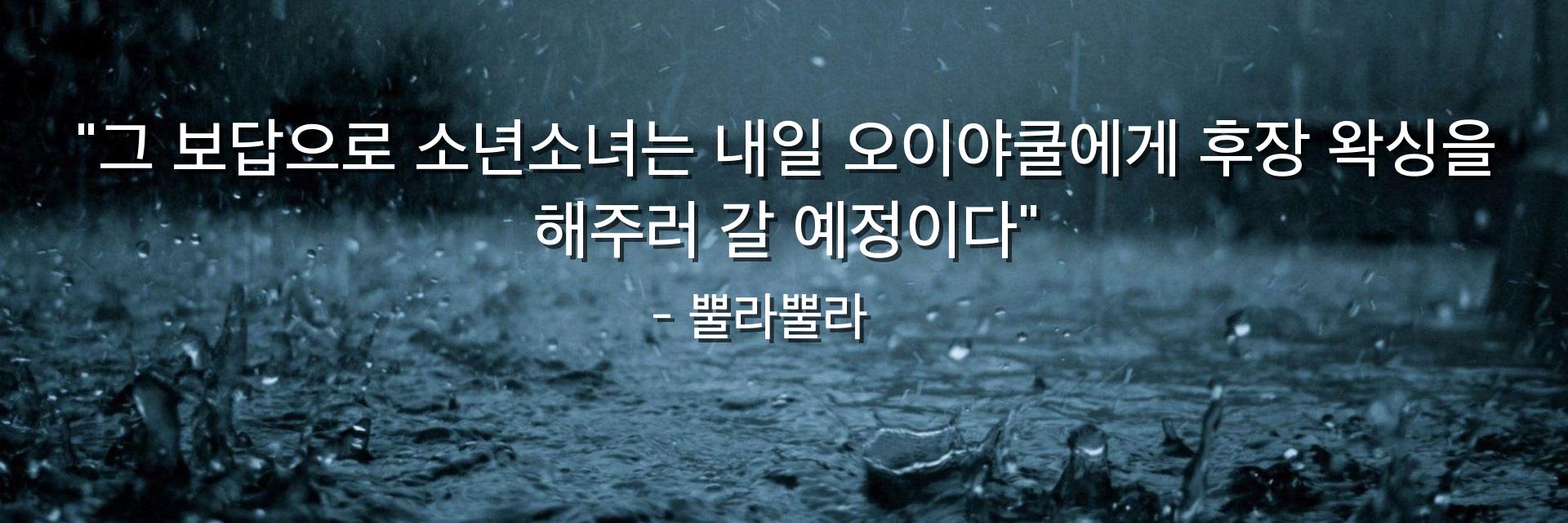 "그 보답으로 소년소녀는 내일 오이야쿨에게 후장 왁싱을 해주러 갈 예정이다"