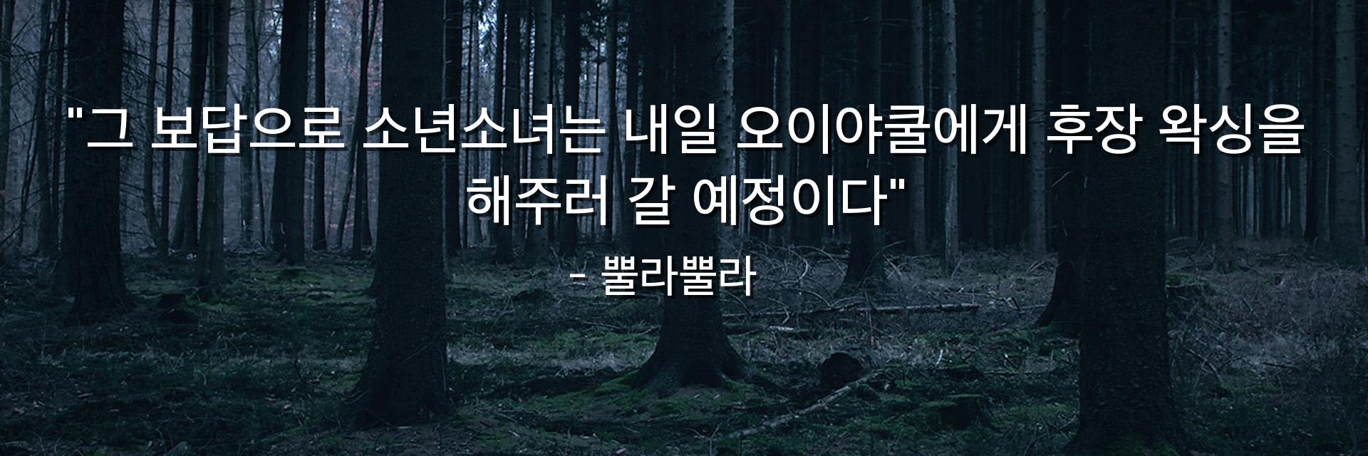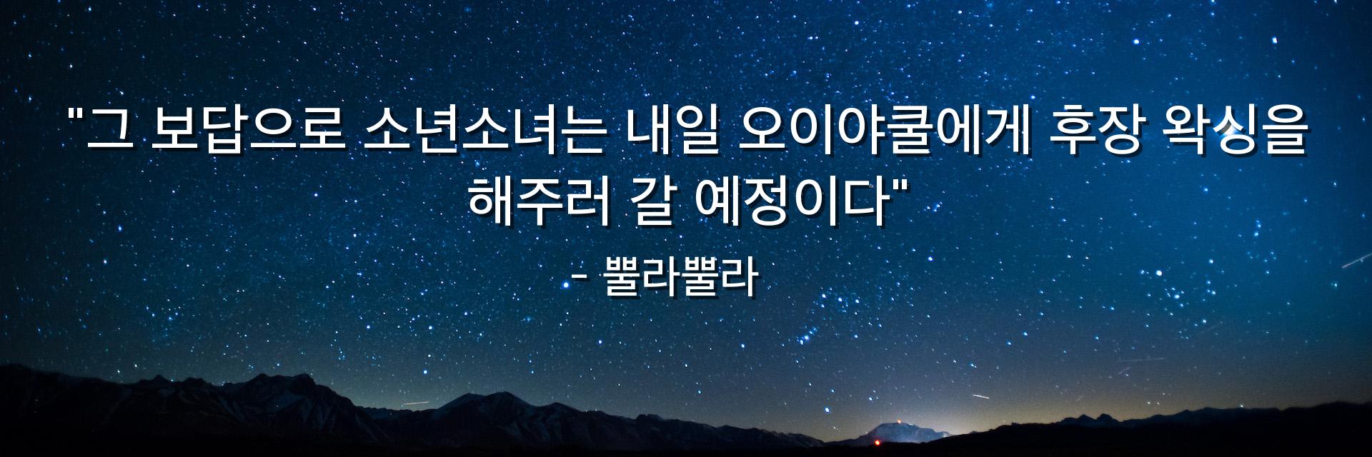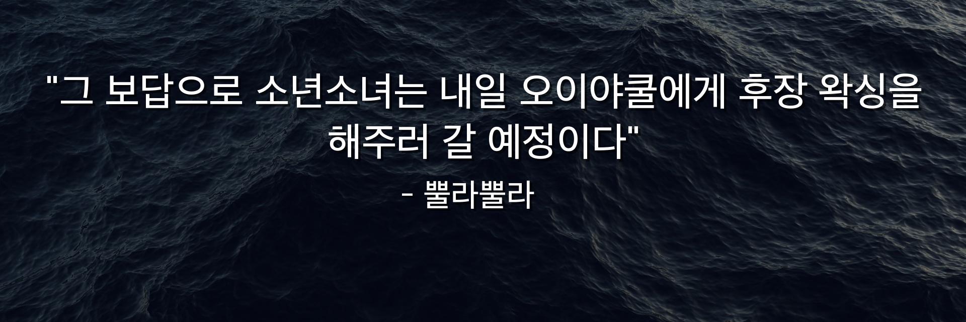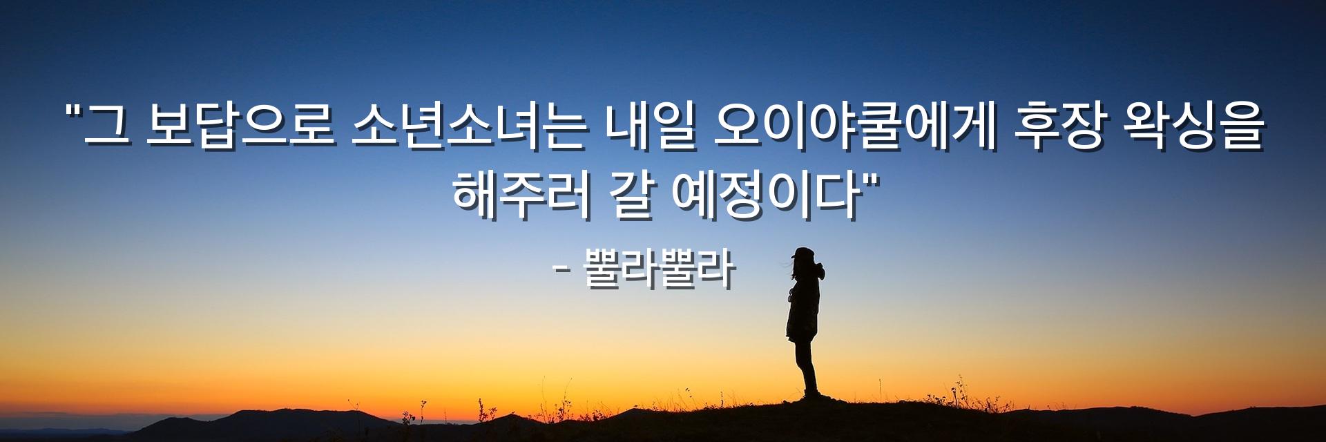 "그 보답으로 소년소녀는 내일 오이야쿨에게 후장 왁싱을 해주러 갈 예정이다"