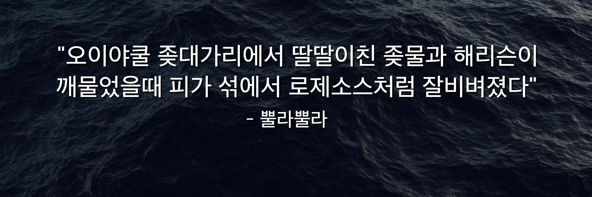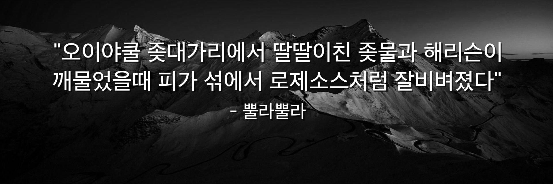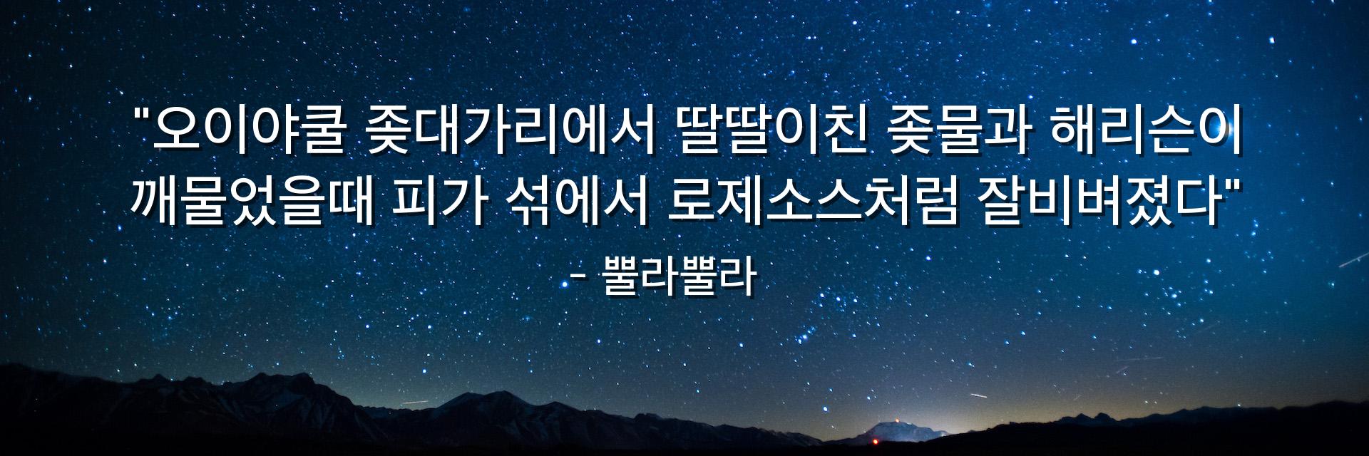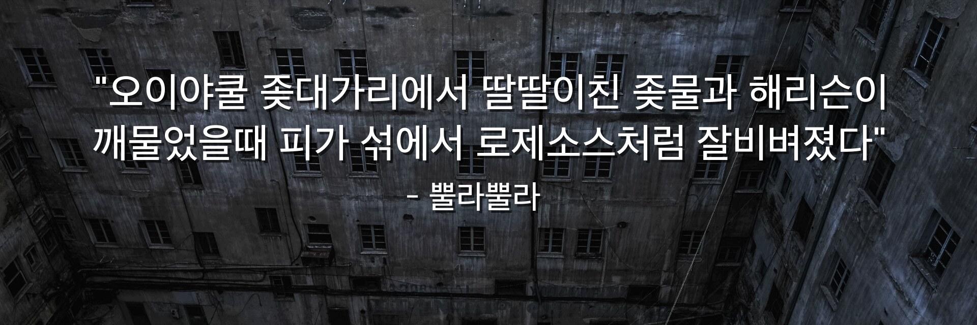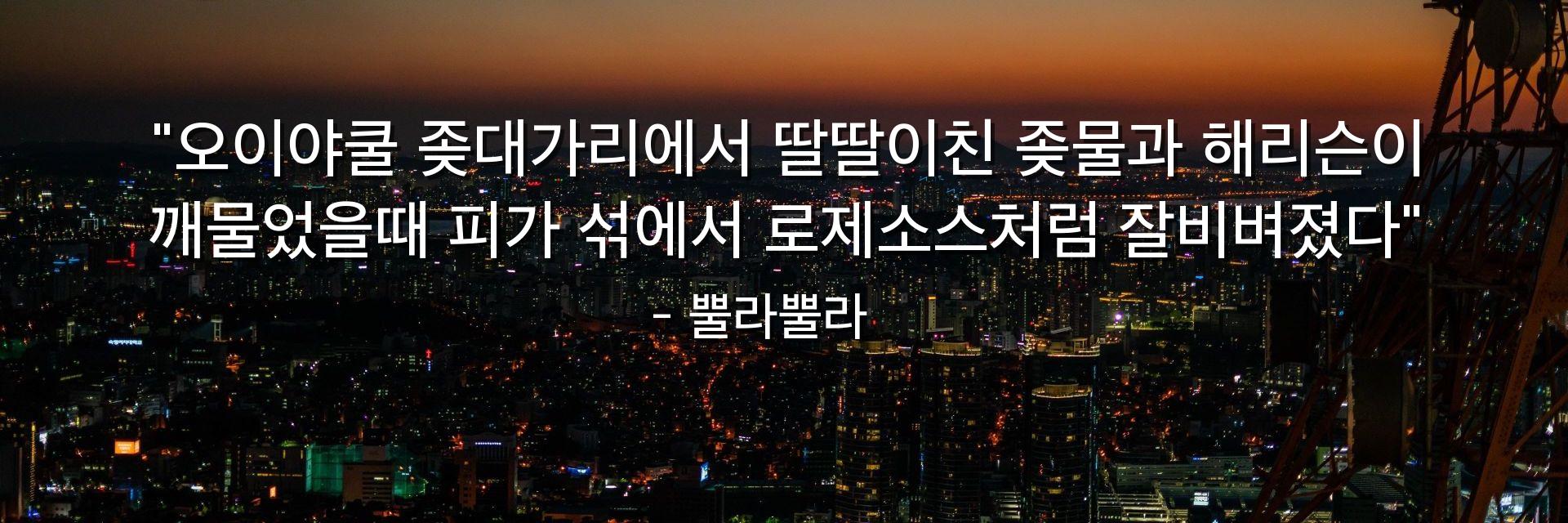 "오이야쿨 좆대가리에서 딸딸이친 좆물과 해리슨이 깨물었을때 피가 섞에서 로제소스처럼 잘비벼졌다"