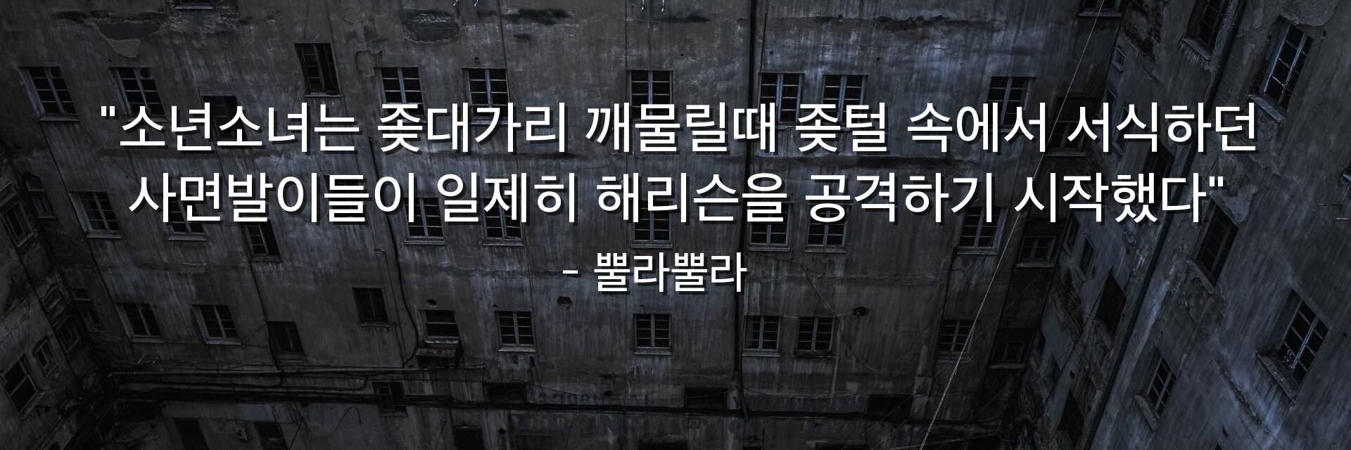"소년소녀는 좆대가리 깨물릴때 좆털 속에서 서식하던 사면발이들이 일제히 해리슨을 공격하기 시작했다"