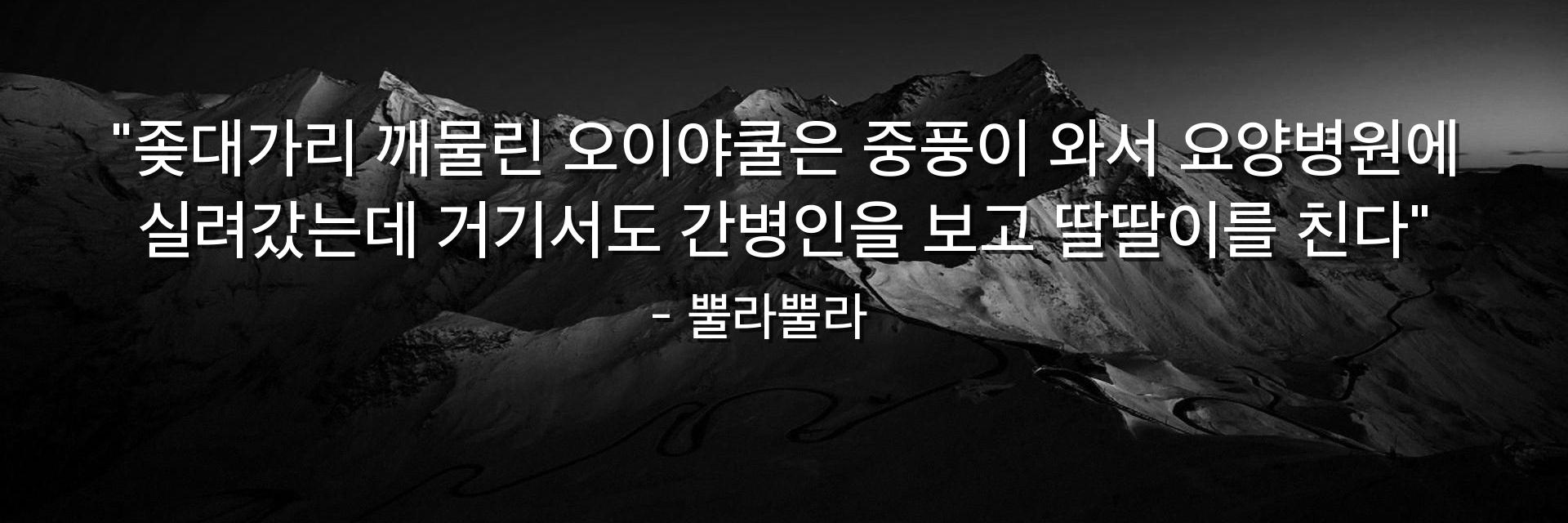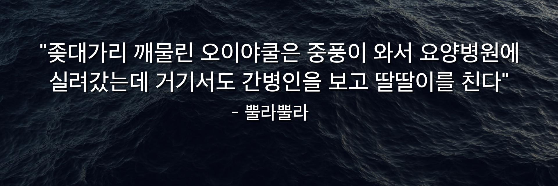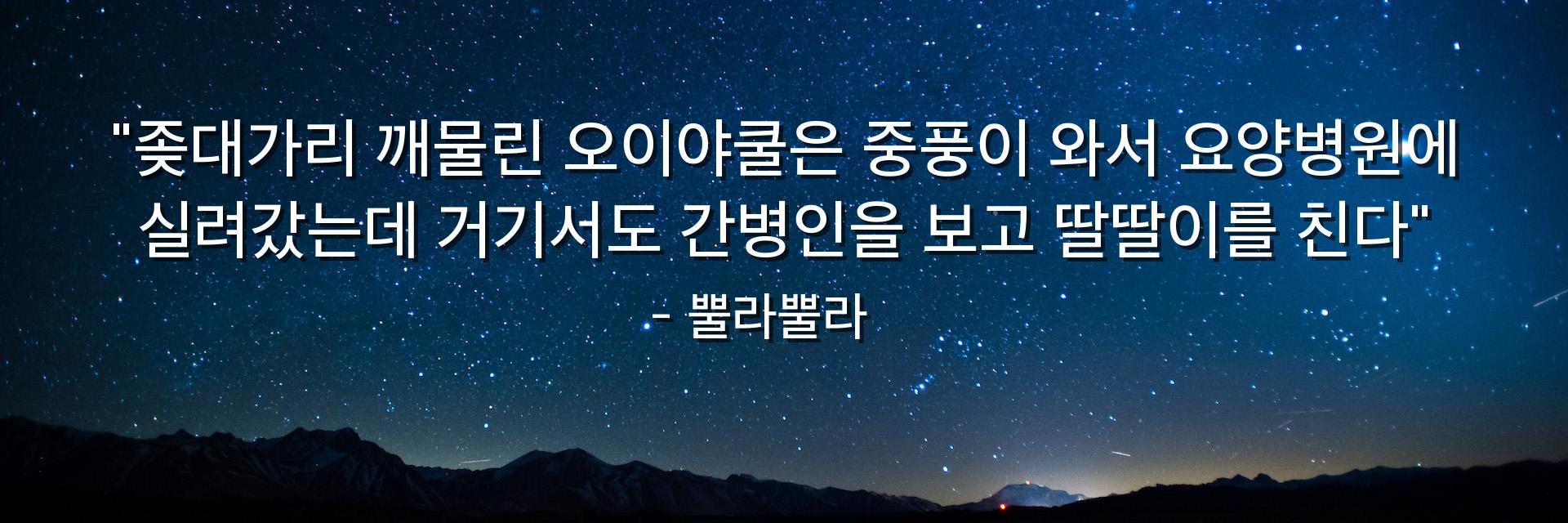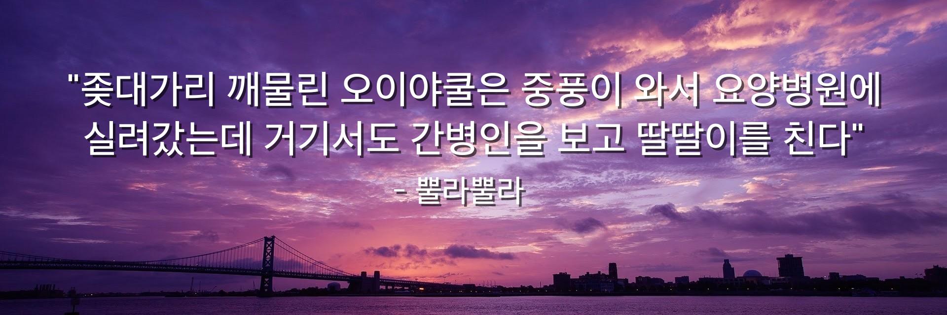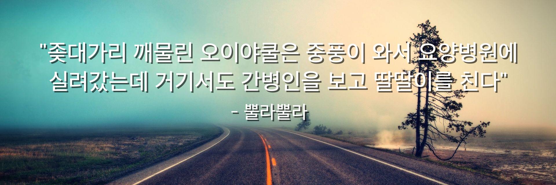 "좆대가리 깨물린 오이야쿨은 중풍이 와서 요양병원에 실려갔는데 거기서도 간병인을 보고 딸딸이를 친다"
