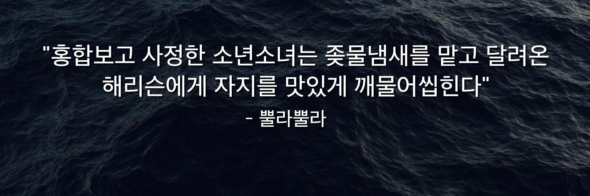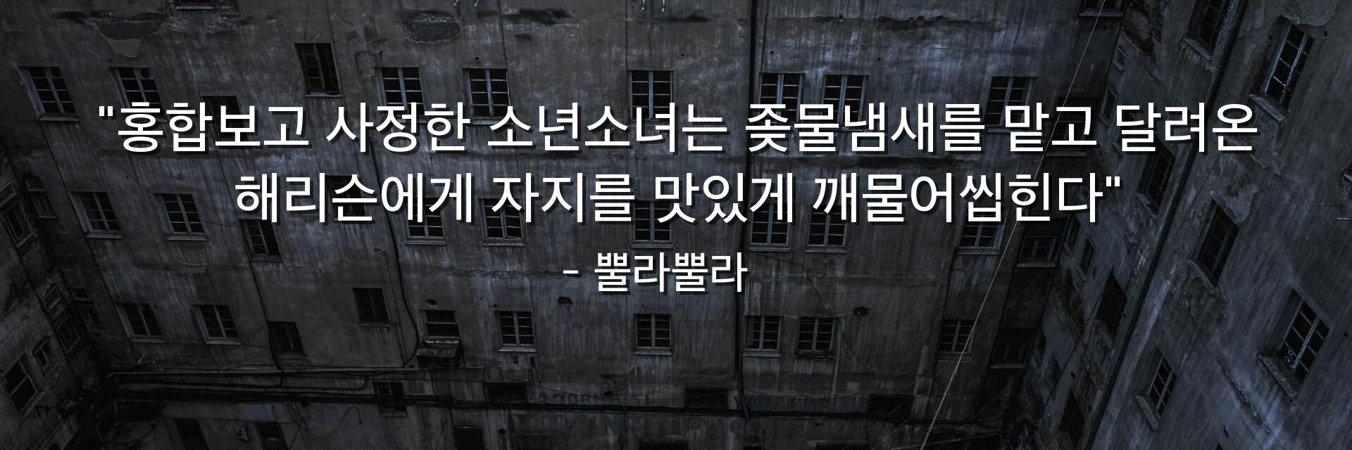 "홍합보고 사정한 소년소녀는 좆물냄새를 맡고 달려온 해리슨에게 자지를 맛있게 깨물어씹힌다"