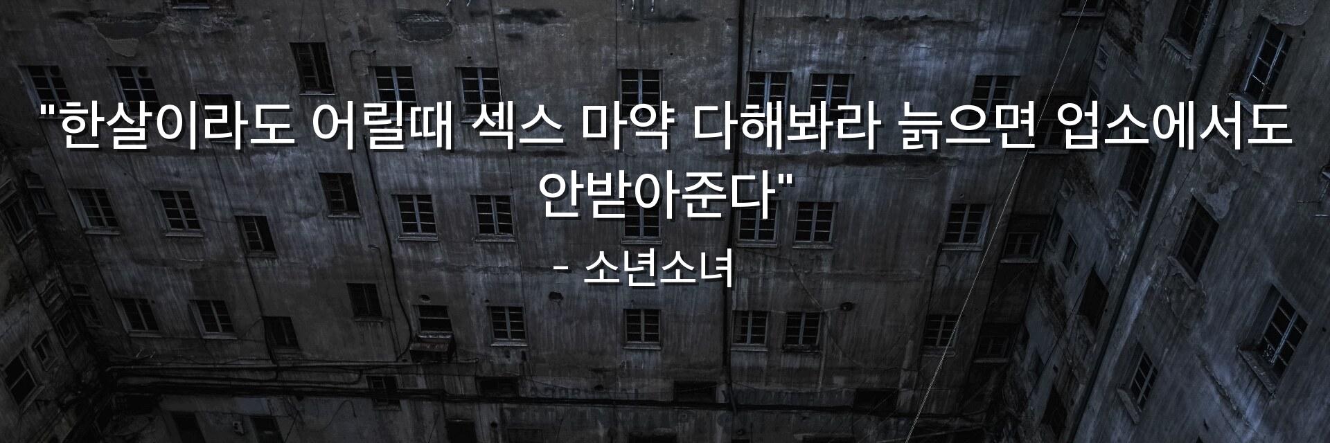"한살이라도 어릴때 섹스 마약 다해봐라 늙으면 업소에서도 안받아준다"