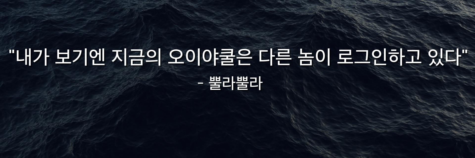"내가 보기엔 지금의 오이야쿨은 다른 놈이 로그인하고 있다"
