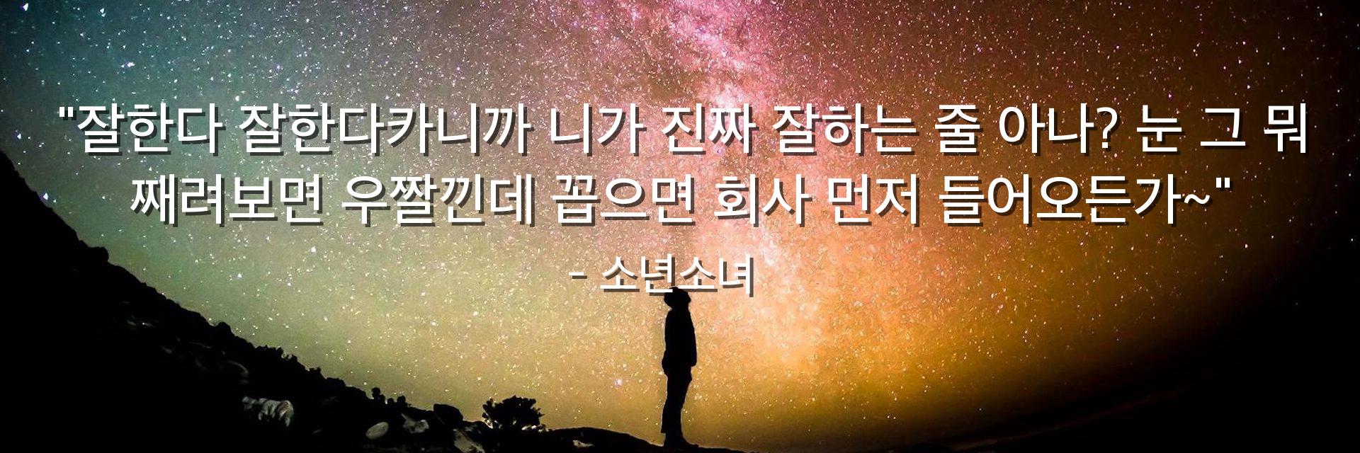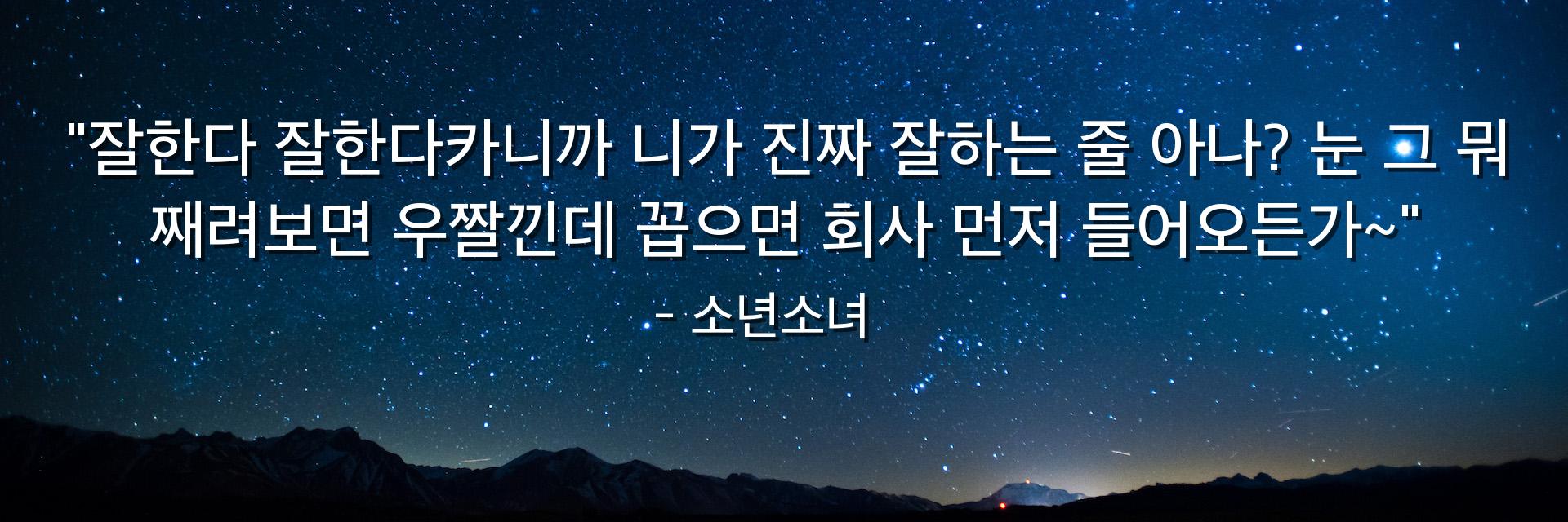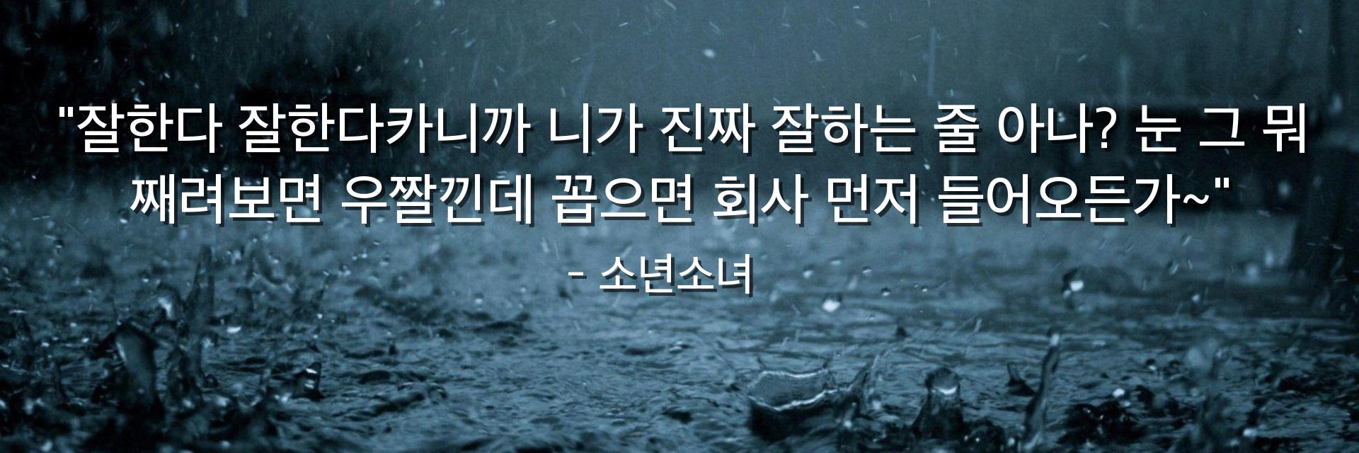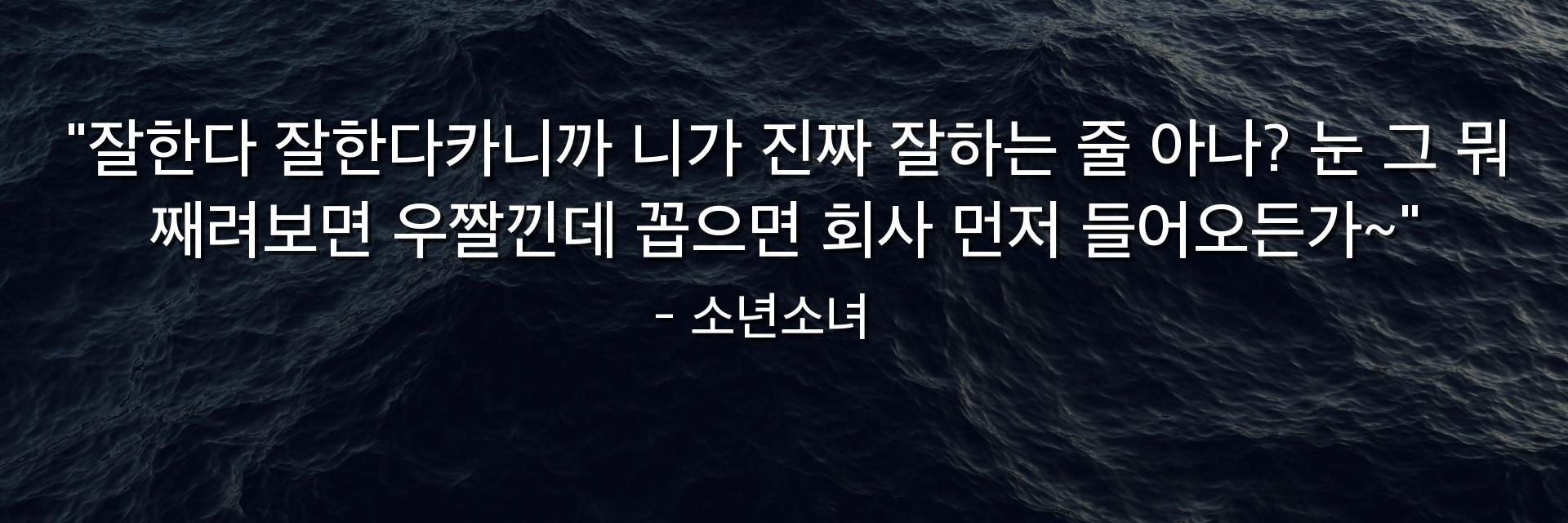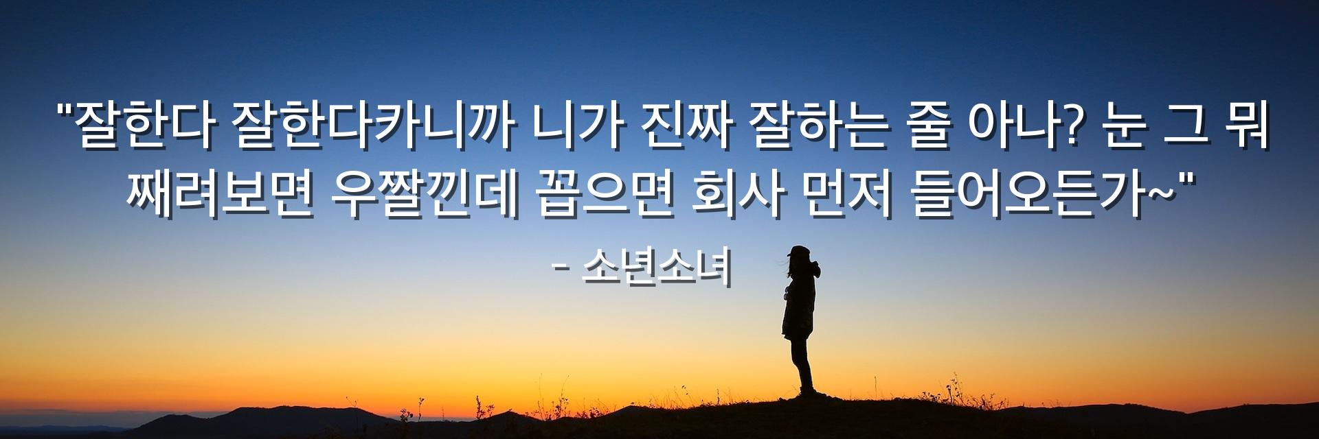 "잘한다 잘한다카니까 니가 진짜 잘하는 줄 아나? 눈 그 뭐 째려보면 우짤낀데 꼽으면 회사 먼저 들어오든가~"
