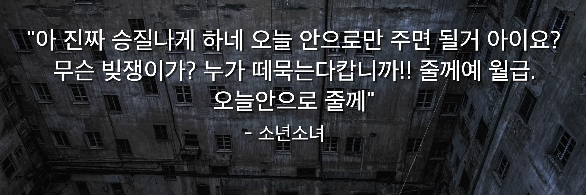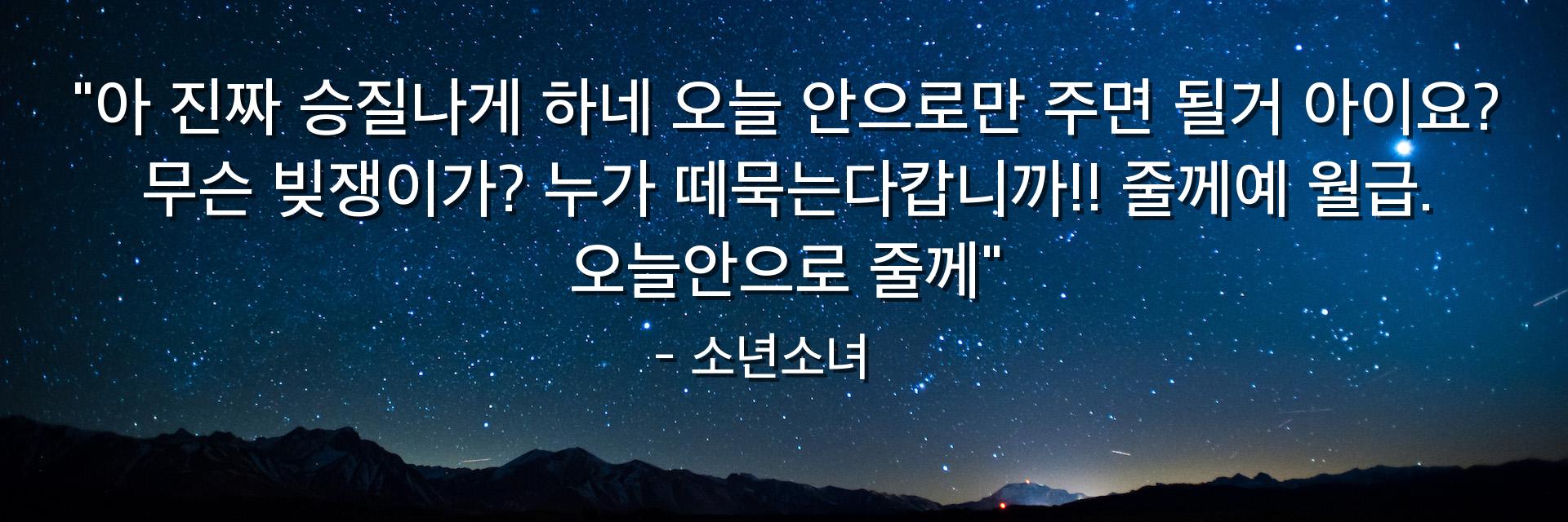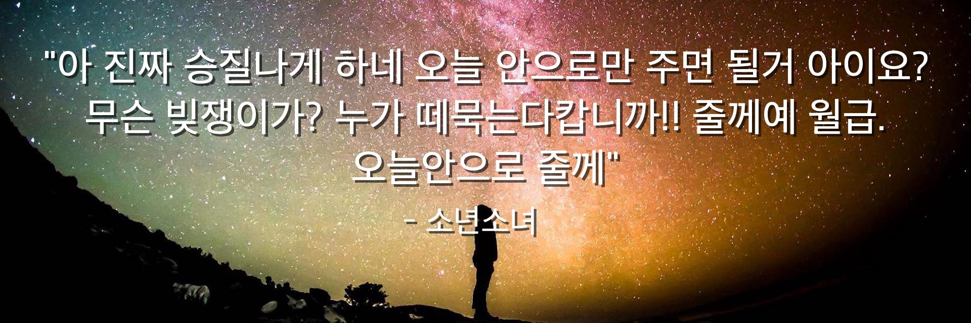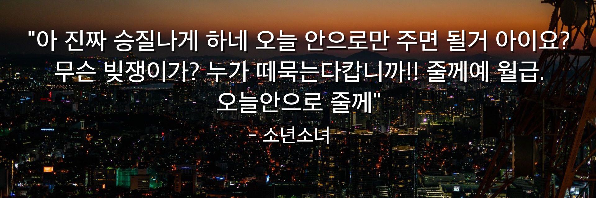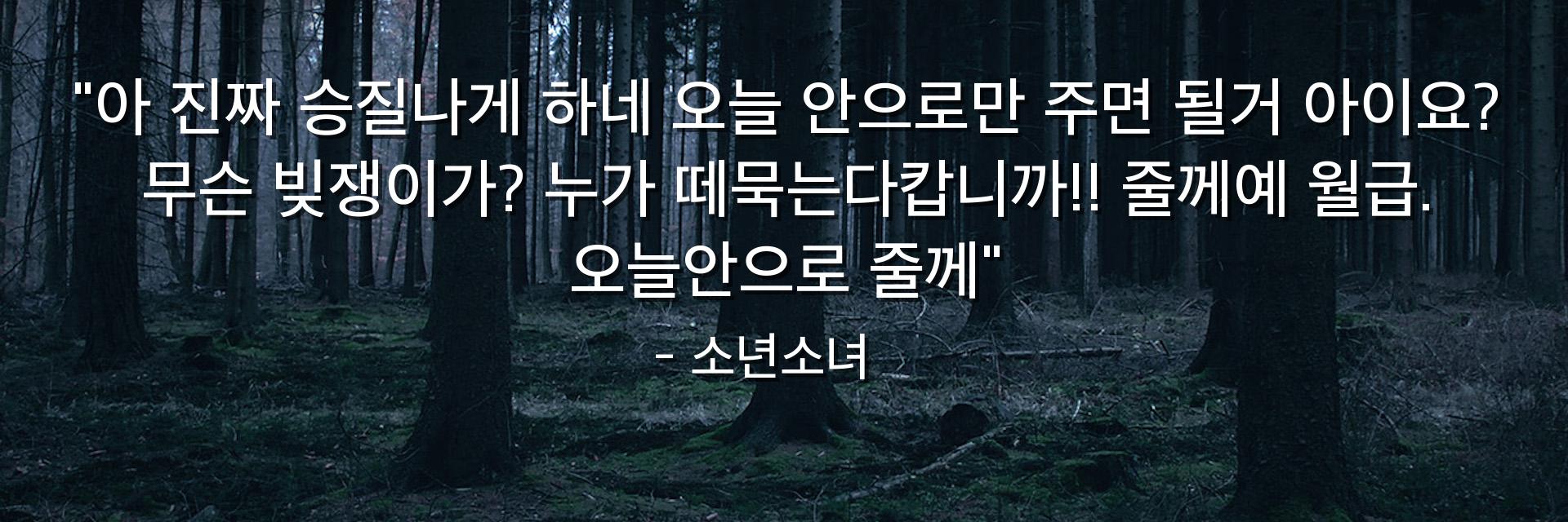 "아 진짜 승질나게 하네 오늘 안으로만 주면 될거 아이요? 무슨 빚쟁이가? 누가 떼묵는다캅니까!! 줄께예 월급. 오늘안으로 줄께"