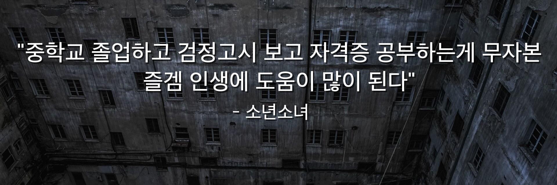 "중학교 졸업하고 검정고시 보고 자격증 공부하는게 무자본 즐겜 인생에 도움이 많이 된다"