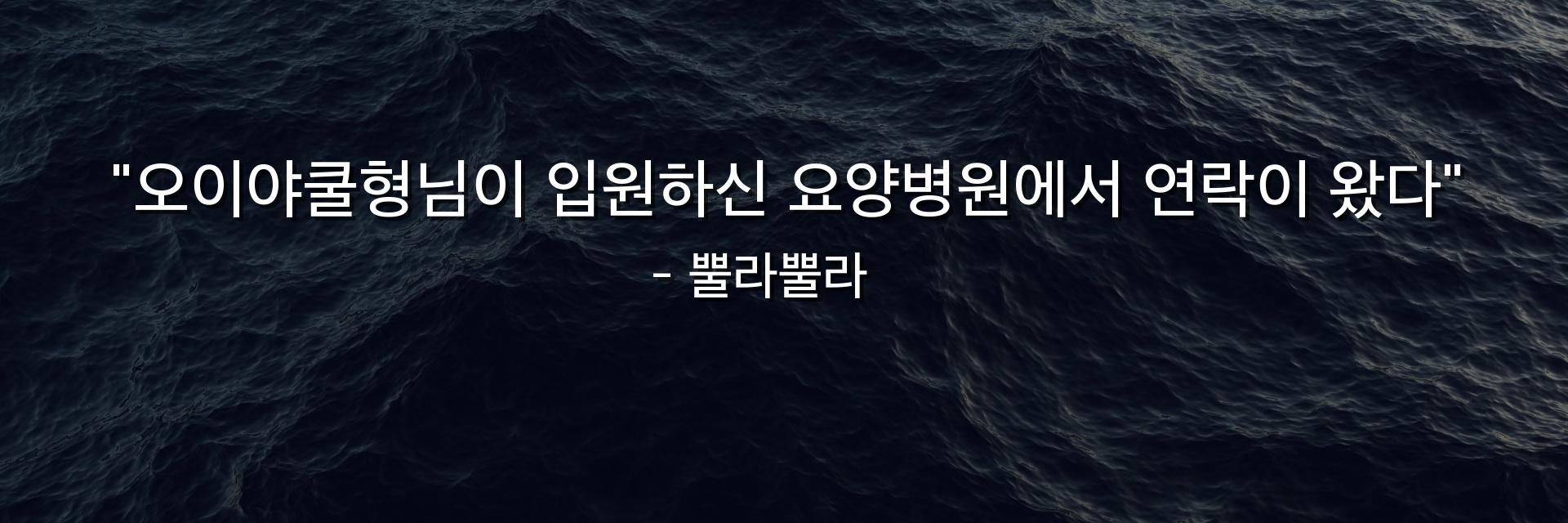 "오이야쿨형님이 입원하신 요양병원에서 연락이 왔다"