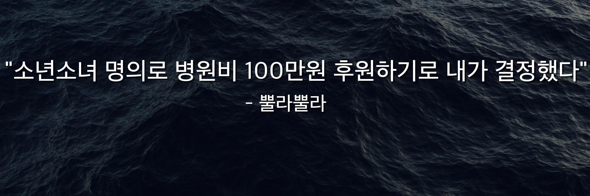 "소년소녀 명의로 병원비 100만원 후원하기로 내가 결정했다"