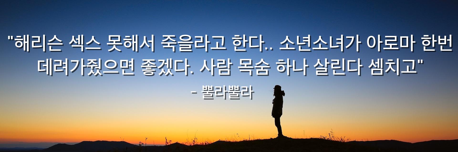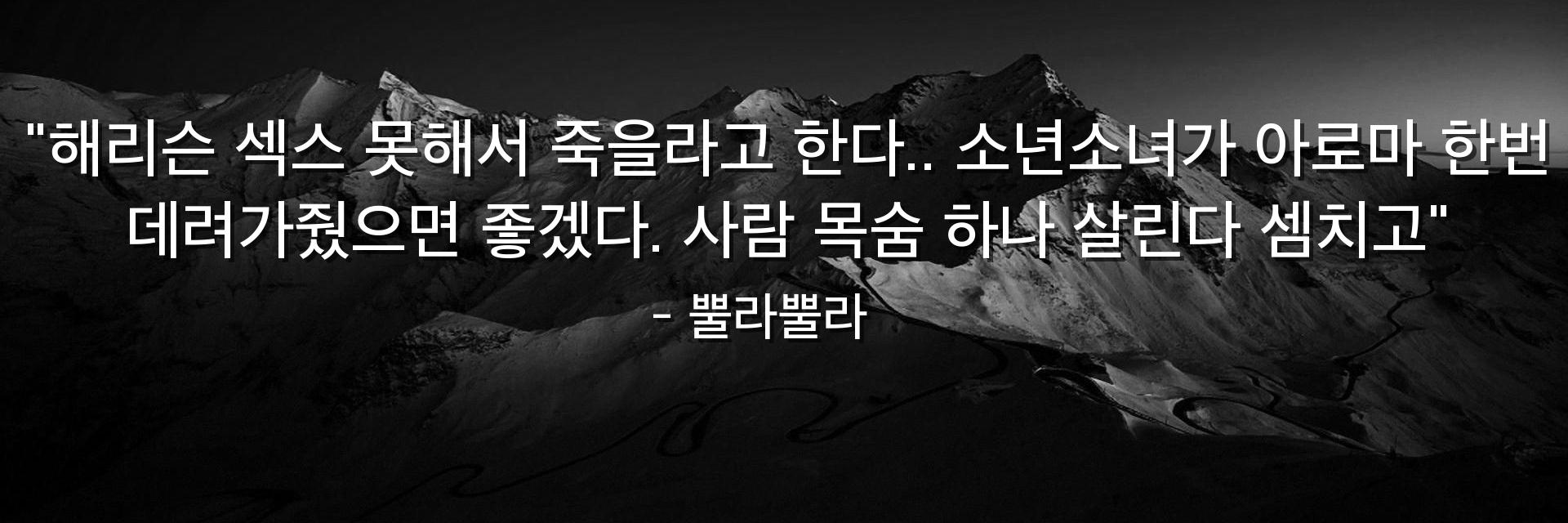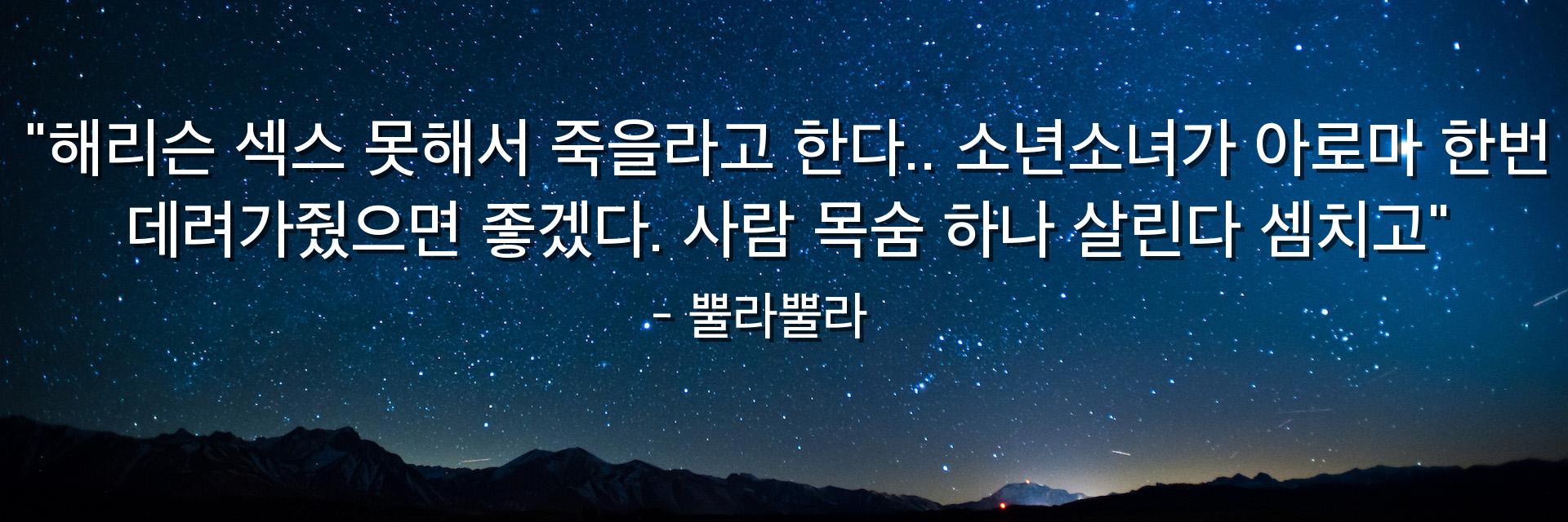 "해리슨 섹스 못해서 죽을라고 한다.. 소년소녀가 아로마 한번 데려가줬으면 좋겠다. 사람 목숨 하나 살린다 셈치고"