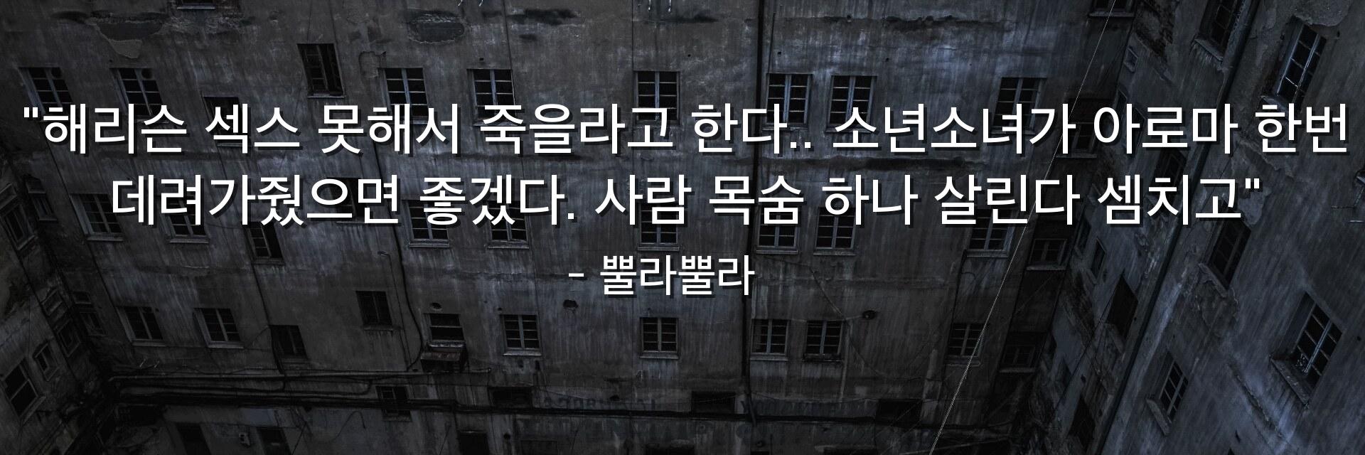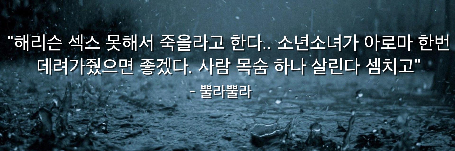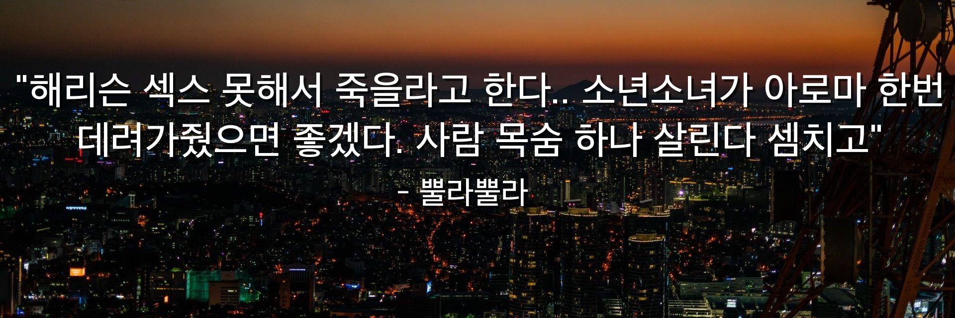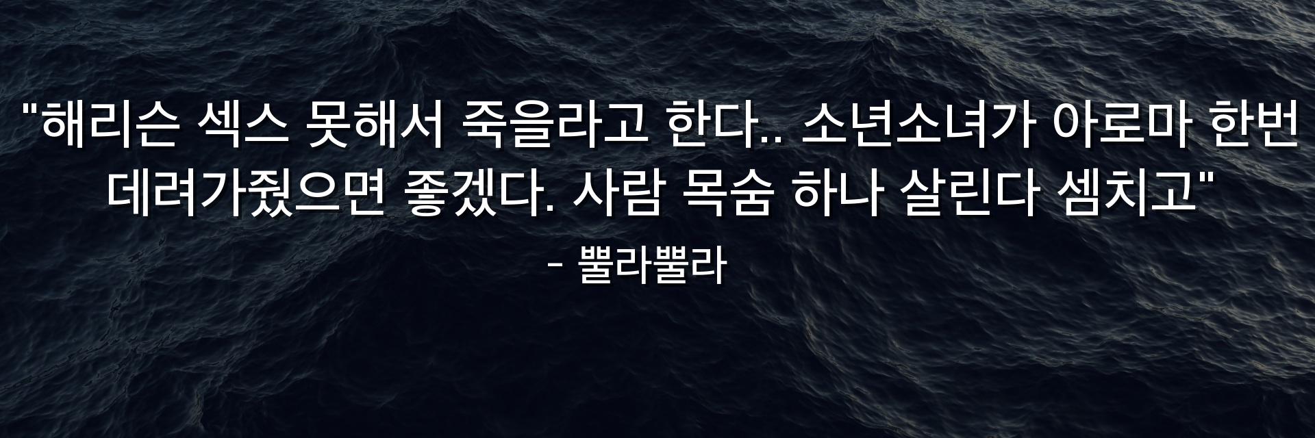 "해리슨 섹스 못해서 죽을라고 한다.. 소년소녀가 아로마 한번 데려가줬으면 좋겠다. 사람 목숨 하나 살린다 셈치고"