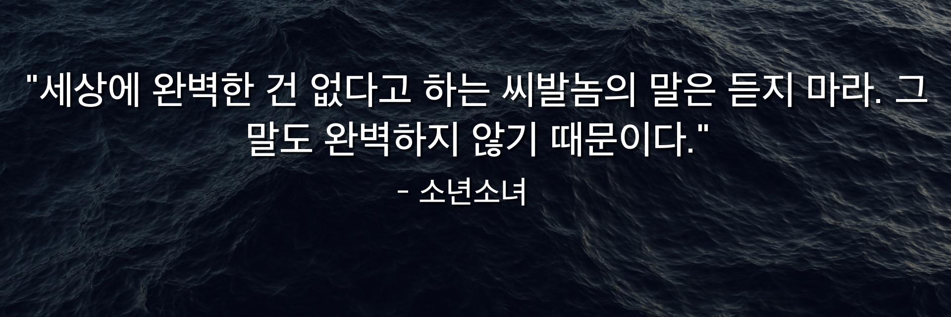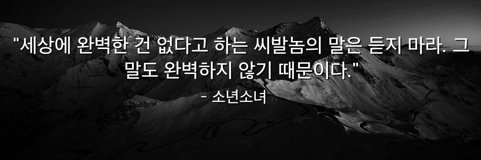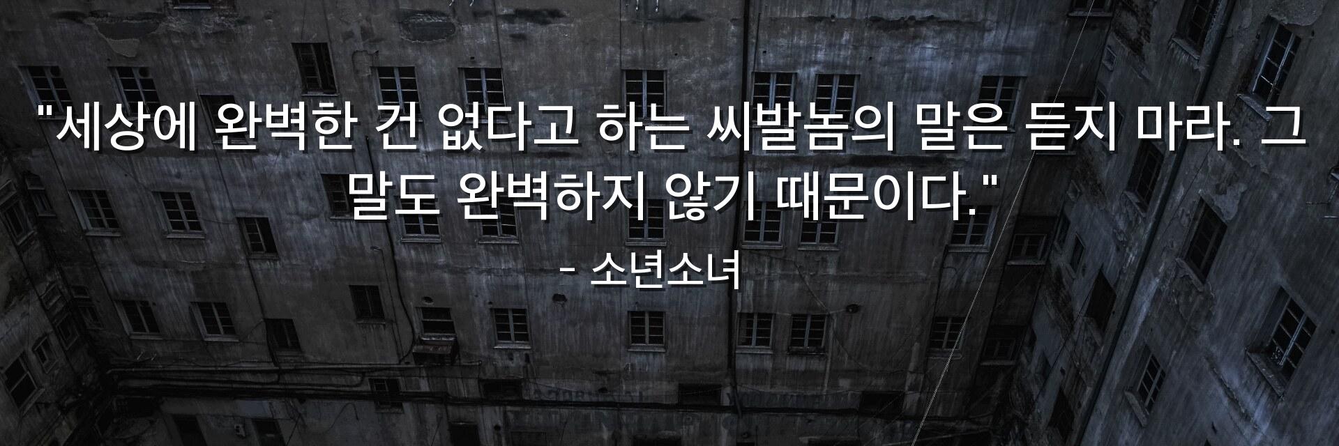 "세상에 완벽한 건 없다고 하는 씨발놈의 말은 듣지 마라. 그 말도 완벽하지 않기 때문이다."