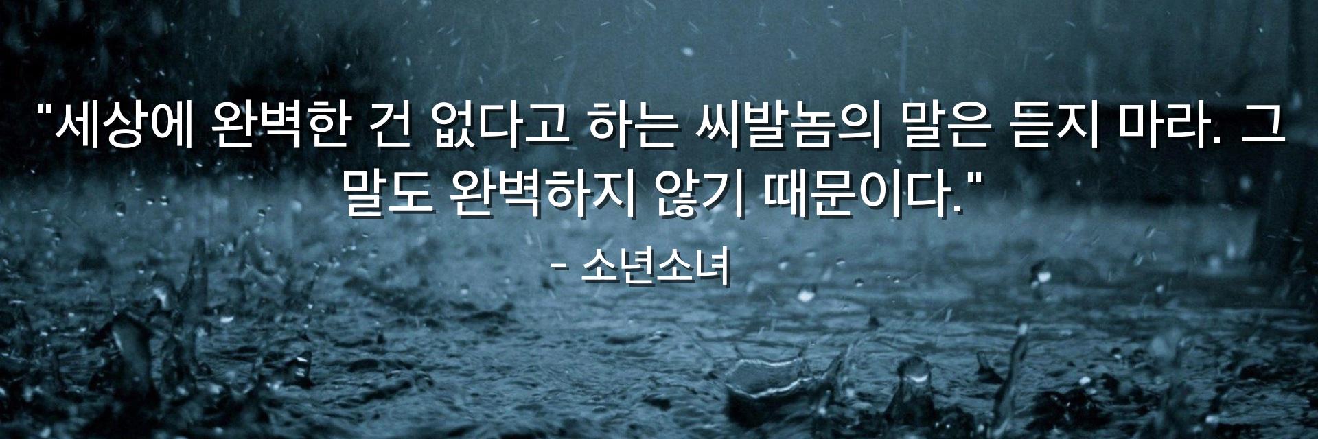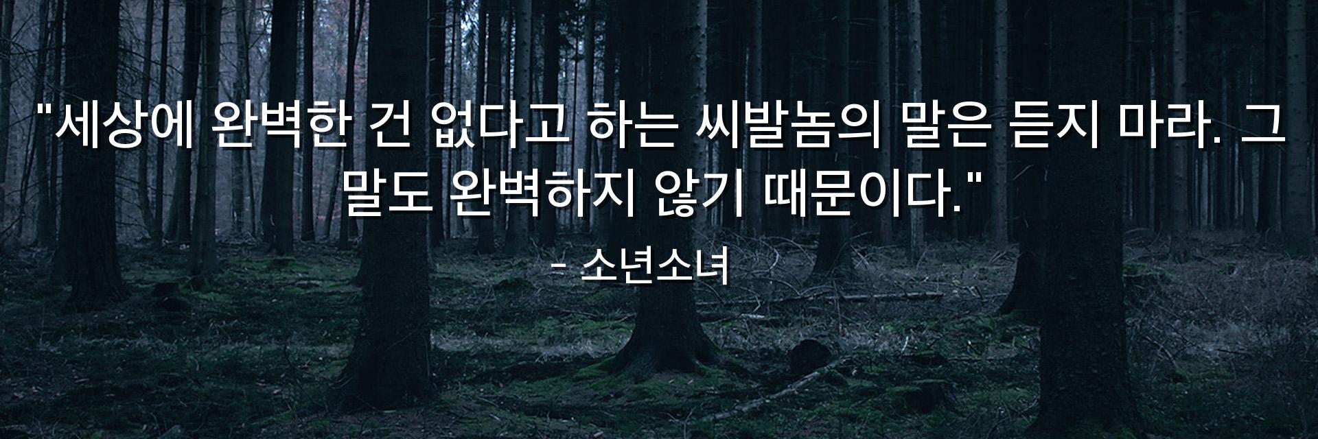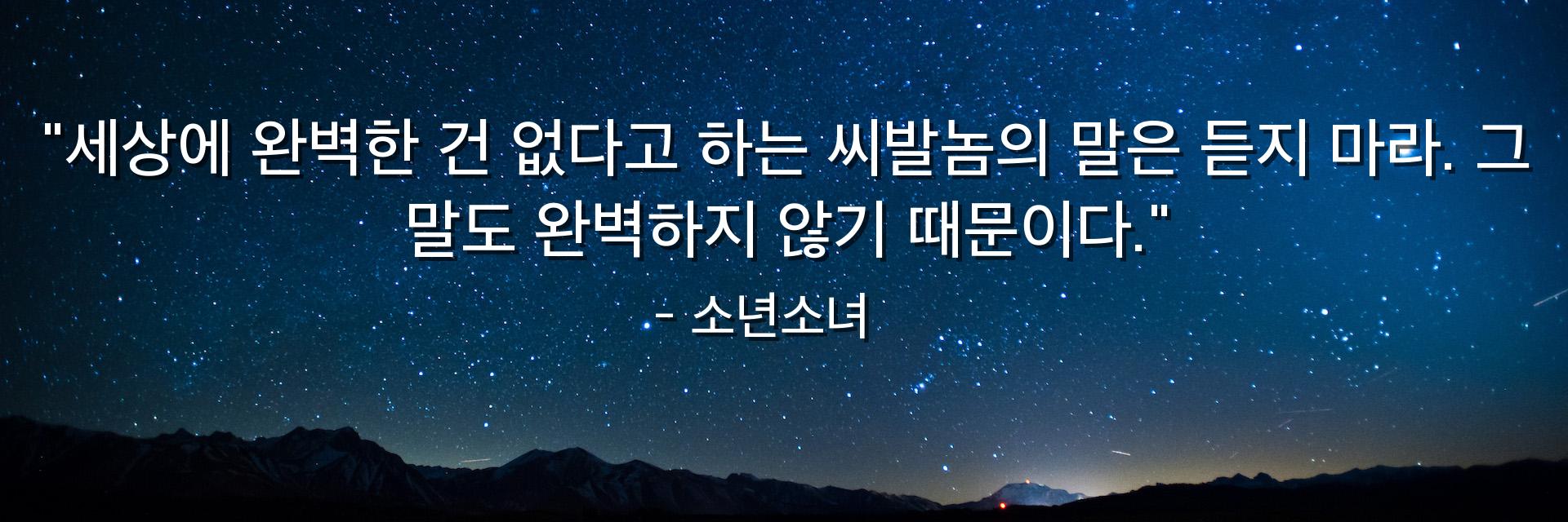 "세상에 완벽한 건 없다고 하는 씨발놈의 말은 듣지 마라. 그 말도 완벽하지 않기 때문이다."