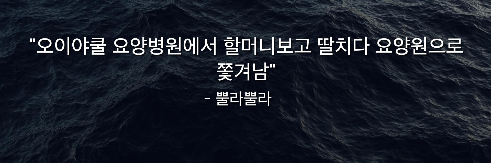 "오이야쿨 요양병원에서 할머니보고 딸치다 요양원으로 쫓겨남"