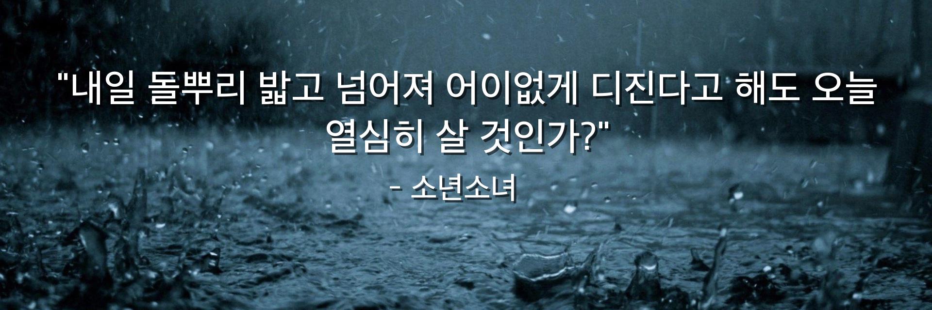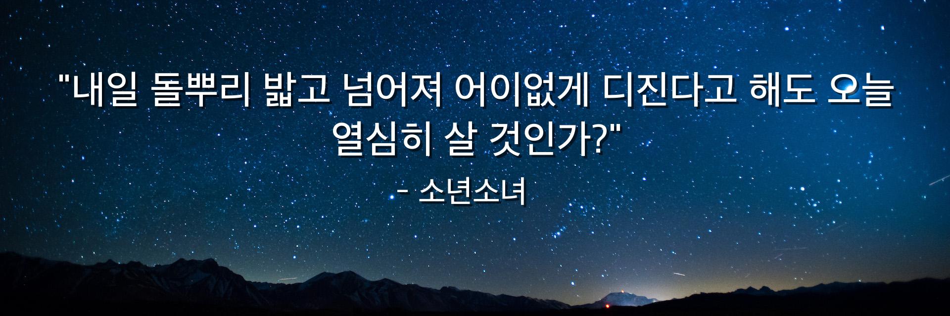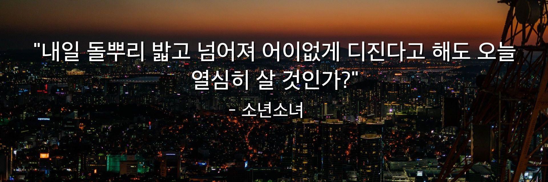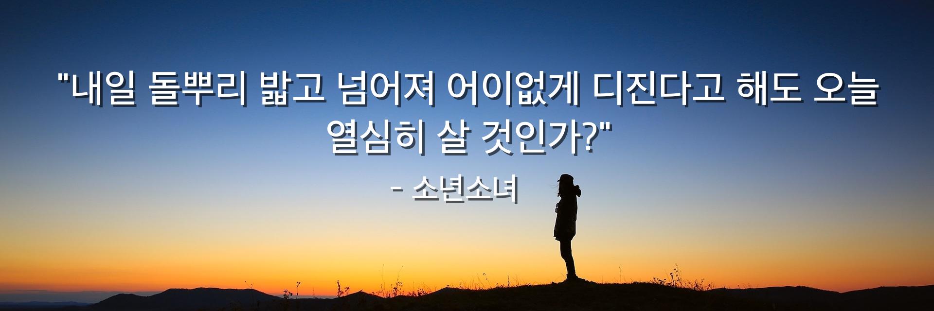 "내일 돌뿌리 밟고 넘어져 어이없게 디진다고 해도 오늘 열심히 살 것인가?"