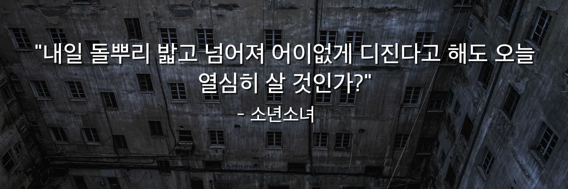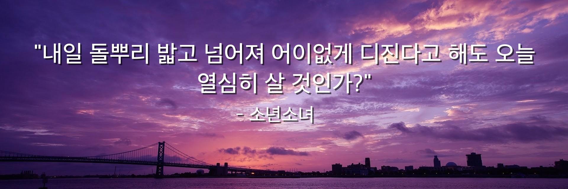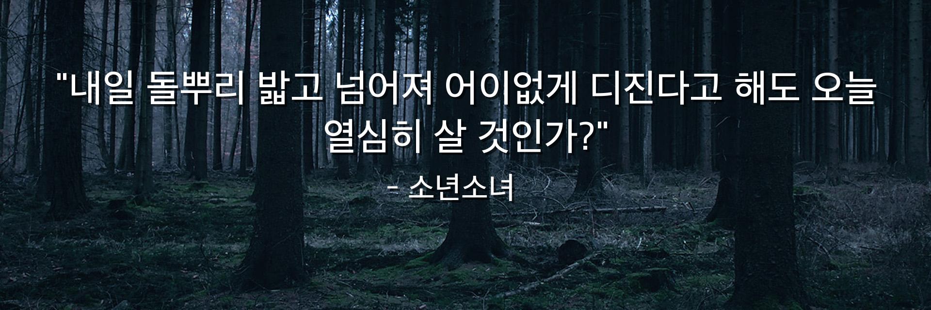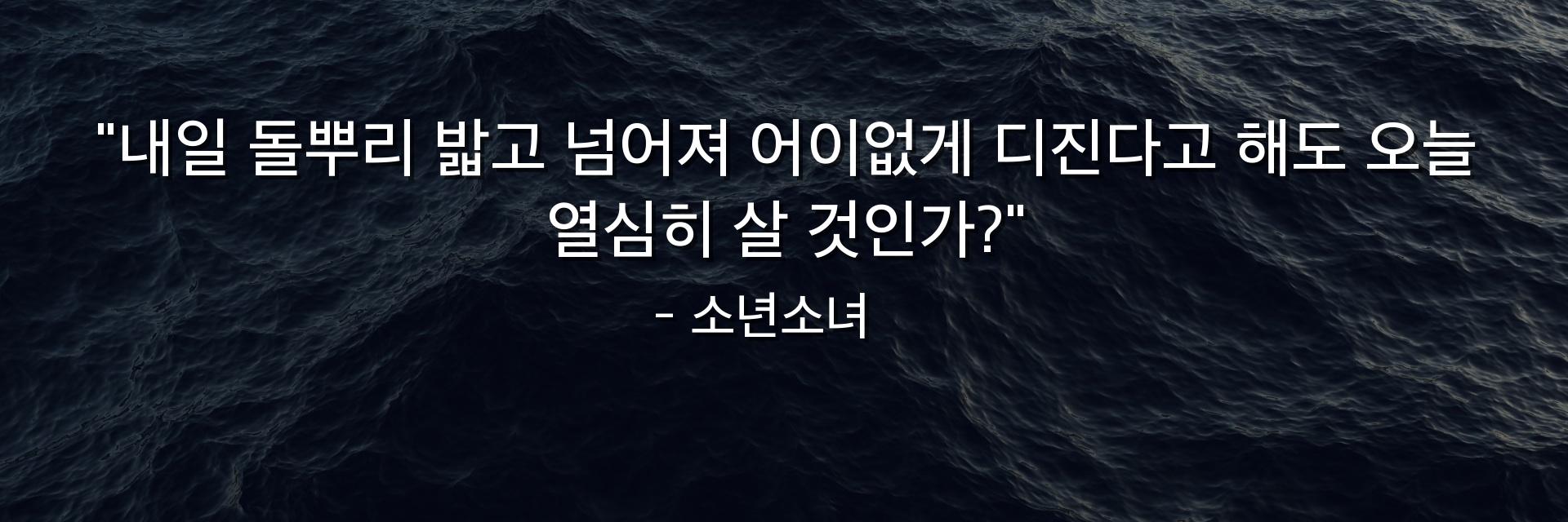 "내일 돌뿌리 밟고 넘어져 어이없게 디진다고 해도 오늘 열심히 살 것인가?"