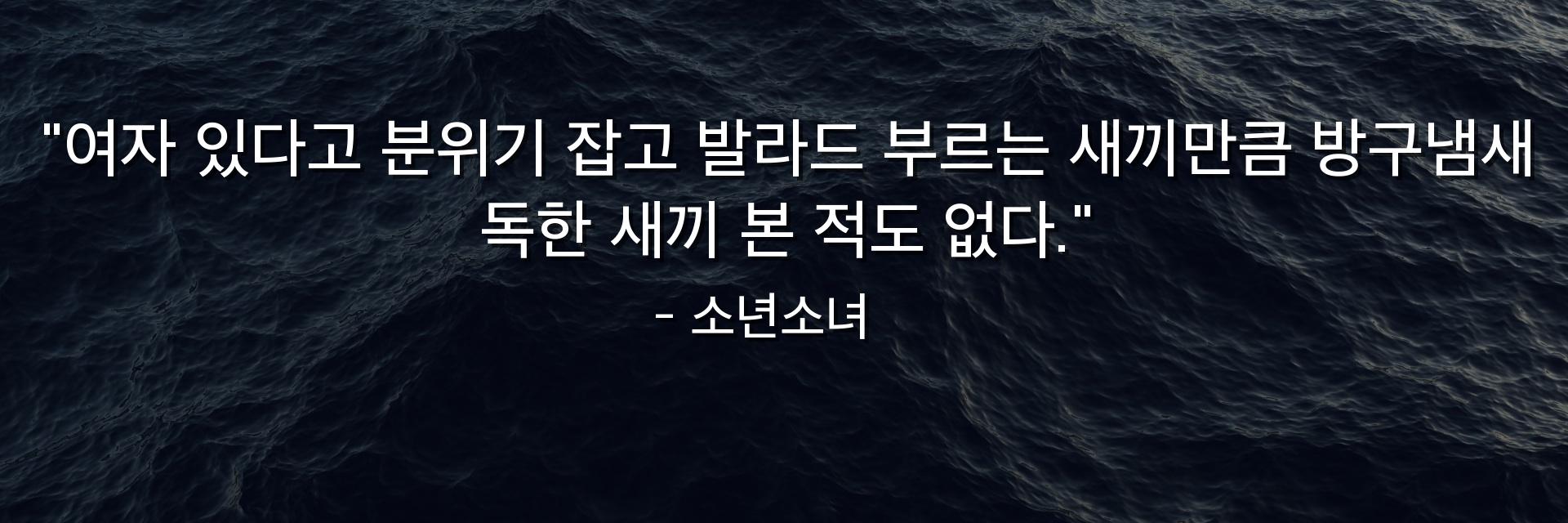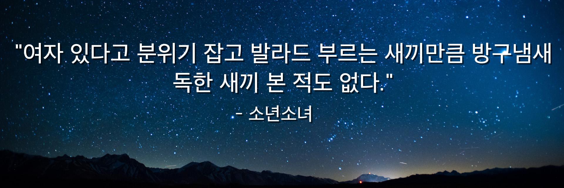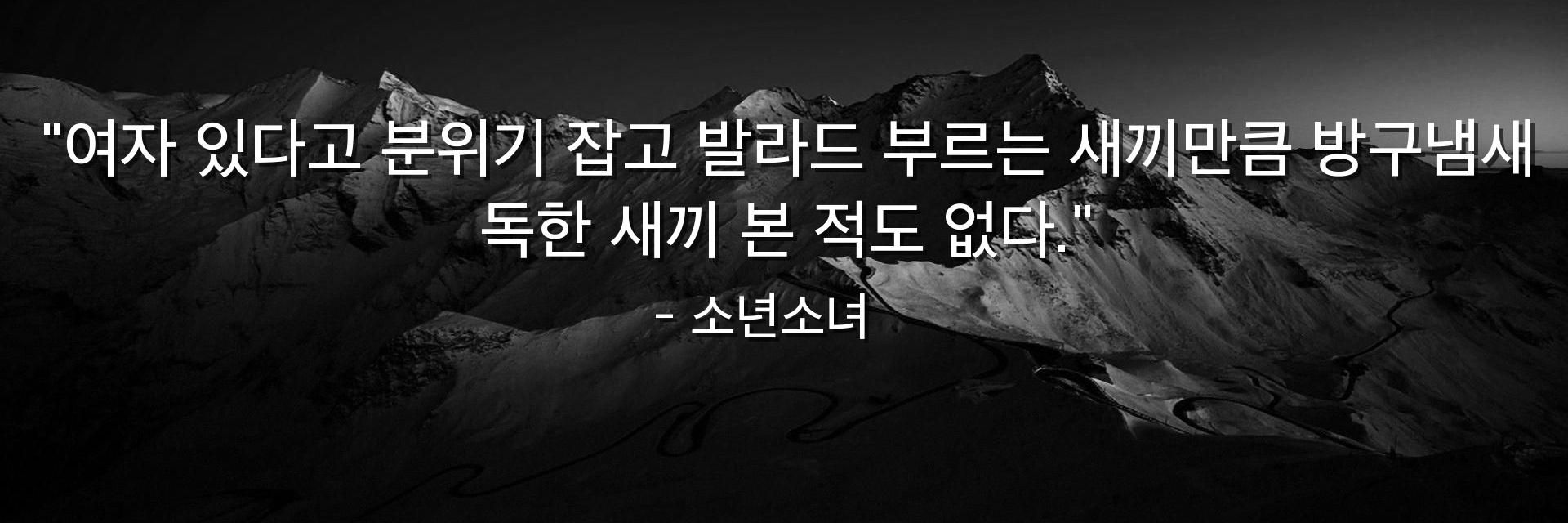 "여자 있다고 분위기 잡고 발라드 부르는 새끼만큼 방구냄새 독한 새끼 본 적도 없다."