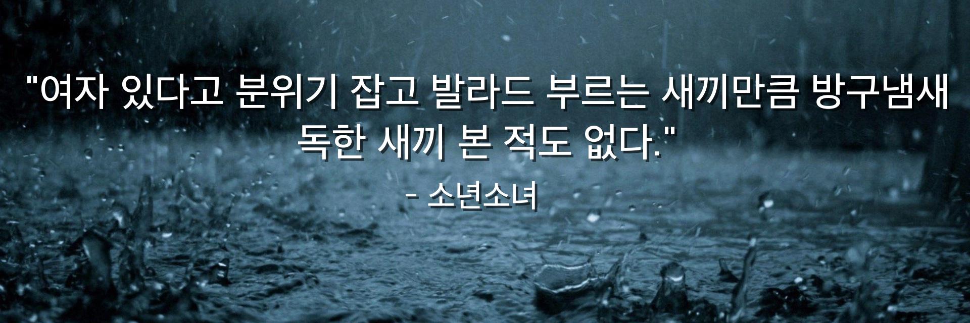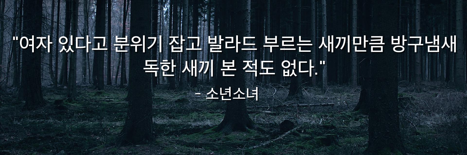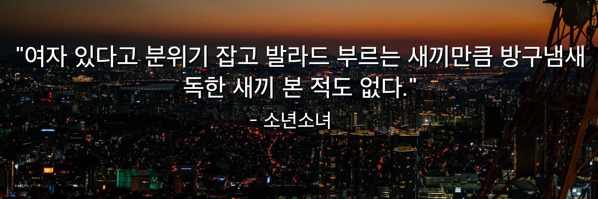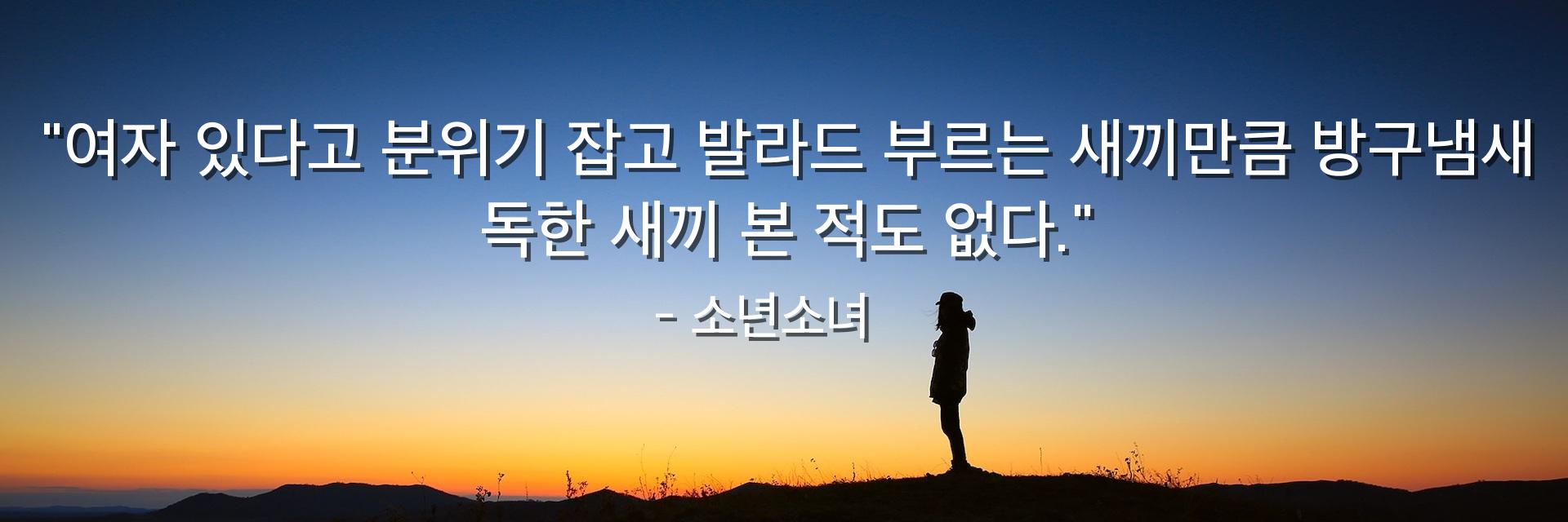 "여자 있다고 분위기 잡고 발라드 부르는 새끼만큼 방구냄새 독한 새끼 본 적도 없다."