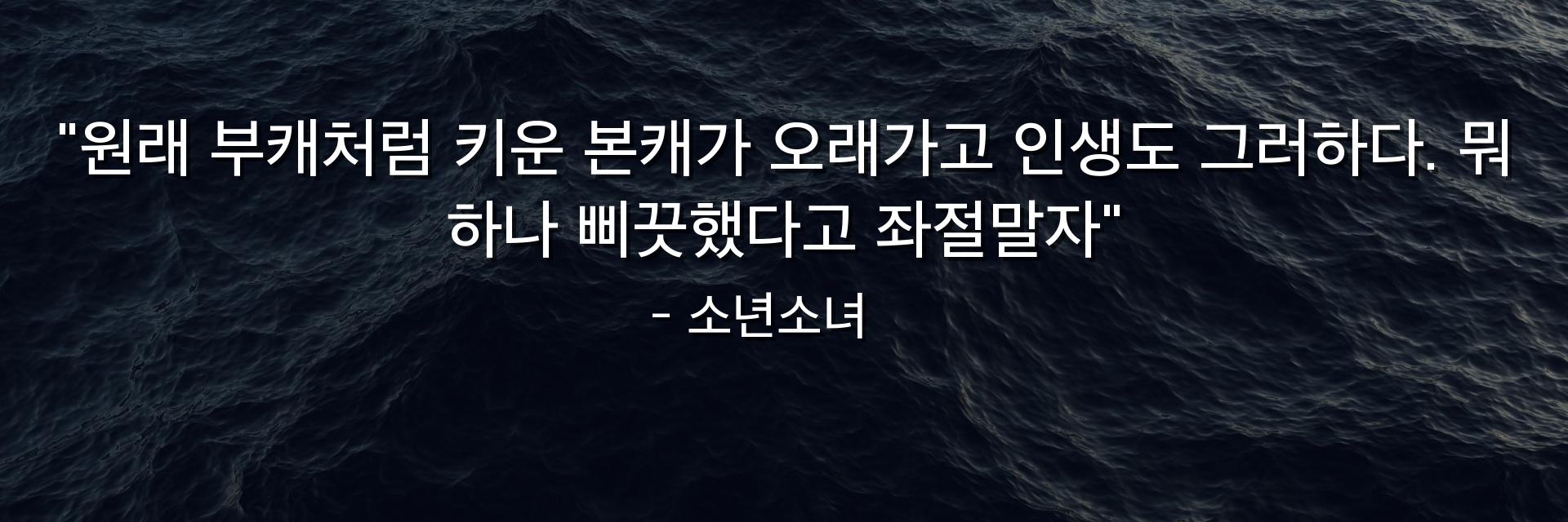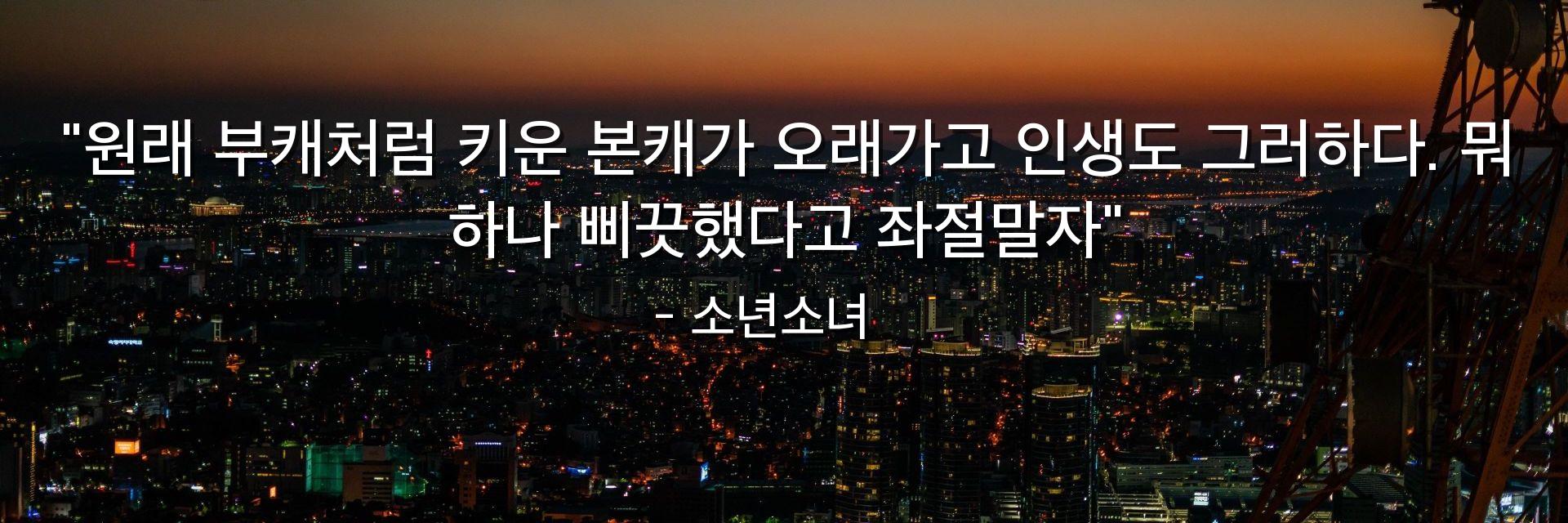 "원래 부캐처럼 키운 본캐가 오래가고 인생도 그러하다. 뭐 하나 삐끗했다고 좌절말자"