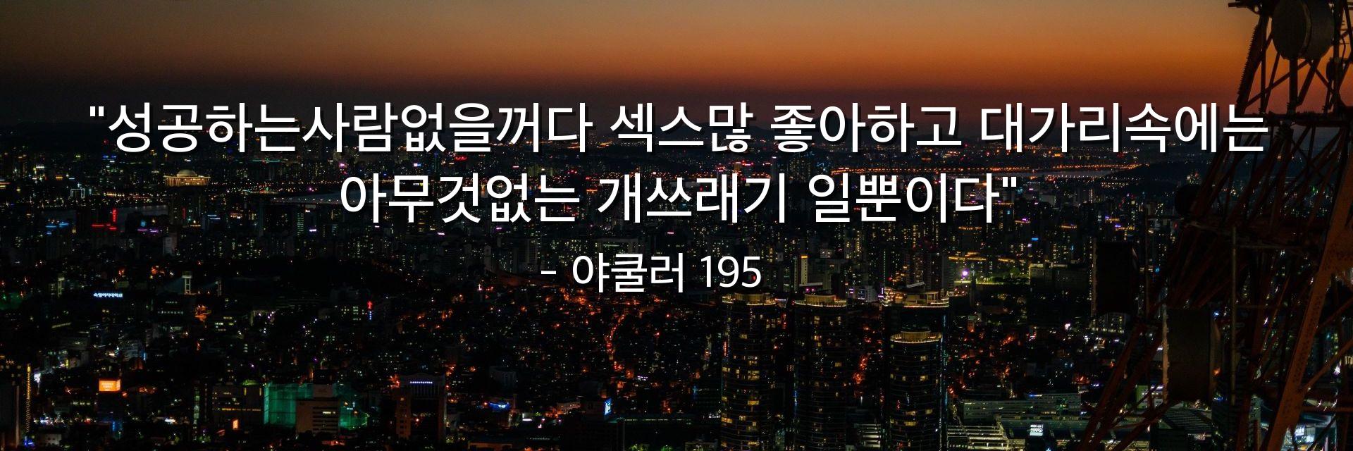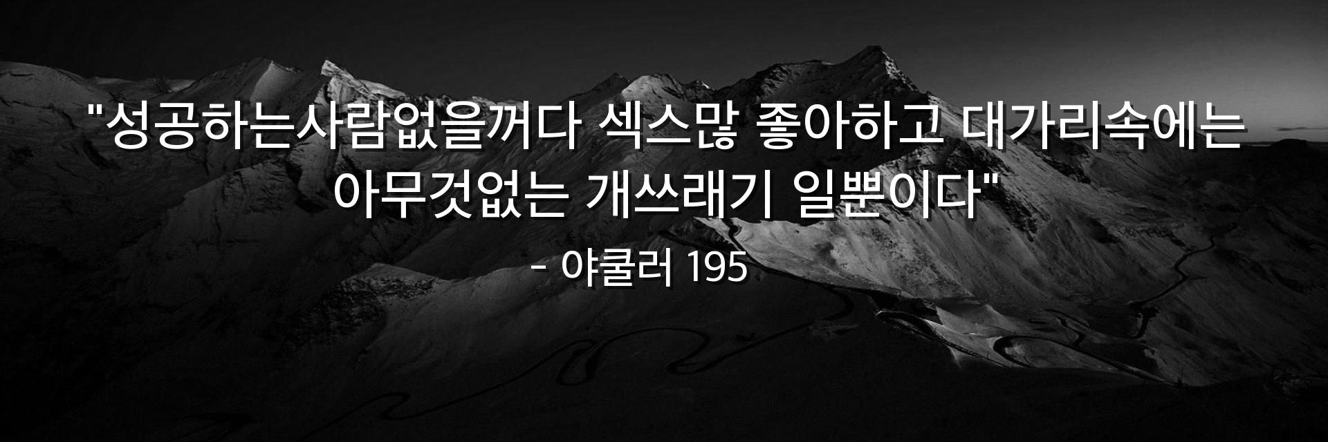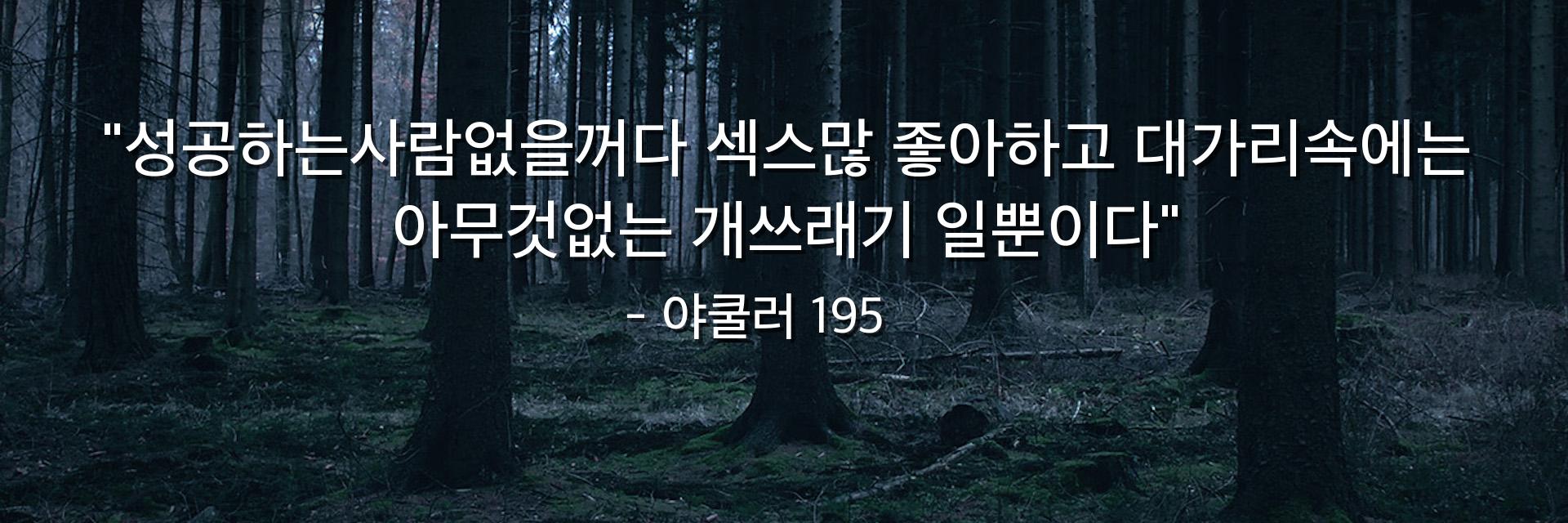 "성공하는사람없을꺼다 섹스많 좋아하고 대가리속에는 아무것없는 개쓰래기 일뿐이다"