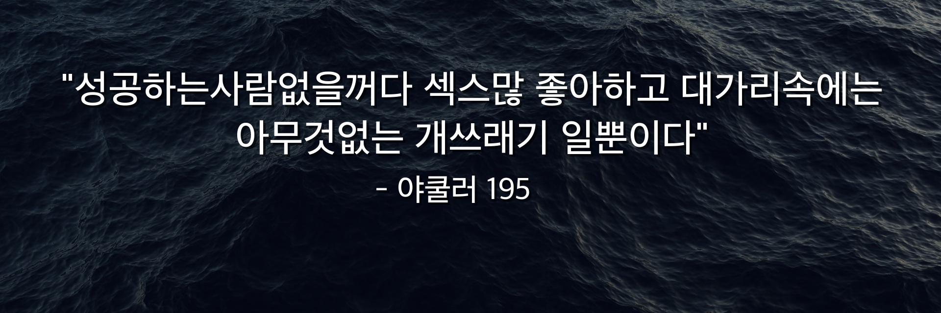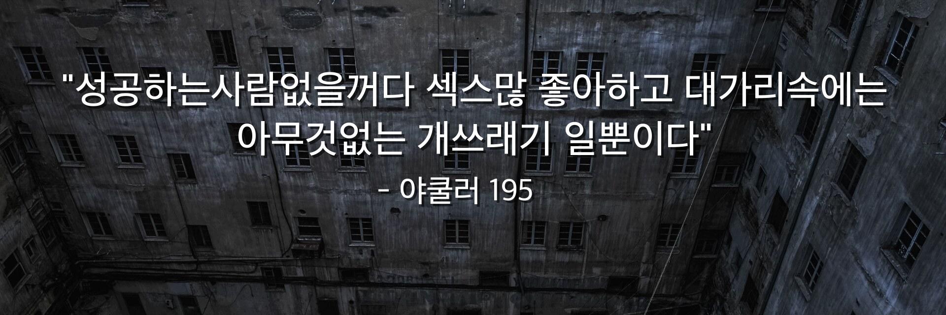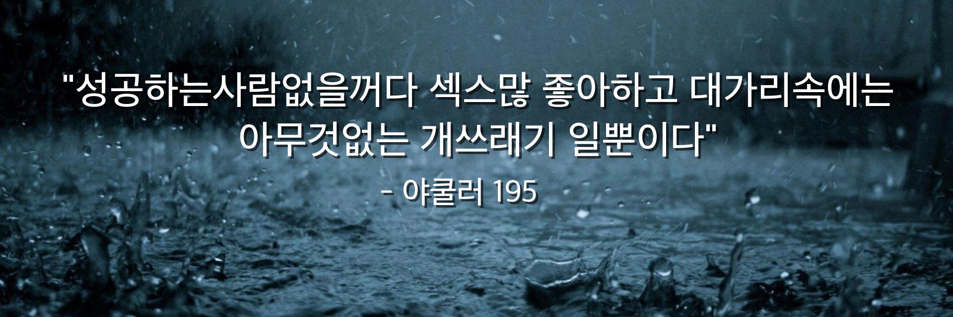 "성공하는사람없을꺼다 섹스많 좋아하고 대가리속에는 아무것없는 개쓰래기 일뿐이다"
