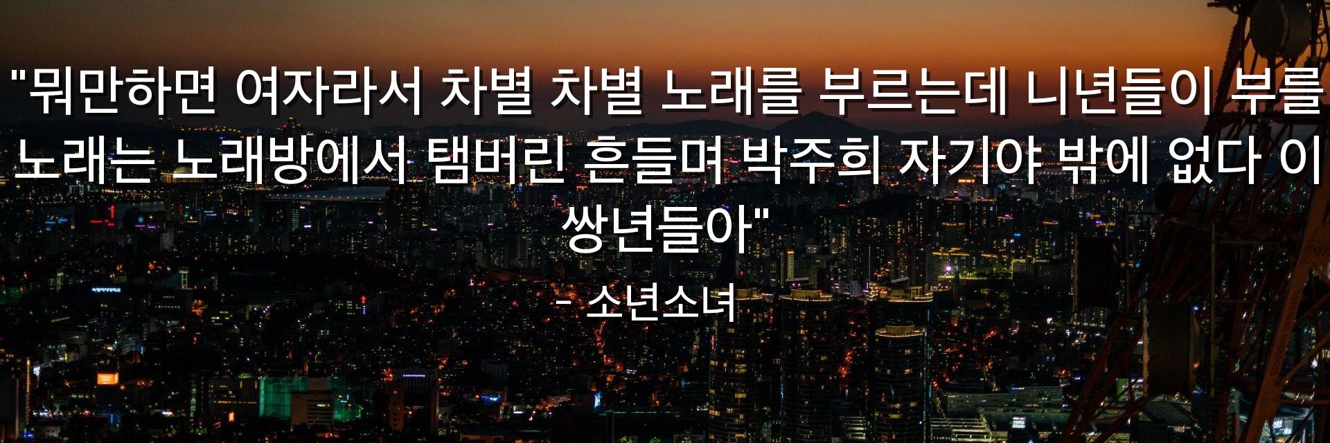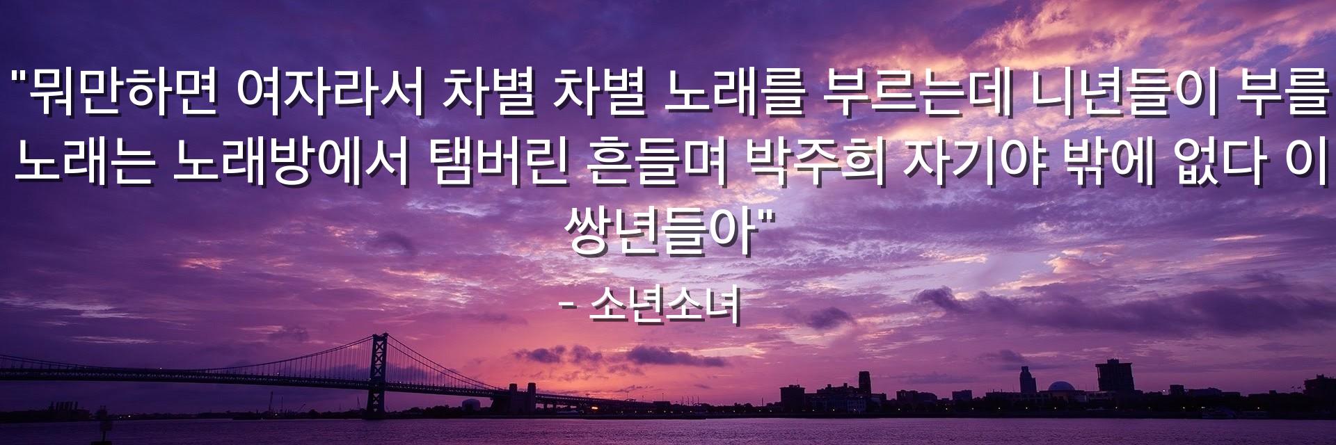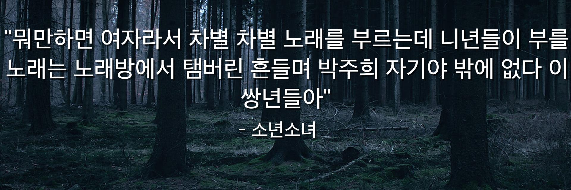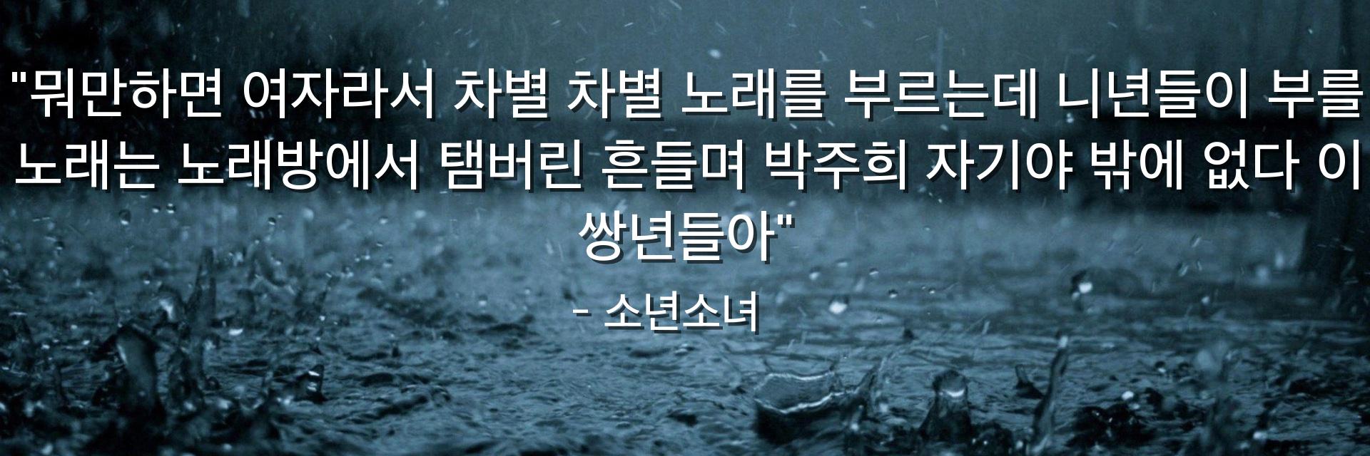 "뭐만하면 여자라서 차별 차별 노래를 부르는데 니년들이 부를 노래는 노래방에서 탬버린 흔들며 박주희 자기야 밖에 없다 이 쌍년들아"