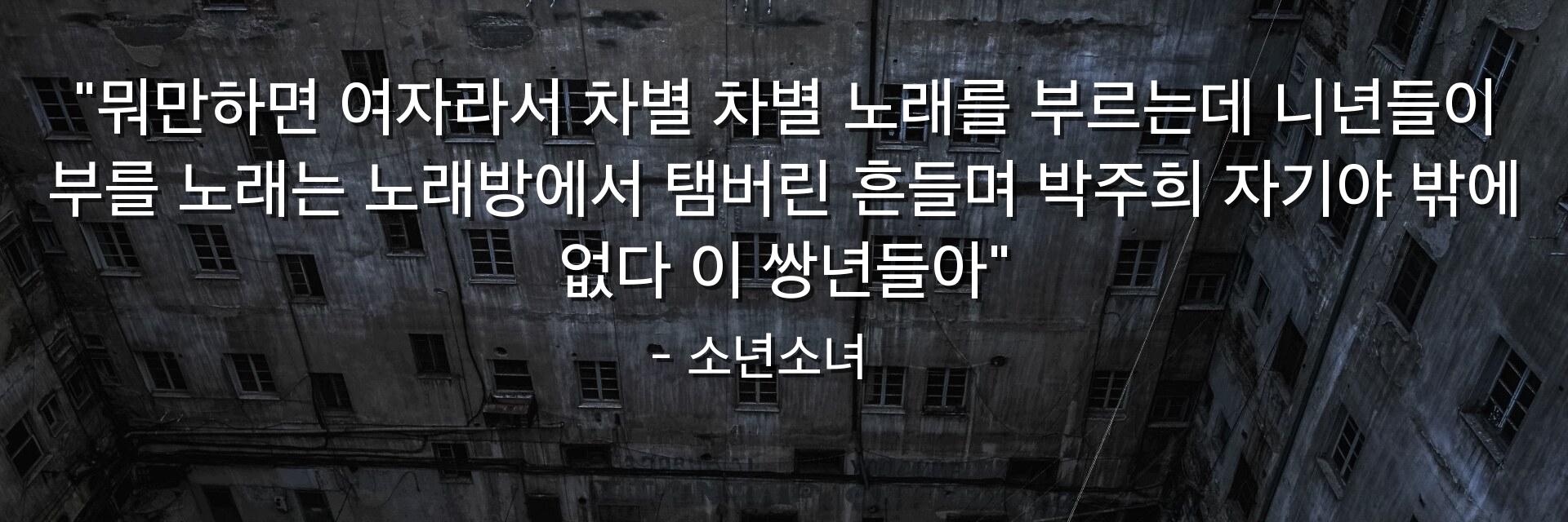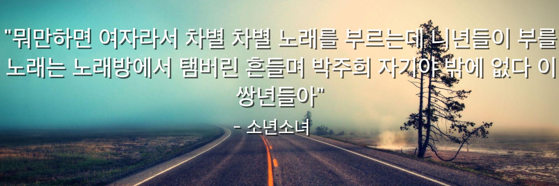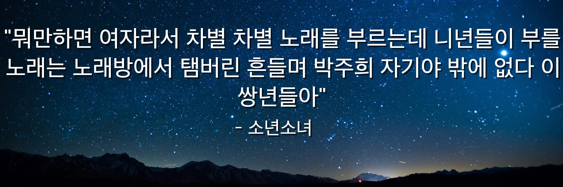 "뭐만하면 여자라서 차별 차별 노래를 부르는데 니년들이 부를 노래는 노래방에서 탬버린 흔들며 박주희 자기야 밖에 없다 이 쌍년들아"
