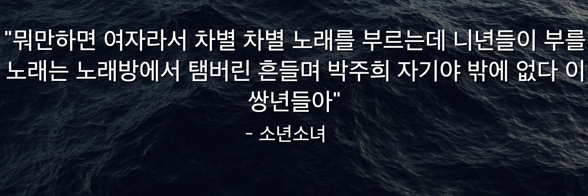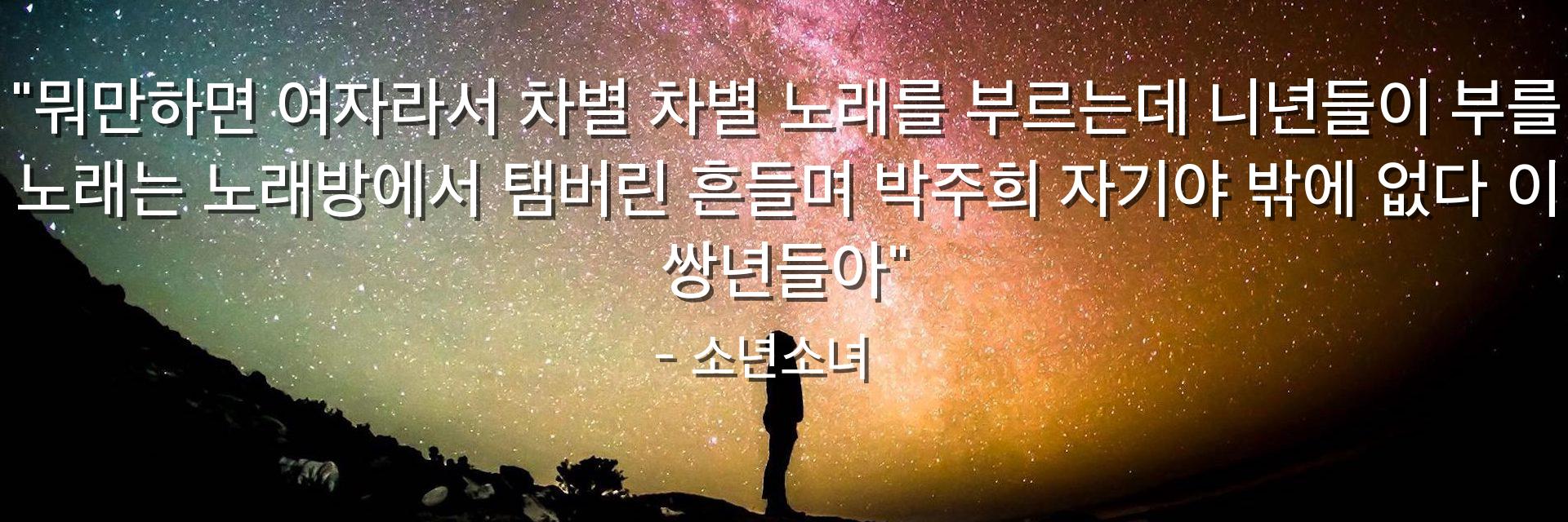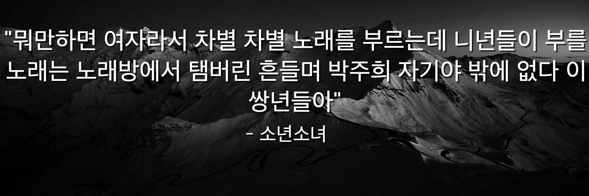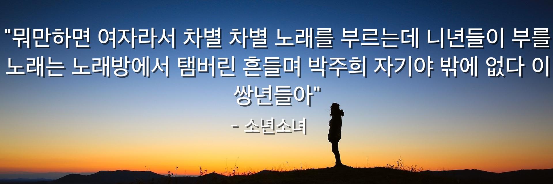 "뭐만하면 여자라서 차별 차별 노래를 부르는데 니년들이 부를 노래는 노래방에서 탬버린 흔들며 박주희 자기야 밖에 없다 이 쌍년들아"
