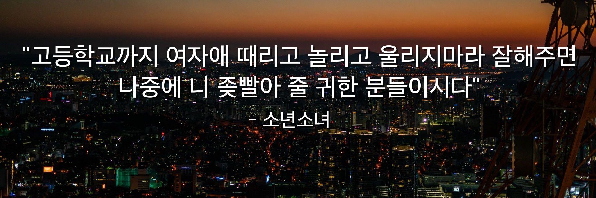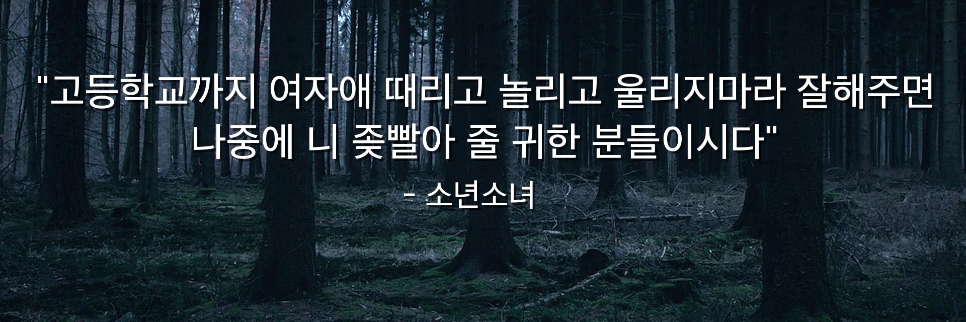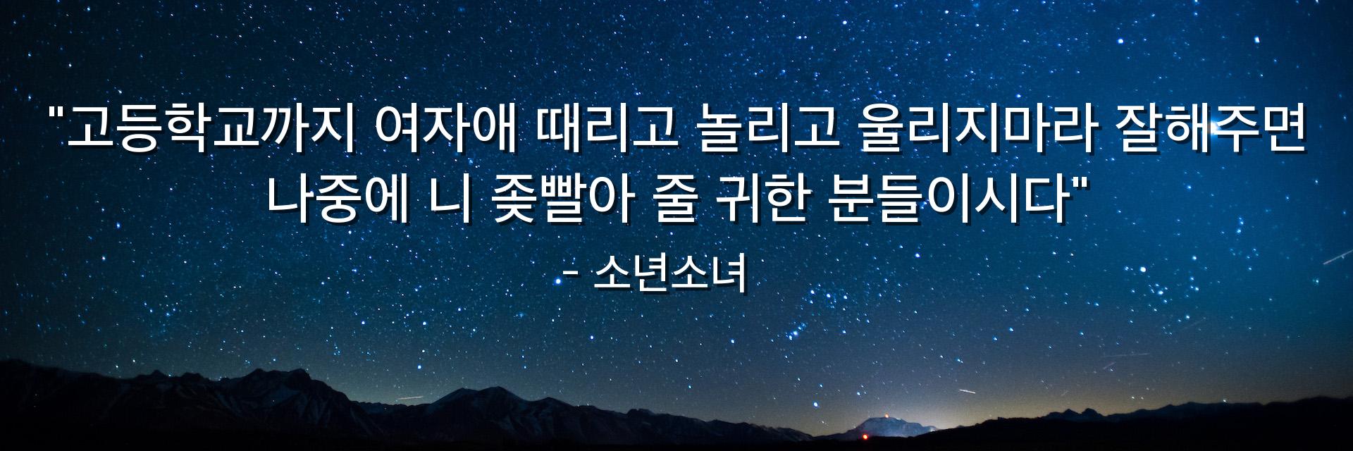"고등학교까지 여자애 때리고 놀리고 울리지마라 잘해주면 나중에 니 좆빨아 줄 귀한 분들이시다"
