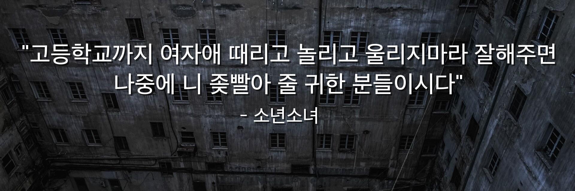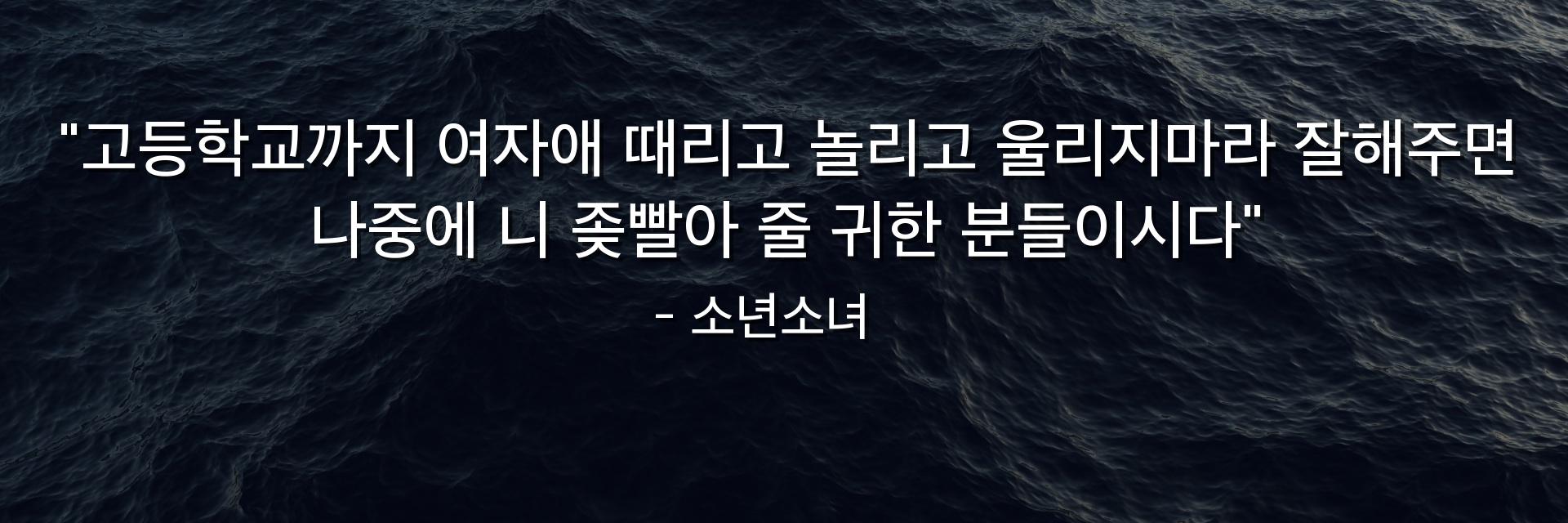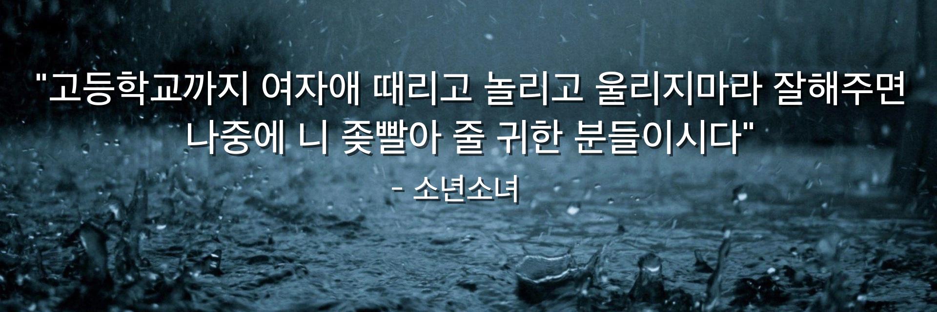 "고등학교까지 여자애 때리고 놀리고 울리지마라 잘해주면 나중에 니 좆빨아 줄 귀한 분들이시다"
