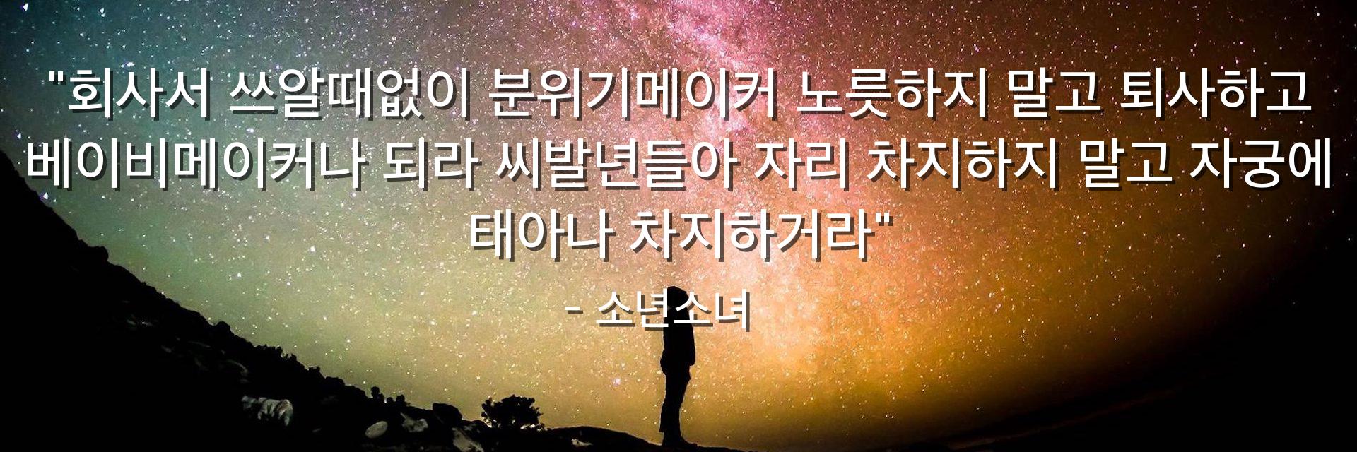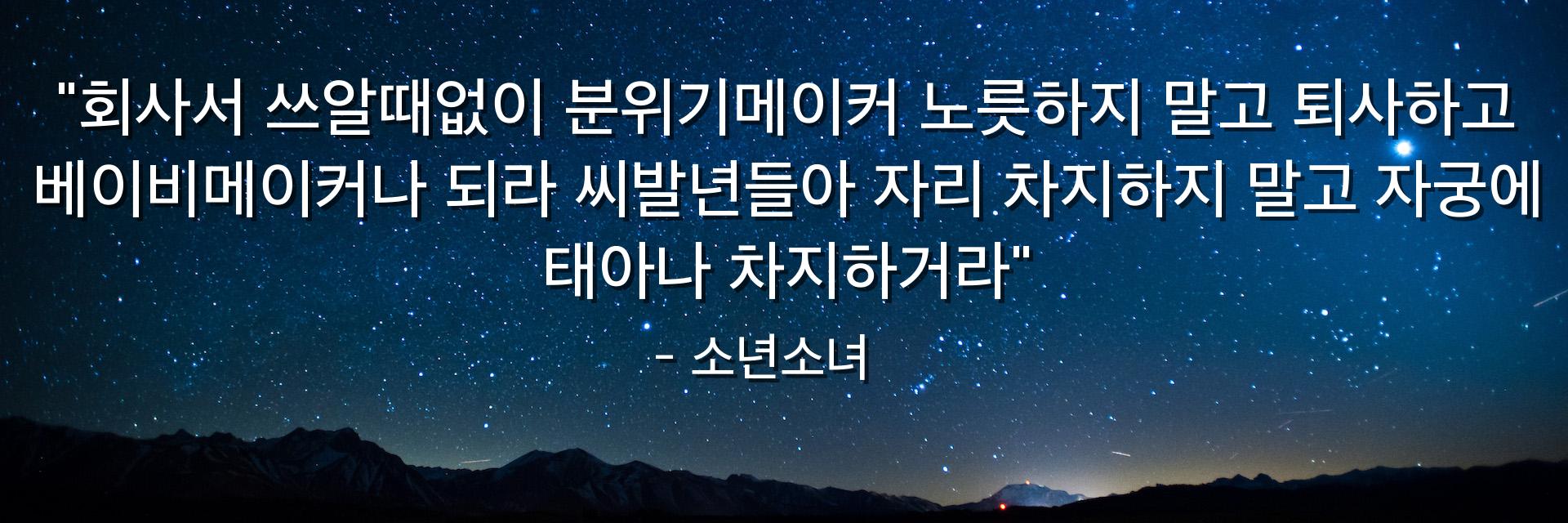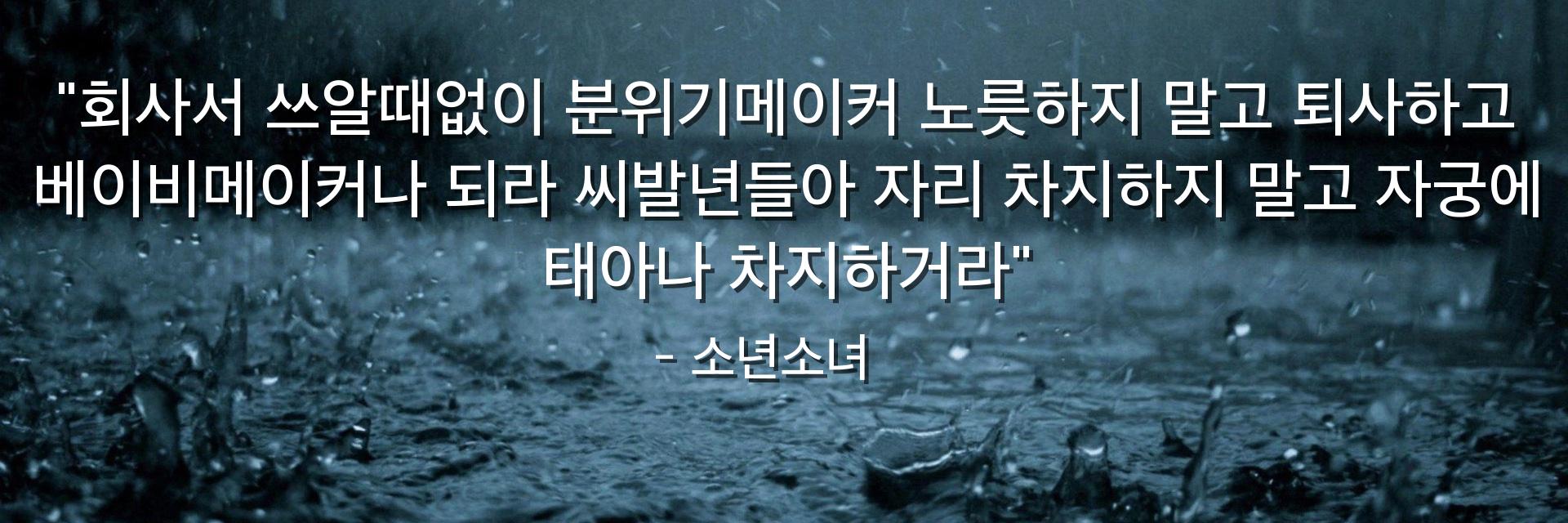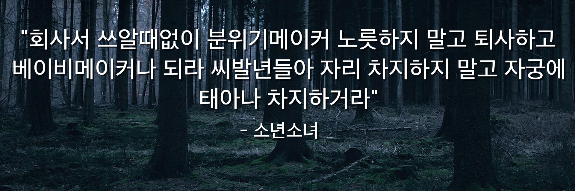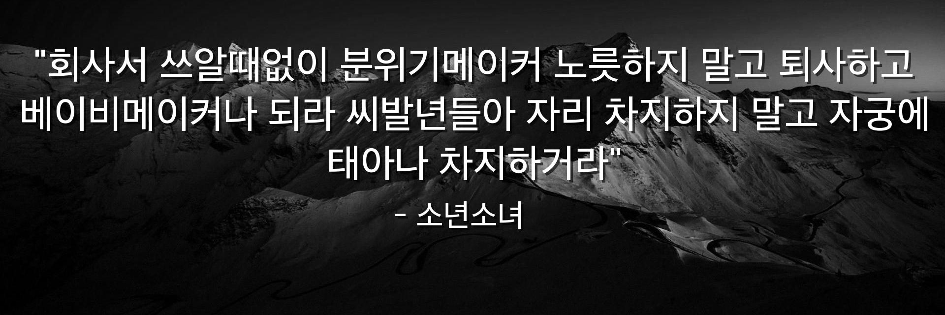 "회사서 쓰알때없이 분위기메이커 노릇하지 말고 퇴사하고 베이비메이커나 되라 씨발년들아 자리 차지하지 말고 자궁에 태아나 차지하거라"