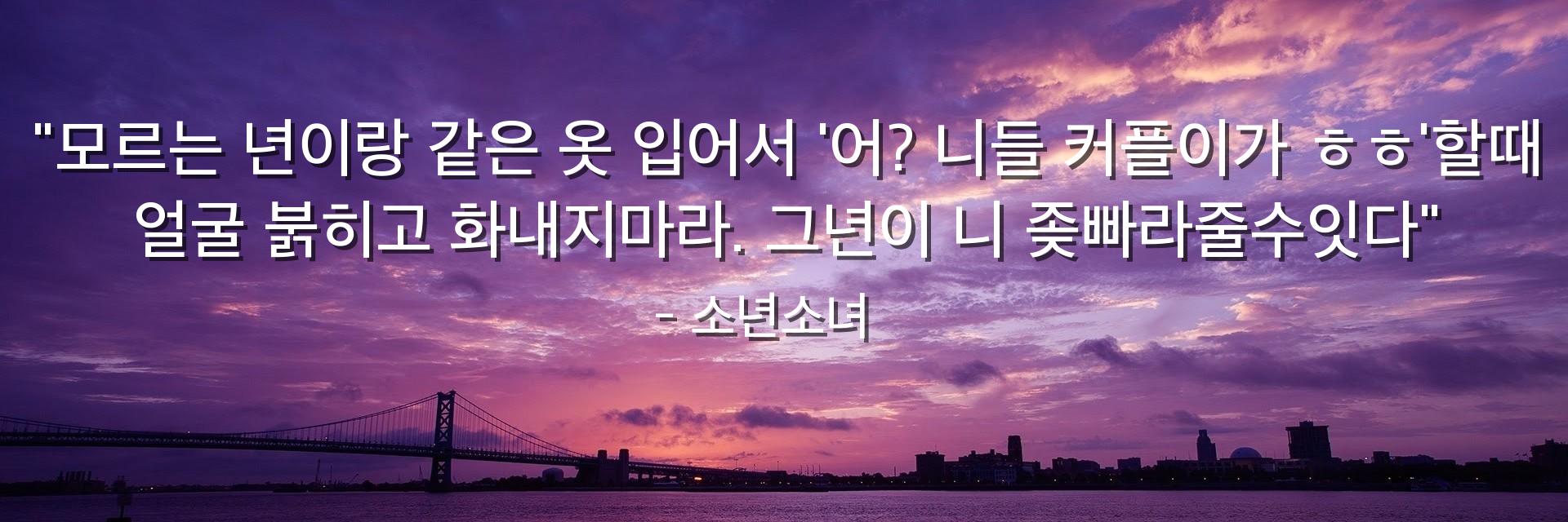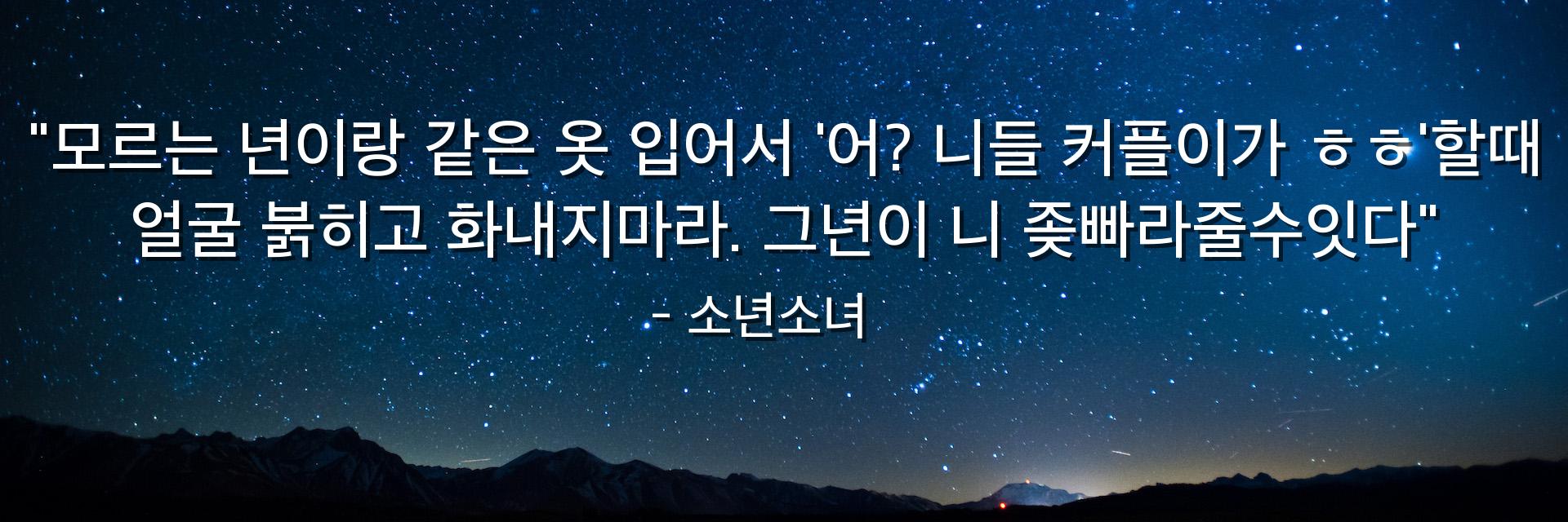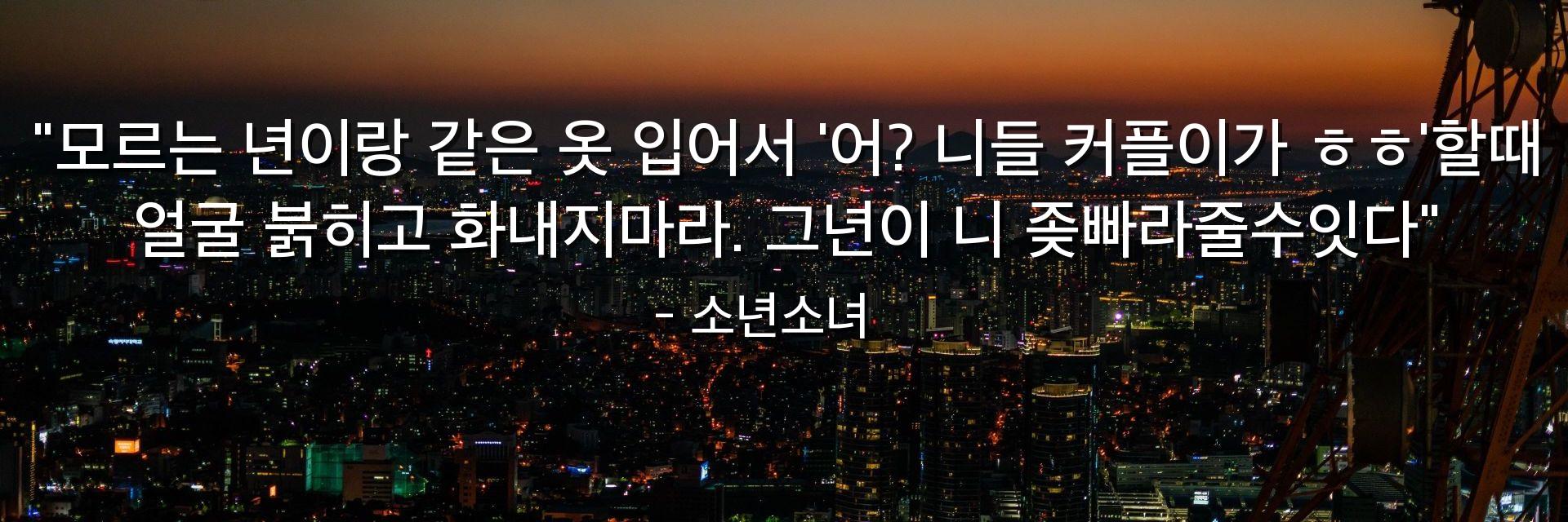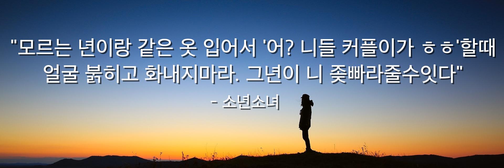 "모르는 년이랑 같은 옷 입어서 '어? 니들 커플이가 ㅎㅎ'할때 얼굴 붉히고 화내지마라. 그년이 니 좆빠라줄수잇다"