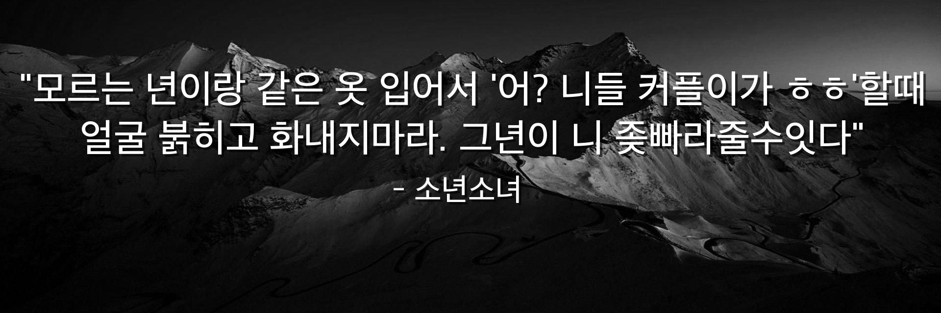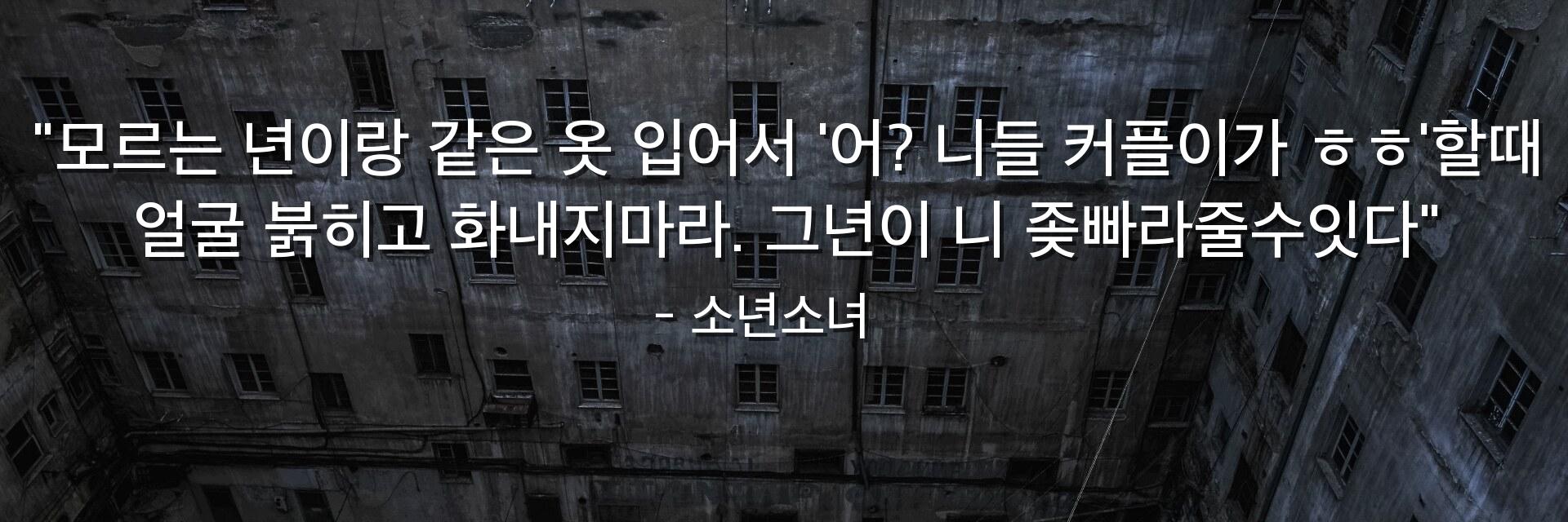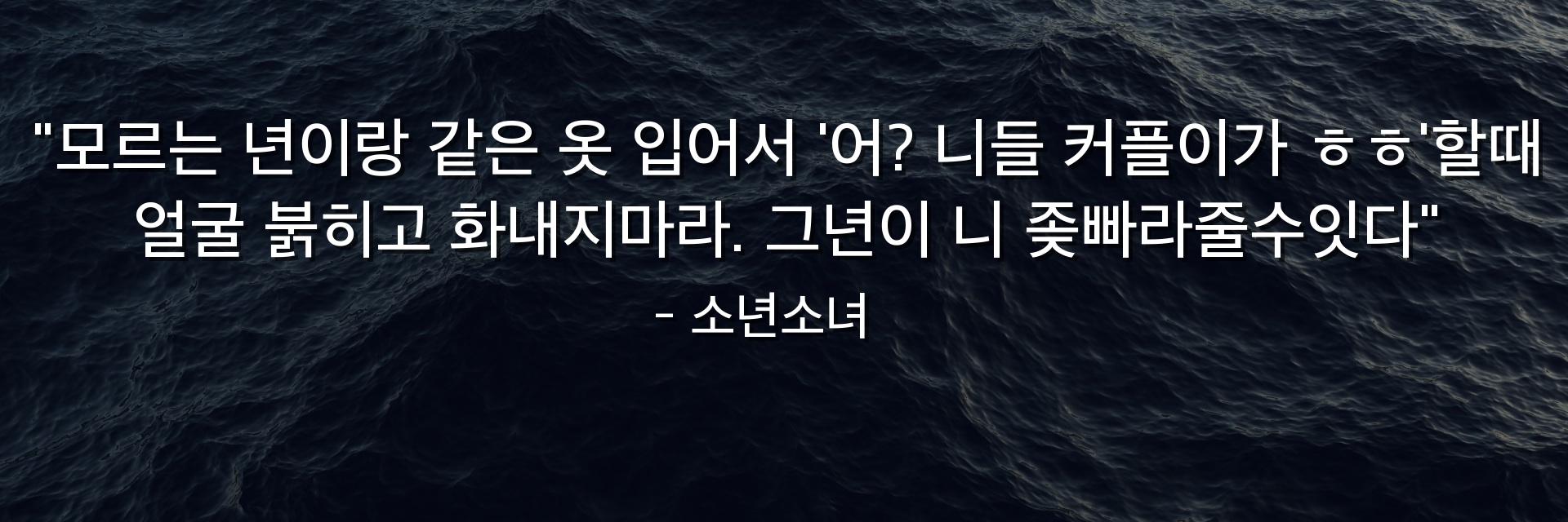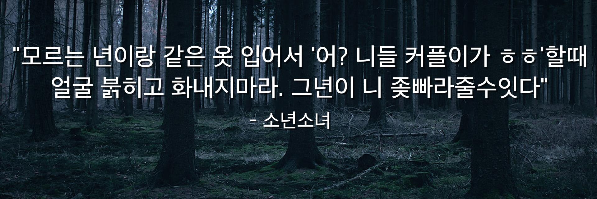 "모르는 년이랑 같은 옷 입어서 '어? 니들 커플이가 ㅎㅎ'할때 얼굴 붉히고 화내지마라. 그년이 니 좆빠라줄수잇다"
